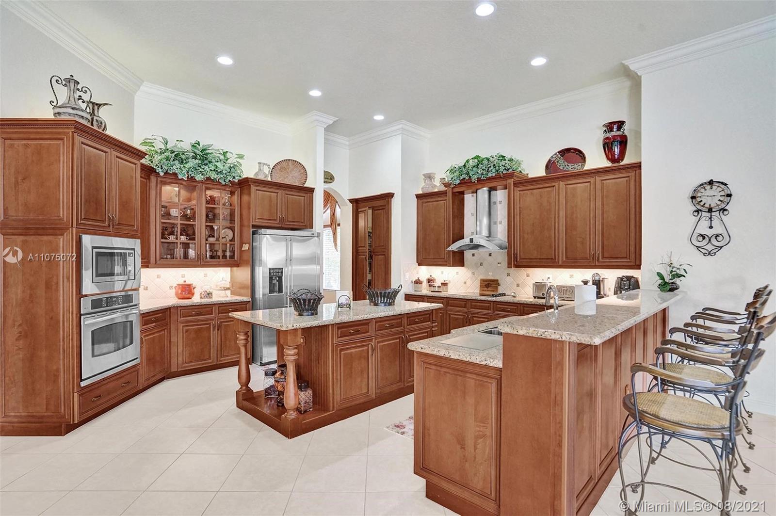 Stunning 5bed/4.5bath +den & bonus room w/3 car garage (largest model) in Riverstone on a builder's acre. Consider this hidden gem w/privacy in the front & back the perfect place to call home. Features high volume celling, formal dining, 3 bedroom split plan w/large master suite with his/her bathrooms & closets, large kitchen, S.S. appliances, wood cabinetry, M&S speaker system, fenced backyard, extended kitchen island overlooking the family room w/amazing outside views of your private Paradise. Family room has custom floor to ceiling wall unit & bar with plenty of cabinets made from Oak. Backyard is your little private resort with heated spa/pool, updated Gazebo, built in kitchen for any chef overlooking panoramic water views perfect for peace, relaxation & entertaining family & friends.