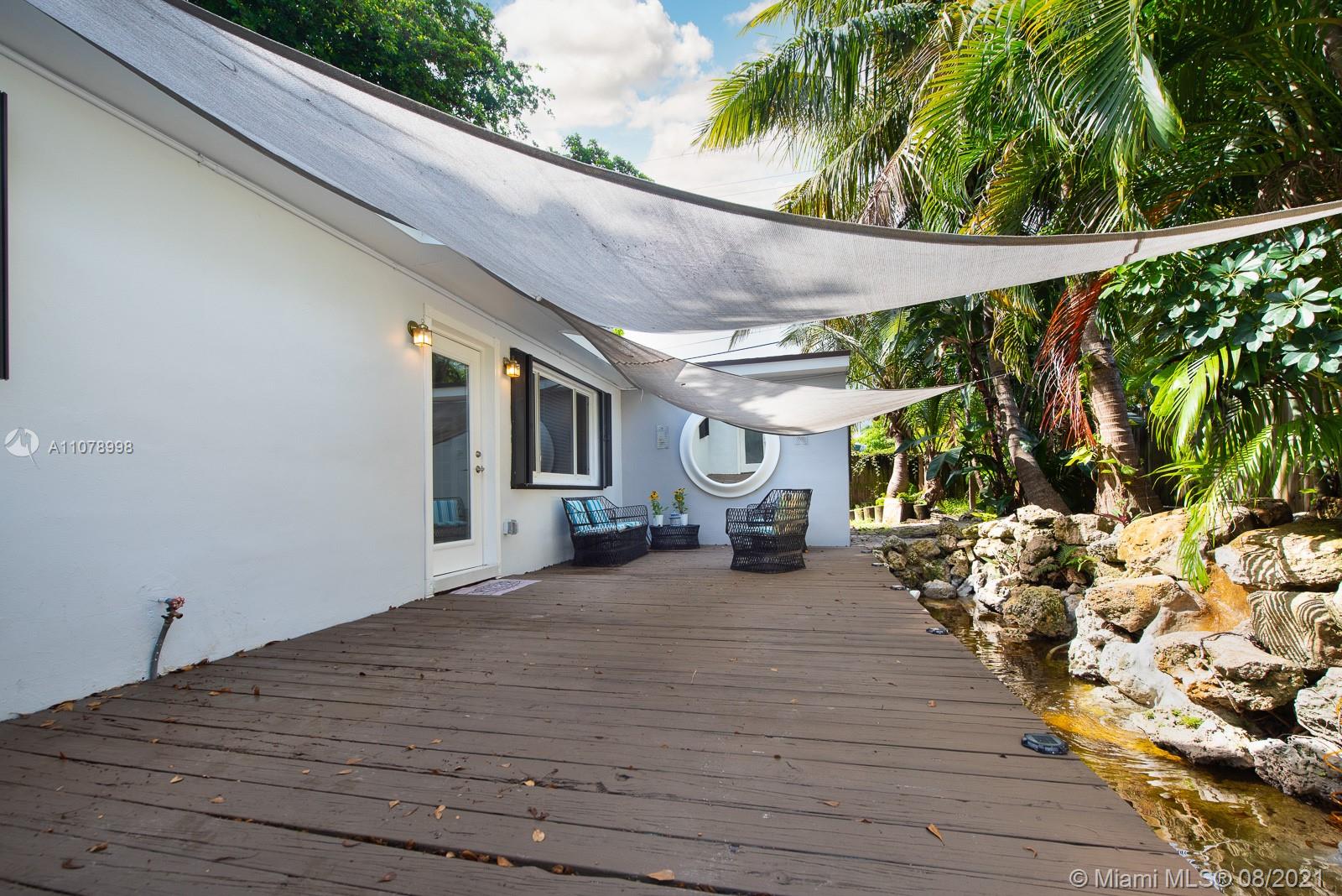 Once in a lifetime find is what you will say when you see this house. This is a cozy 2/1.5 with a den big enough to be a third bedroom, with space for another bathroom, that has been completely remodeled and brought back to it's glory days and more. This home also has a working fireplace, new roof, new AC, and most unique, a fabulous pond. The unique pond is one of a kind feature that is rarely found in a home that brings a Zen-like feeling to the house; You can just see yourself relaxing in the deck while drinking tea or coffee as you listen to the calming sound of water falling through the rocks. The location is magnificent as well as being minutes away from Victory Park, Downtown, Las Olas, Wilton Manor, and so much more. If you love restaurants, beaches, museums, you will love it here.