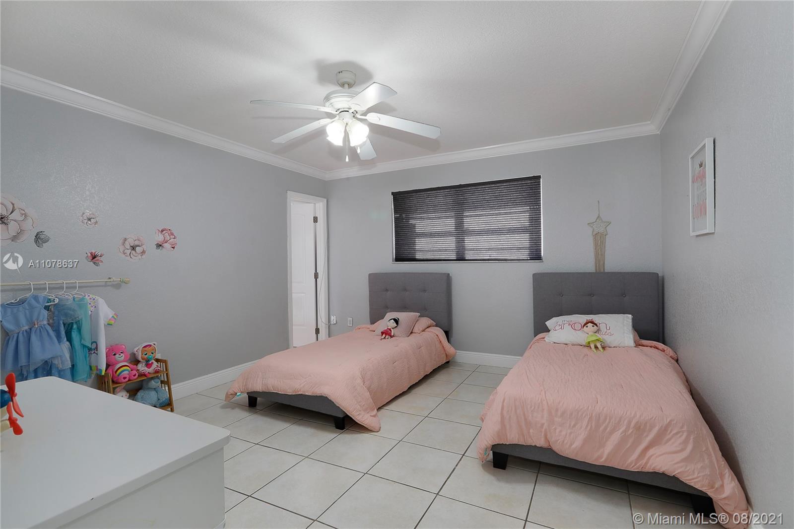 Welcome to Palm Springs Villas, a nestled townhouse community in the heart of Hialeah – The City of Progress. With a fresh coat of exterior paint this 2/2.5 home is ready for new ownership. This townhome is tiled throughout, with both bedrooms located on the second floor. Each spacious bedroom has its own private bathroom. The first-floor layout consists of an open kitchen concept with all white cabinets and appliances. The living/dining area is perfect for entertaining. A covered back patio allows a homeowner to extend their gatherings outside into a shaded area. Crown Molding throughout. The association fee is just $19 per month, making this community very desirable. Live close to the well-known Amelia Earhart park, which offers 8 miles of bike trails, a dog park, & petting zoo. FHA OK.