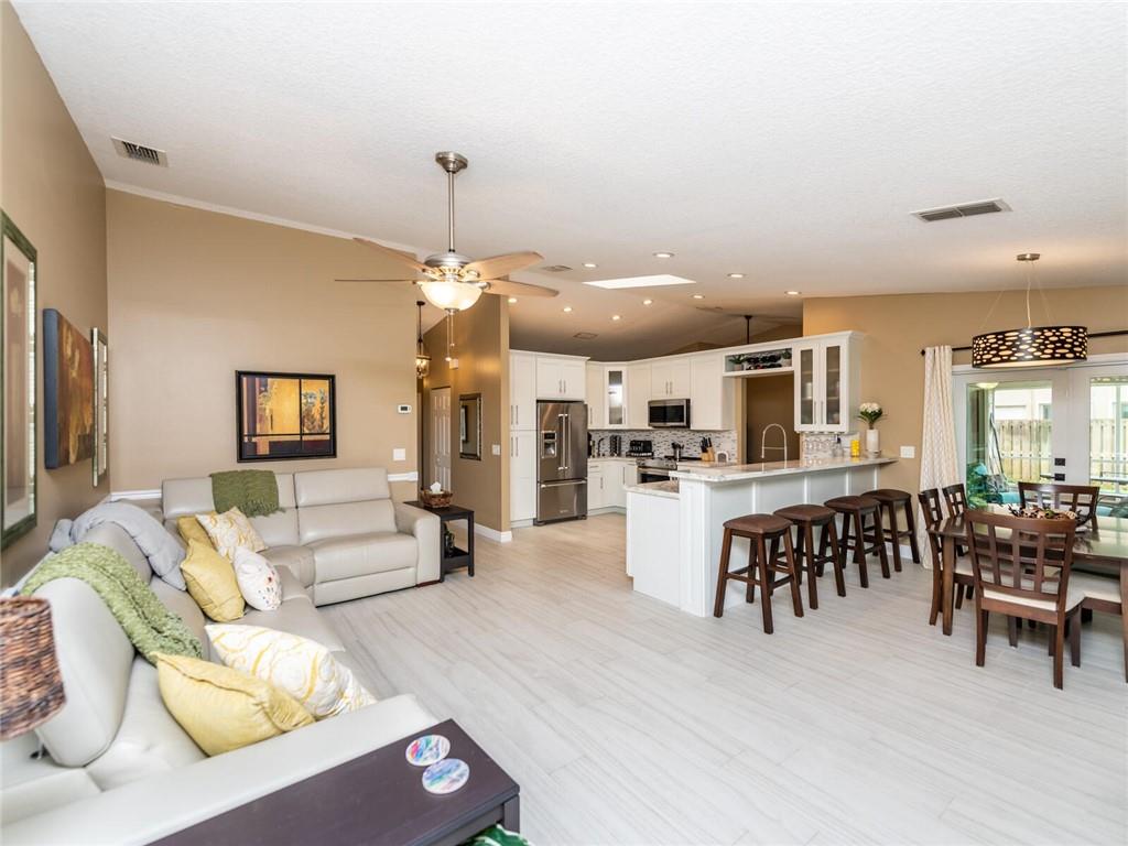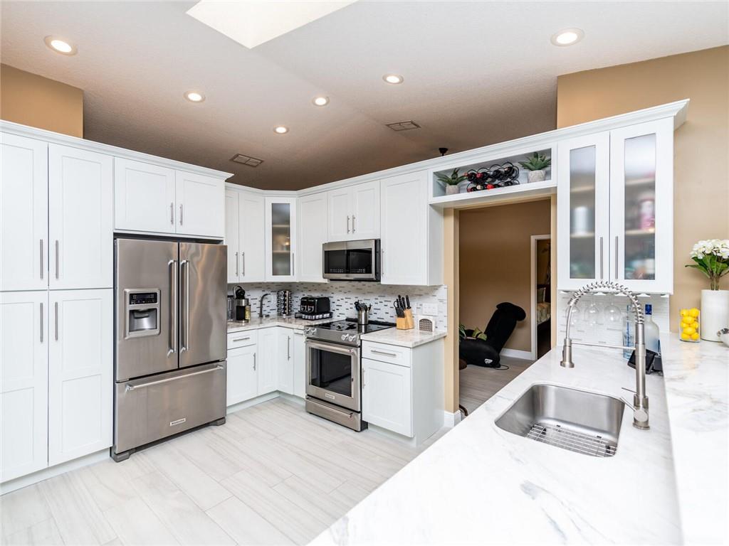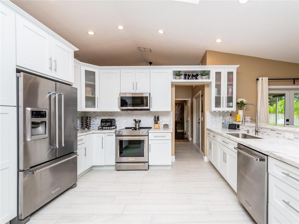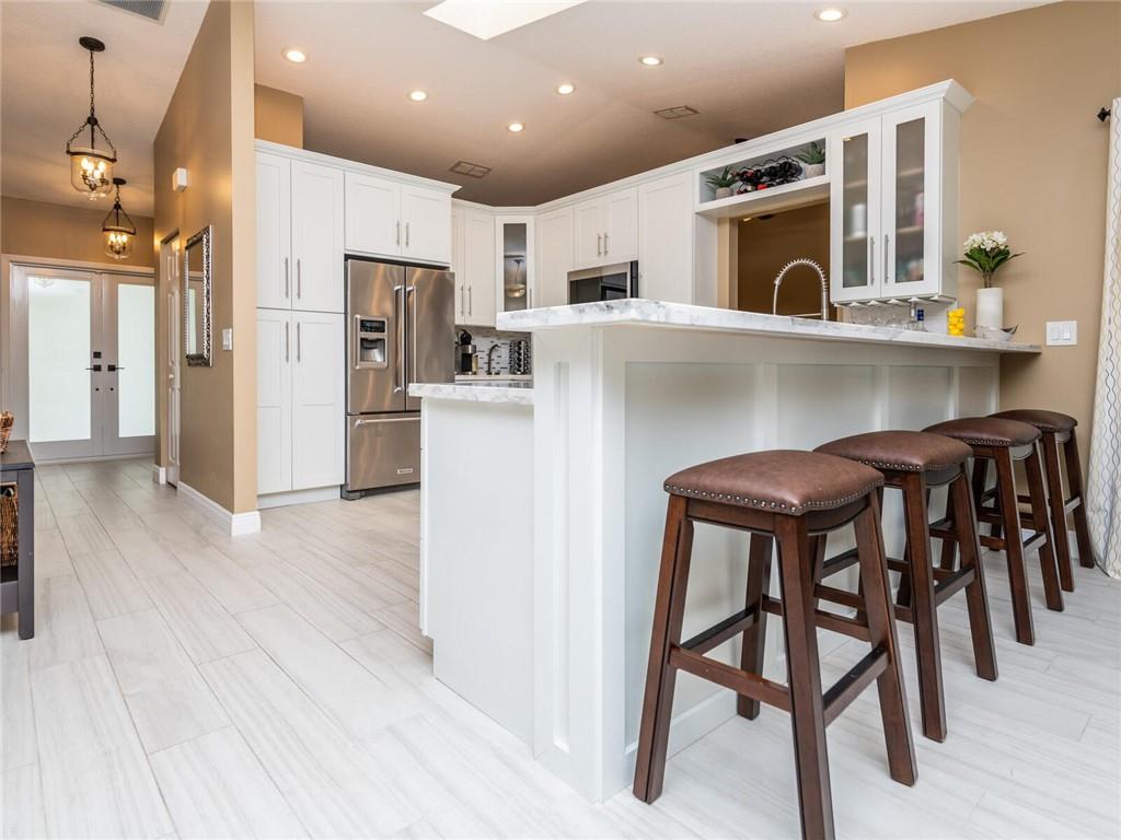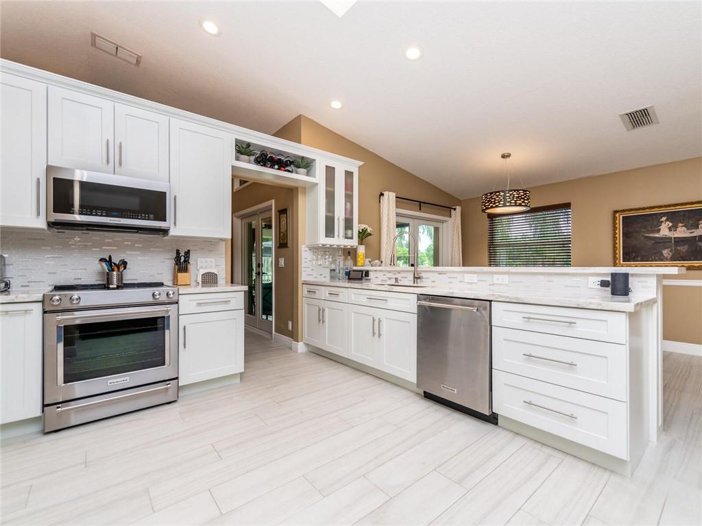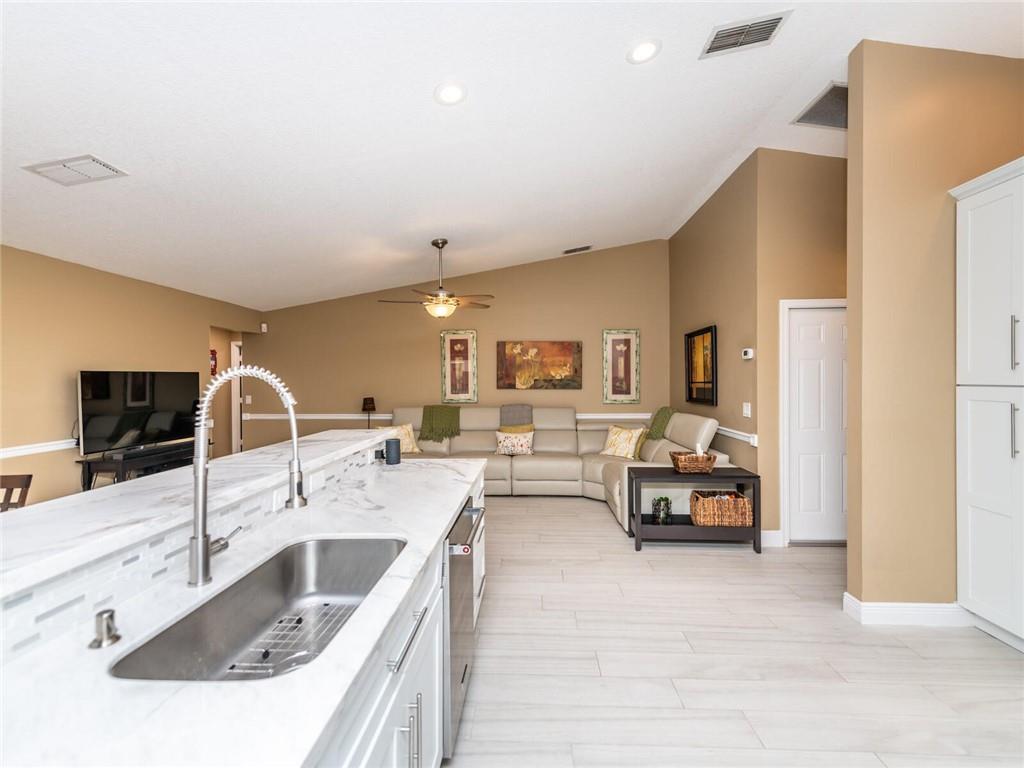A BEAUTIFUL AND IMMACULATE HOME FEATURIING TOTAL REMODEL THRU OUT WITH HIGH VAULTED CEILINGS WITH EXTRA LIGHTING, ROOF (2017) STAINLESS AND QUARTZ KITCHEN LESS THAN A YEAR, CUSTOM DESIGNED BATHROOMS, EXCESS HIGH HATS, NEWER GARAGE DOOR, ALARM SYSTEM, COVERED AND TILED SCREENED PORCH OVERLOOKS THE PAVERED PATIO WHLE ENJOYING GORGEOUS SUNSETS, ACCORDIAN SHUTTERS AND IMPACT DOORS, SPRINKLER SYSTEM FROM CANAL, EXTERIOR FRESHLY PAINTED WITH DESIGN LANDSCAPE, ALARM SYSTEM (XFINITY) A MUST SEE!!