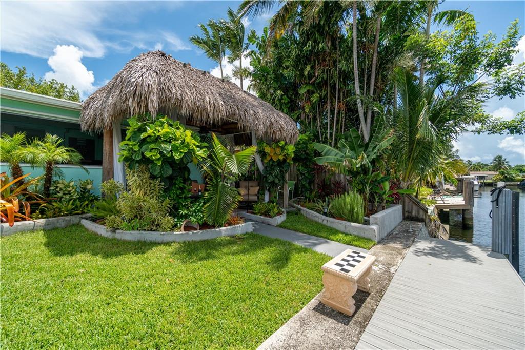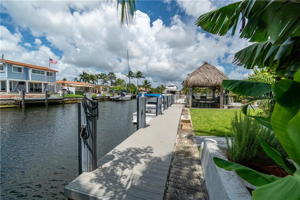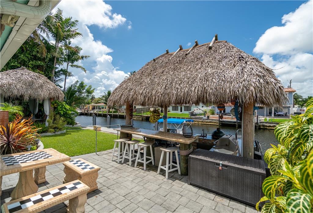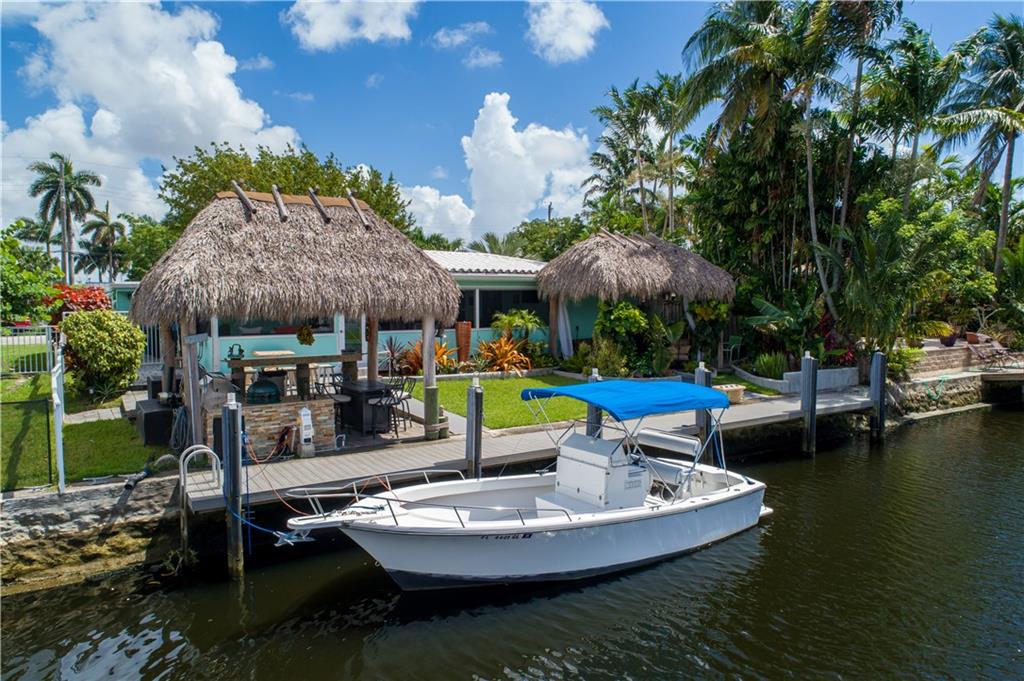 Don't wait! This beautiful waterfront home will go fast! Situated on a deep-water and wide canal in Citrus Isle. The home is nicely updated with gorgeous travertine floors throughout with warm naturally lit living spaces. The gourmet kitchen features Jenn-Air appliances, granite countertops, custom cabinetry with a built-in refrigerator, and a large 6-burner gas stove. Through the sliding glass doors is an enclosed porch with a bar and seating area for large dinner parties and get-togethers. The backyard is a causal zen area with two tiki huts and a full outdoor kitchen to include a high-end grill and a Green Egg smoker. Water frontage on the canal is 65' with a new 55-foot dock with ocean access, no fixed bridges on the journey to the Atlantic! The property can accommodate a 55' vessel.