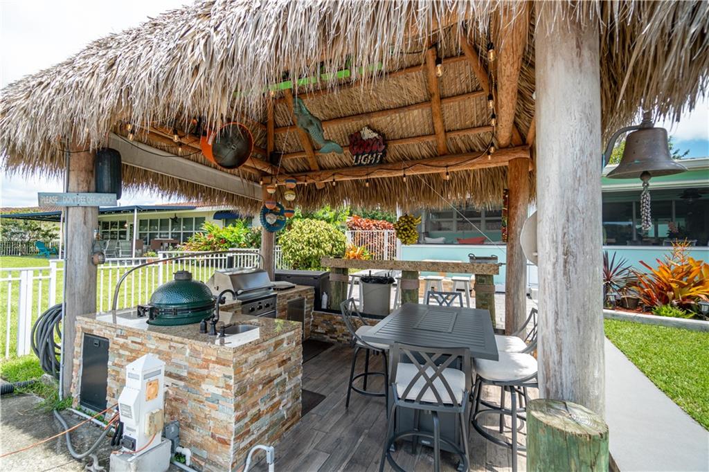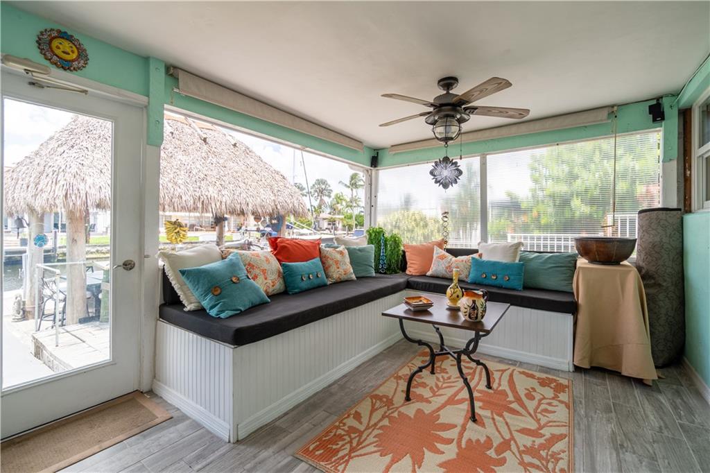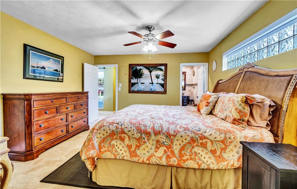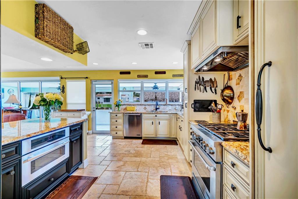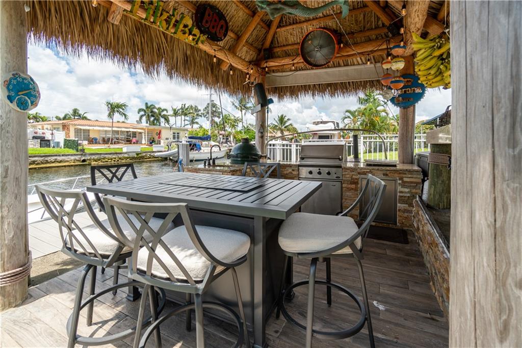 Don't wait! This beautiful waterfront home will go fast! Situated on a deep-water and wide canal in Citrus Isle. The home is nicely updated with gorgeous travertine floors throughout with warm naturally lit living spaces. The gourmet kitchen features Jenn-Air appliances, granite countertops, custom cabinetry with a built-in refrigerator, and a large 6-burner gas stove. Through the sliding glass doors is an enclosed porch with a bar and seating area for large dinner parties and get-togethers. The backyard is a causal zen area with two tiki huts and a full outdoor kitchen to include a high-end grill and a Green Egg smoker. Water frontage on the canal is 65' with a new 55-foot dock with ocean access, no fixed bridges on the journey to the Atlantic! The property can accommodate a 55' vessel.