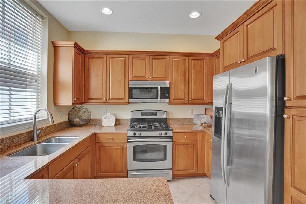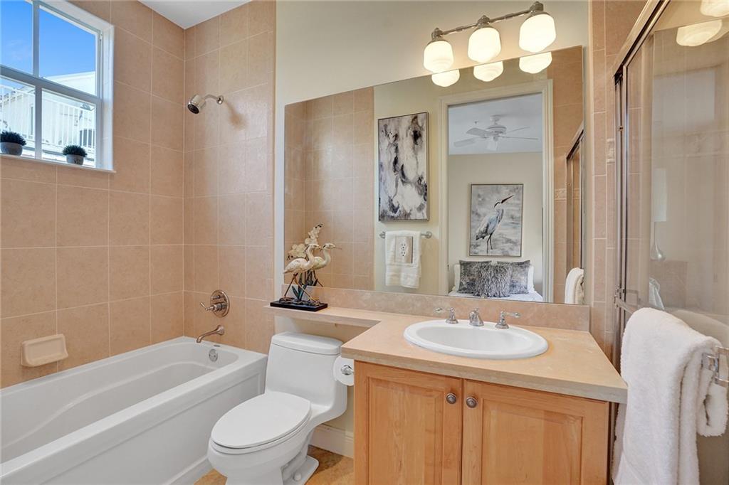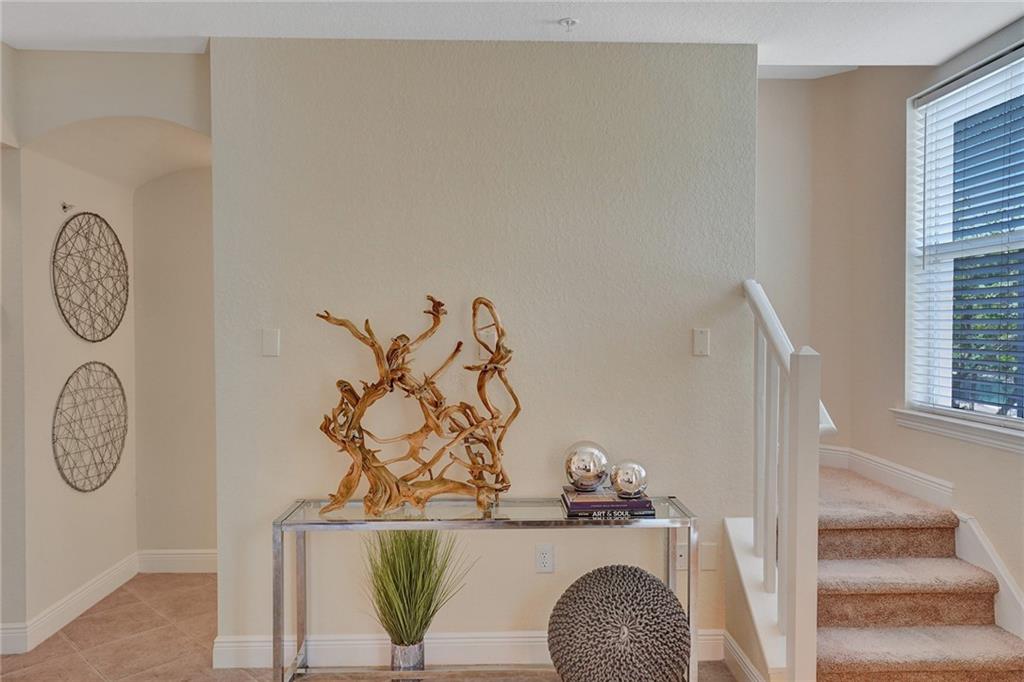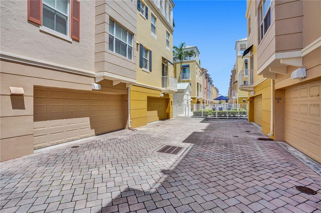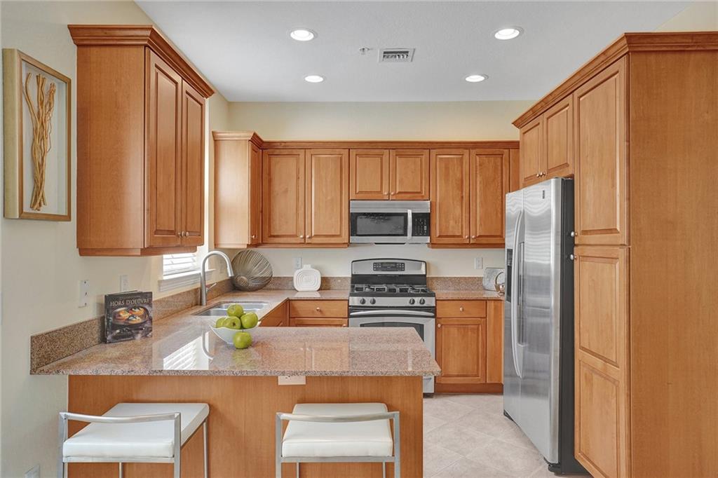 Victoria Park Elegant 3 story townhouse features 2 Bedrooms & 3.5 Bathrooms & a 2 car garage!.....On 1st floor is a bonus room which is presently used as office;( desks & cabinets stay); but perfect den or 3rd bedroom & has a full bath....Gated front court yard great for your pets....2nd floor features volume ceilings, a 1/2 bath, custom kitchen w/ granite breakfast bar, stainless steel appliances, gas range, generous cabinet space & granite counter tops overlooking dining room & living room....Tile floors on 1st & 2nd level are laid at a diagonal....On 3rd floor is washer/dryer & 2 master bedroom en-suites; w/ walk in closet in 1 Master Bedroom & separate tub & shower....2 zone AC, impact windows & doors, tankless water heater..... Community heated pool..... Walk to dining & shopping