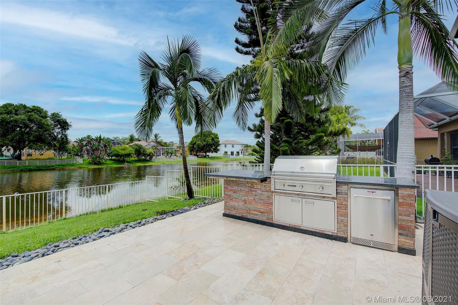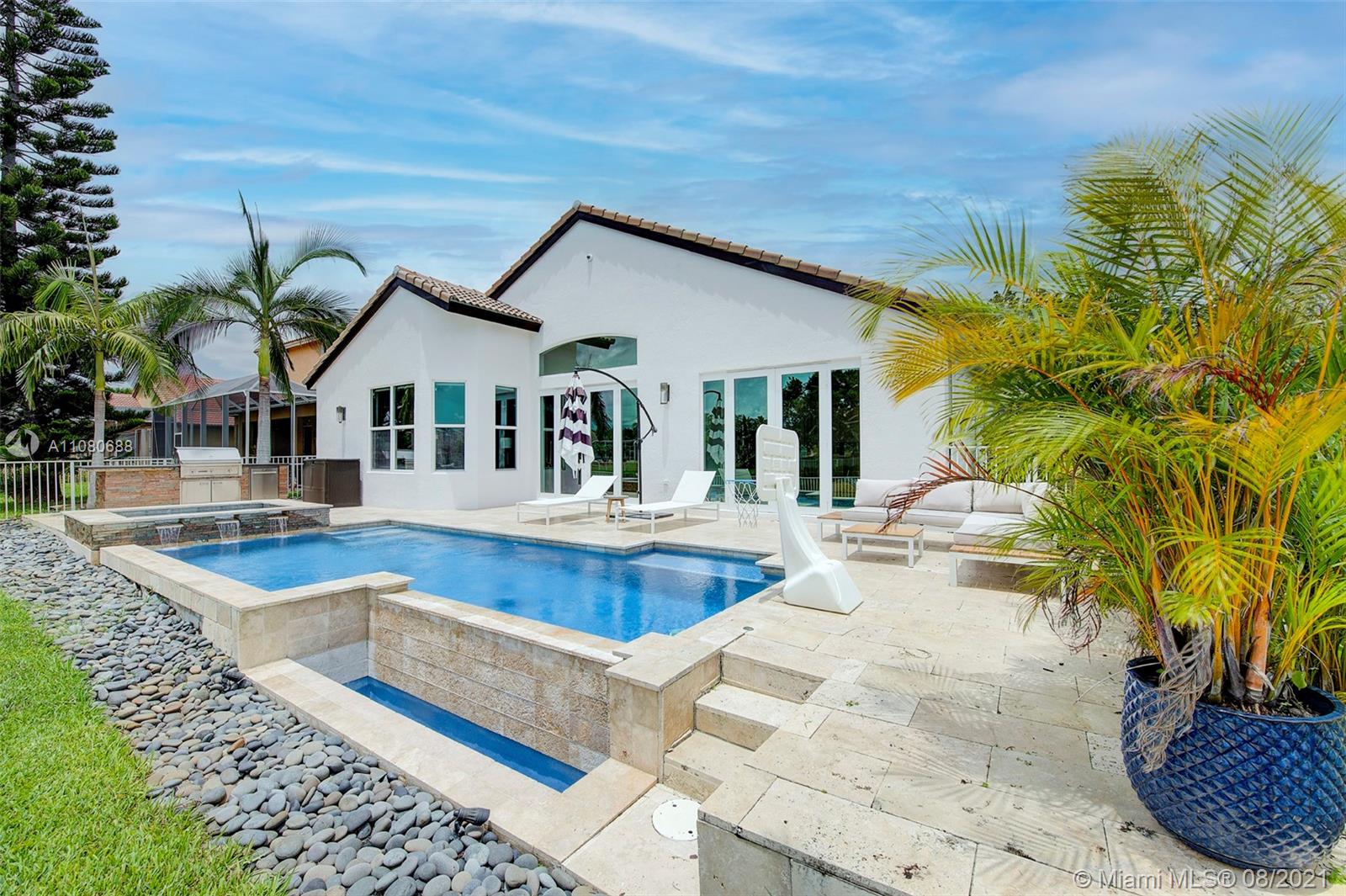 Prepare to be amazed when you step inside this gorgeous remodeled home in the highly sought after Sunset Lakes community! Upon entry you are greeted by an open floor plan with direct views to the pool and lake. Complete impact windows & doors PLUS natural lighting! Fully remodeled flooring all throughout! Home exterior was freshly painted! Updated kitchen with white wood cabinetry, soft close drawers & doors, quartz countertops, large center island and SS appliances! Fully remodeled bathrooms. Master has bamboo floors, electric black out shades & custom closets. Enjoy Florida living with this stunning pool with infinity edge, decorative lighting, salt water system, & spa! Beautiful travertine pool deck & outdoor kitchen with grill makes this backyard the perfect place to entertain!