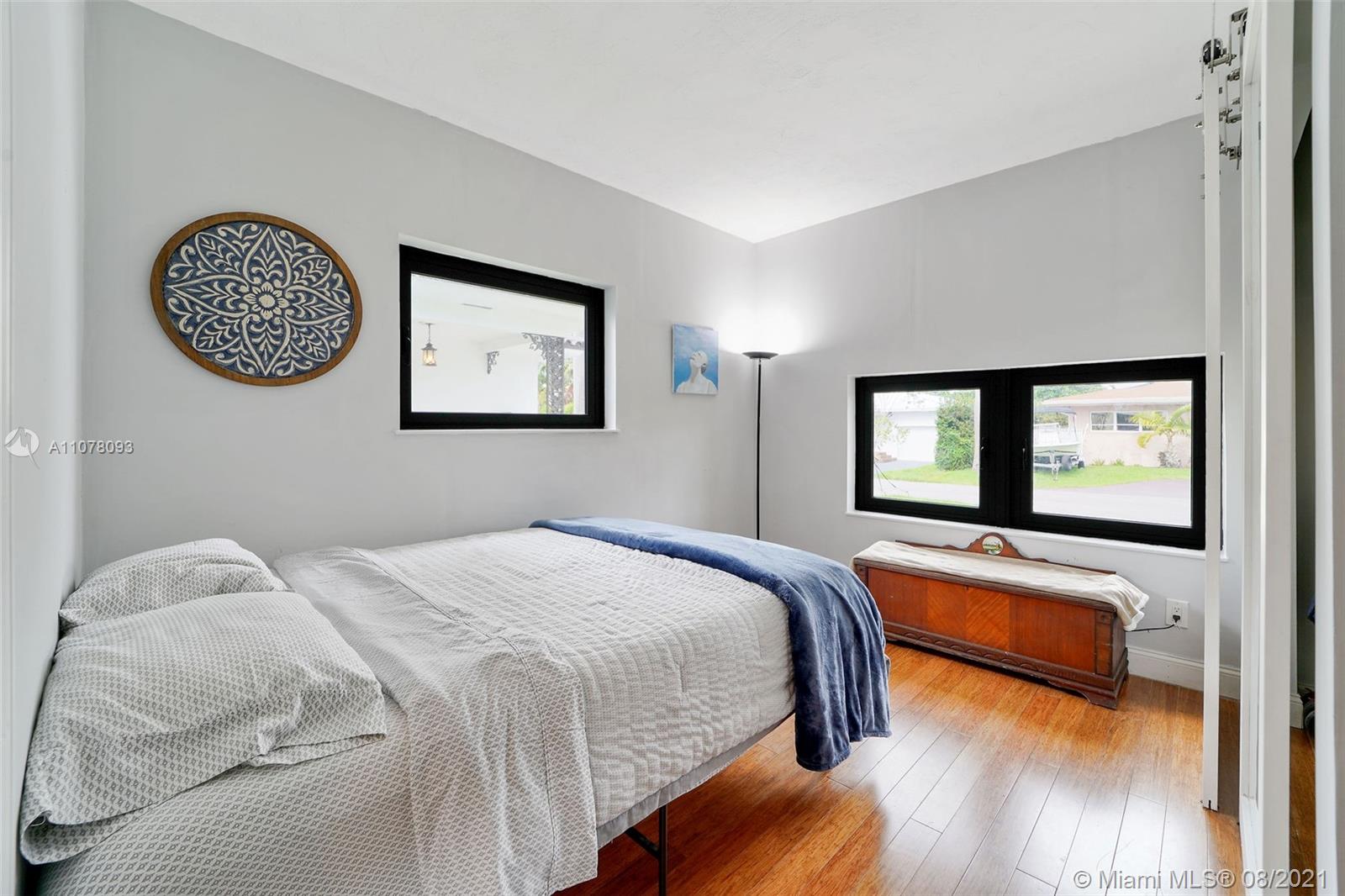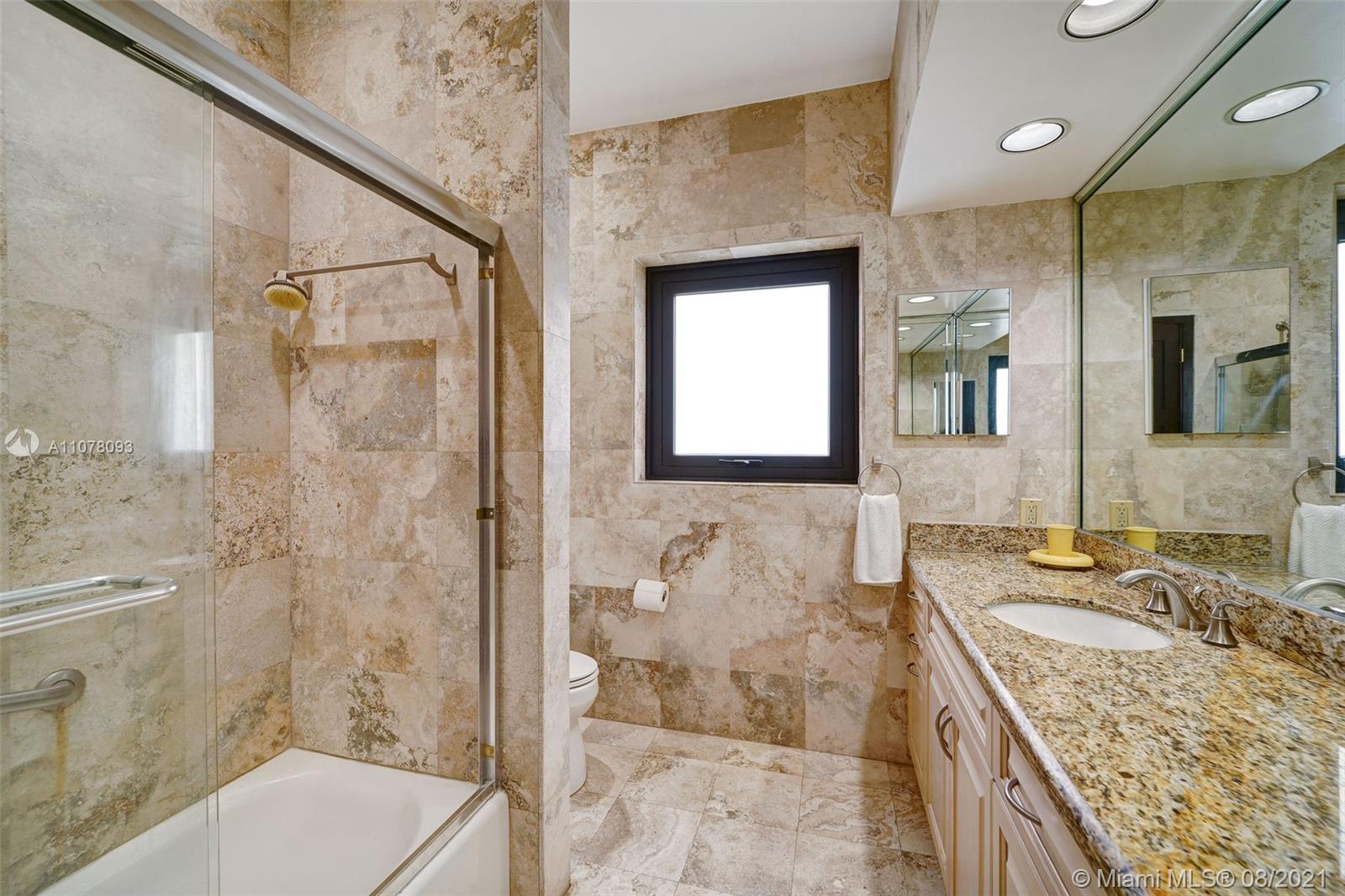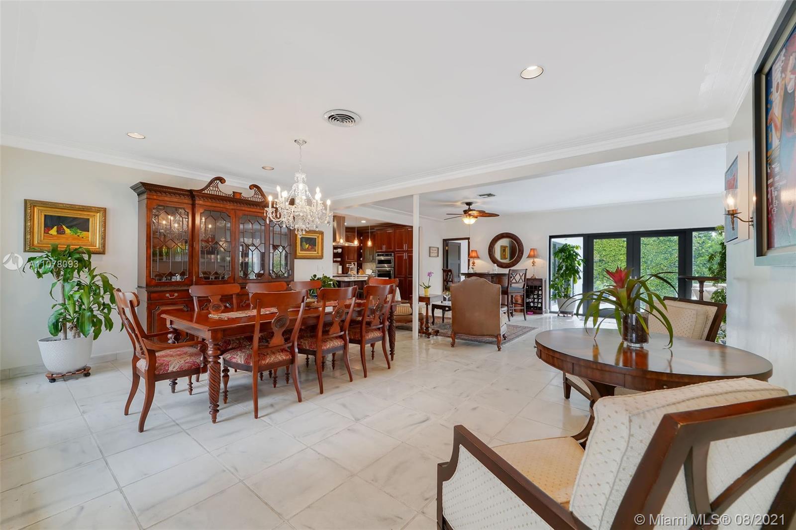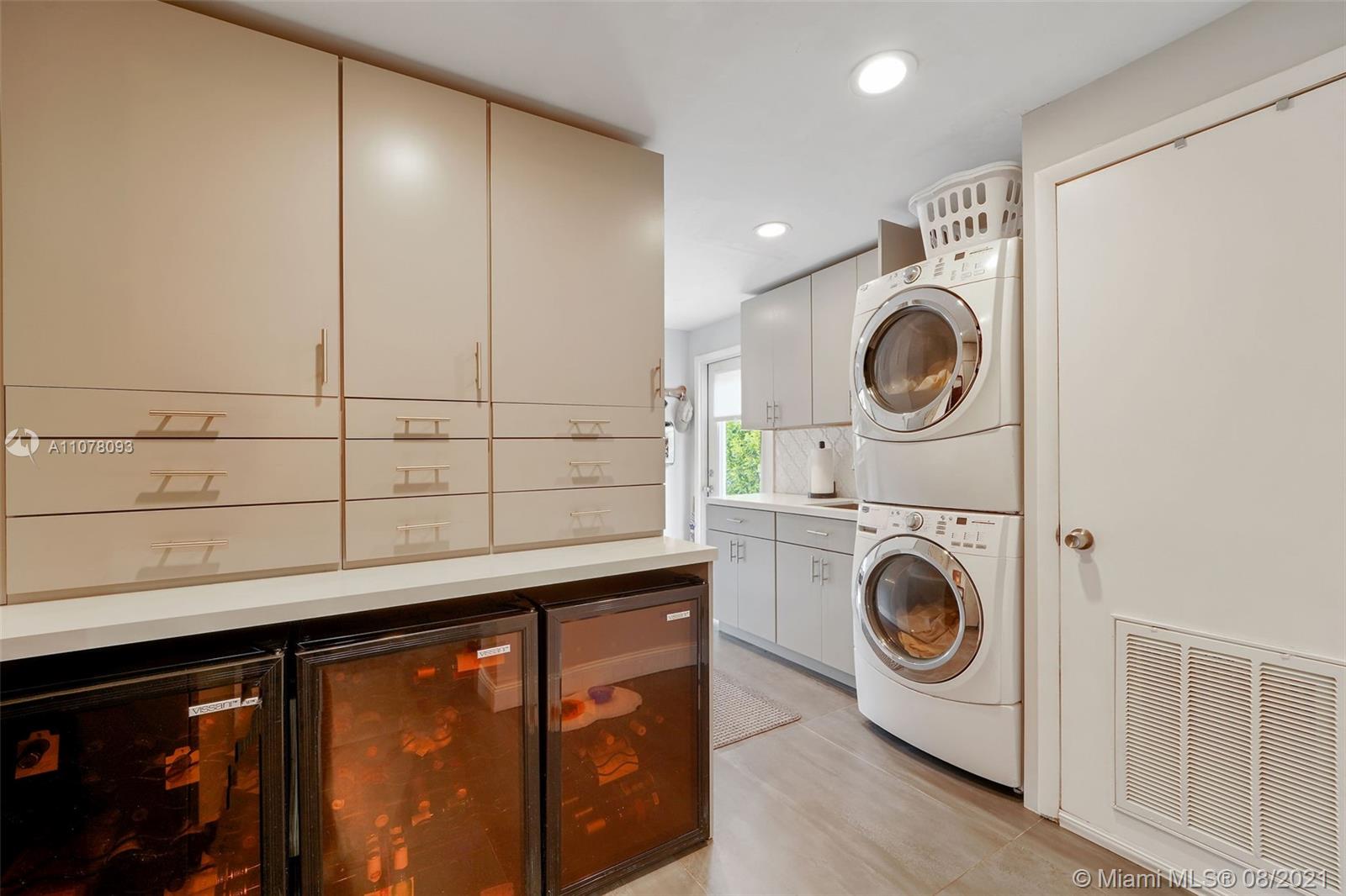 Welcome to "North Bay Villa"! This remodeled tropical modern villa includes an expansive primary BR w/dramatic high impact glass doors leading out to an elevated & wraparound terrace w/eclectic Spanish tile deck. The primary BR has wall-to-wall walk-in closets & an enlarged double-vanity en-suite bath made possible by an enlarged building footprint encompassing the BR. The main living is an open concept connecting the living, dining, & entertainment spaces. A true chef's kitchen designed w stainless hood, gas cooking, & large cooking island w/ adjacent bar area leading out to an expansive deck & outdoor patio. Features include roof retrofit, impact windows/doors, oak & white natural stone flooring. Guard gated bayside community w/private backyard & high foliage. Plenty of room for a pool!