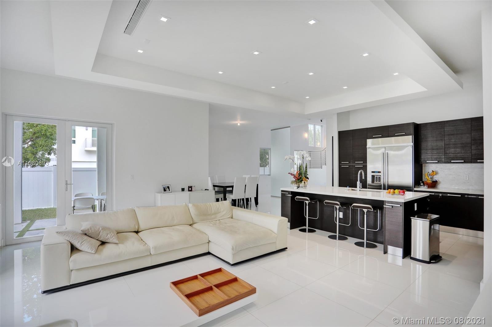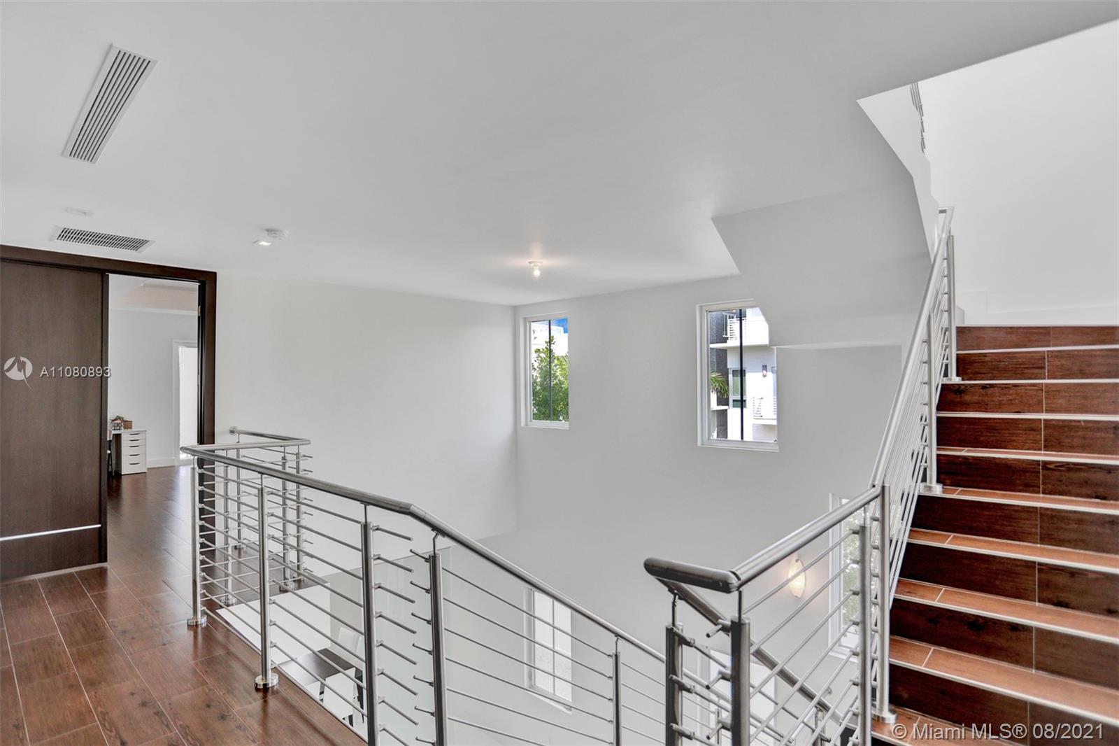 Modern corner home in the heart of Doral. 4 bedrooms - 5 1/2 bathrooms. Great finishes. Porcelain floors throughout the house. Beautiful glass wine cellar for the wine lover. One en-suite bedroom downstairs, great for guest or in-laws. Den area for those working from home! A completely redone/remodeled Rooftop with an outdoor kitchen, jacuzzi, full bathroom and spectacular city views. Nice ample backyard. Walking distance to supermarkets, restaurants and shops. Close to schools and highways. Guard gated community. Easy to show with a 24hrs notice Pls. Perfect home to Live, Work and Play!
