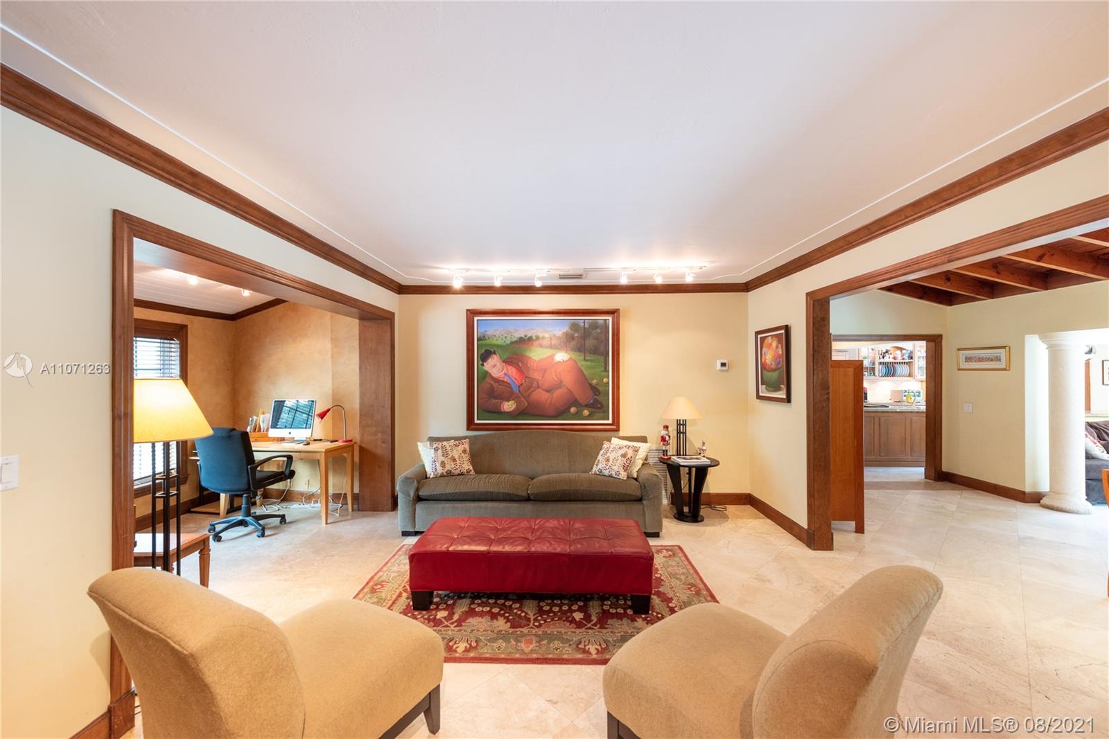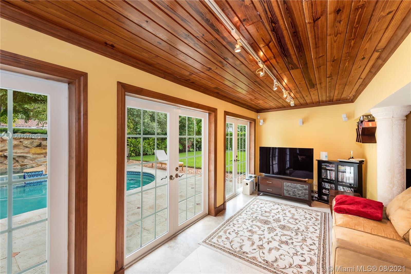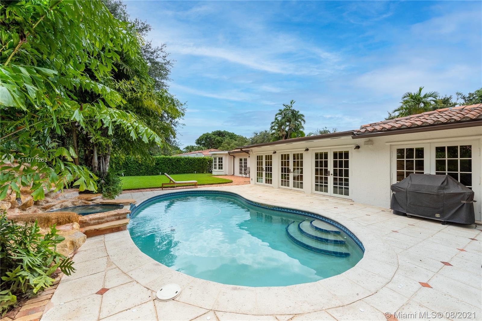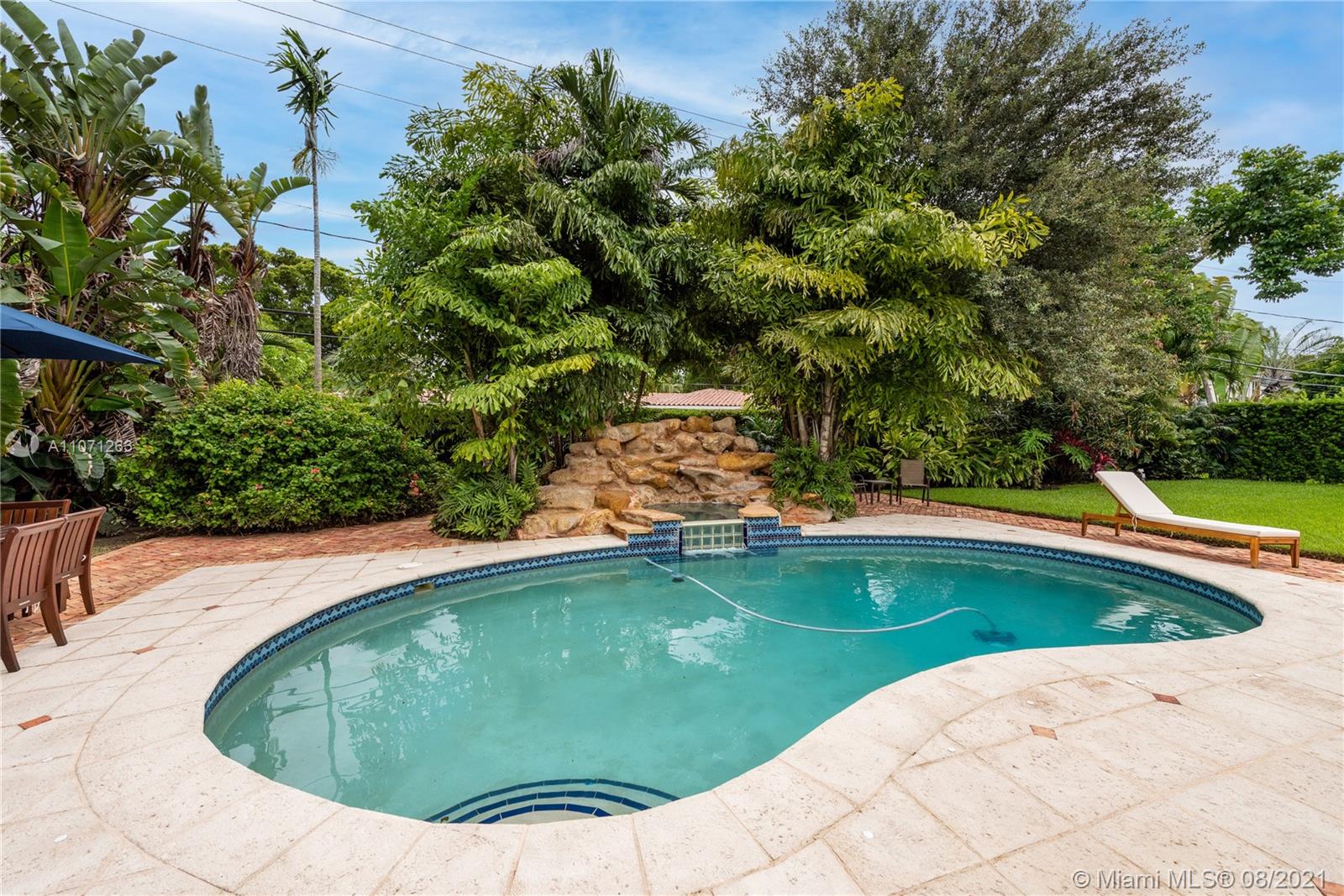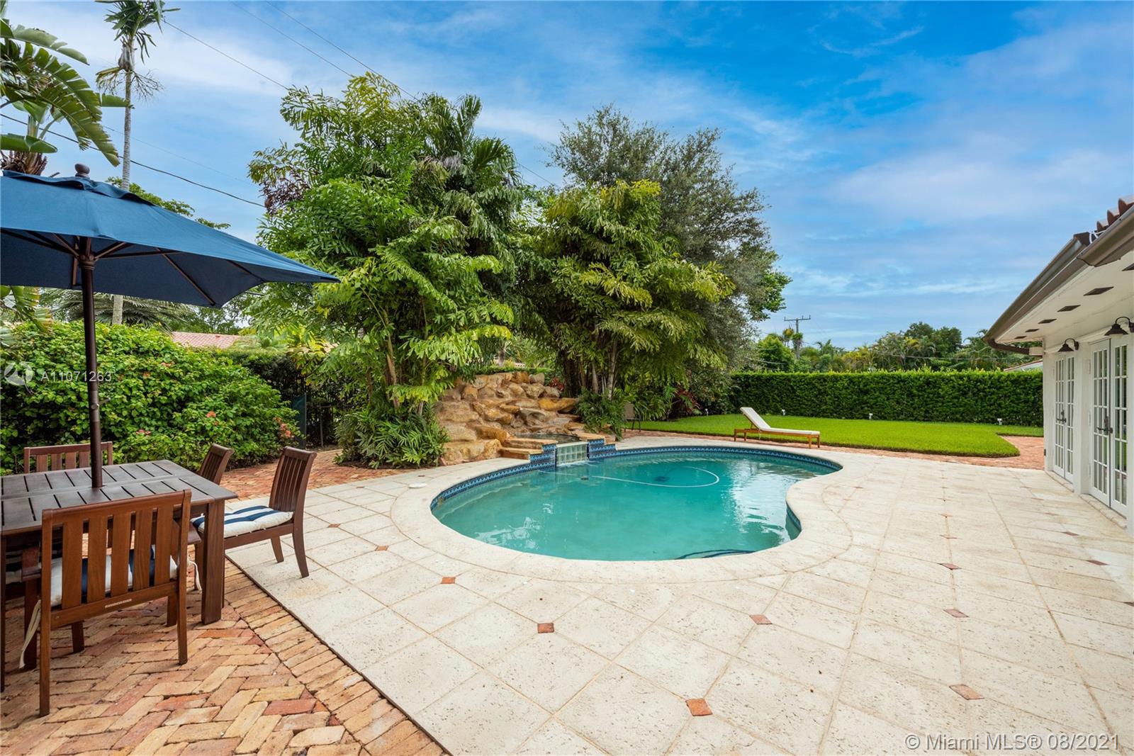 New Listing on Miller Road in South Gables, north of Hardee Road. Circular Drive. Three bedrooms, two bath home with over 2700 adj. sq. ft. on an 11,000-foot lot. Double doors lead to the foyer, then the living room with the dining room beyond. Family room has a beamed ceiling and overlooks a sparkling open pool with a large terrace, spa, and waterfall. All bedrooms off the hall to the East. Master is huge with a very large closet that used to be the fourth bedroom. Spacious master bath with separate tub and glassed-in corner shower. Updated kitchen with center island and lots of cabinet space. Office nook off the front of the living room. Updated baths. Jerusalem tile floors throughout... One-car garage. Room for additions. Flexible closing and ready for a new owner.