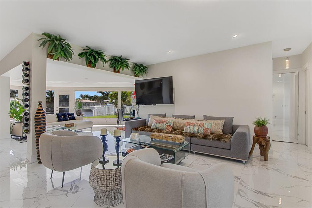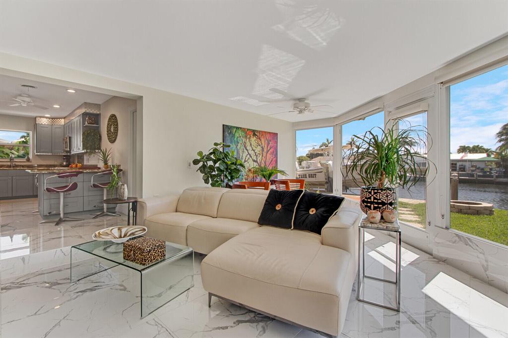 RUN to see this GORGEOUS DESIGNER WATERFRONT HOME on a Cul de Sac in Pompano Beach. As you enter, you can see all the way thru to the water & you will love the bright light & fabulous ITALIAN FLOORING throughout! NEW KITCHEN, ELITE APPLIANCES, SPECTACULAR FLOORING & FIXTURES make this home a SHOWCASE ON 70' of WATER. OPEN FLOOR PLAN, 2 AIR-CONDITIONERS, IMPACT WINDOWS ALL AROUND EXCEPT IN THE BACK - THE BACK WINDOWS ARE REMOVABLE - to let in the sunshine and fresh air. Of course there are hurricane panels to cover them if ever needed. The huge yard and deck offer so much room for outdoor entertaining - or just jump on the boat and head out ! Pompano is one of the fastest....