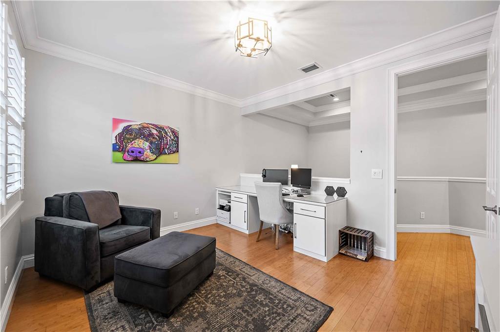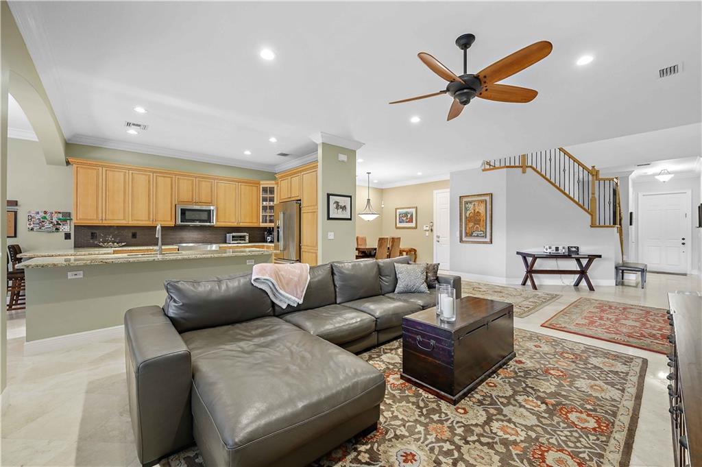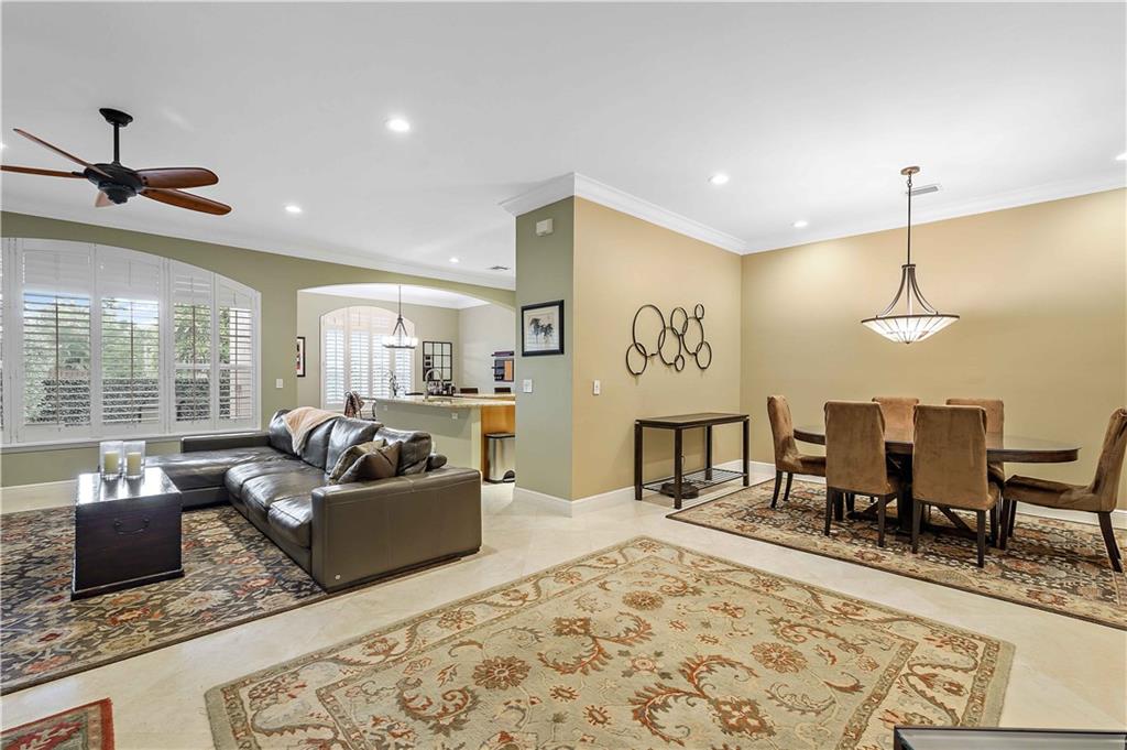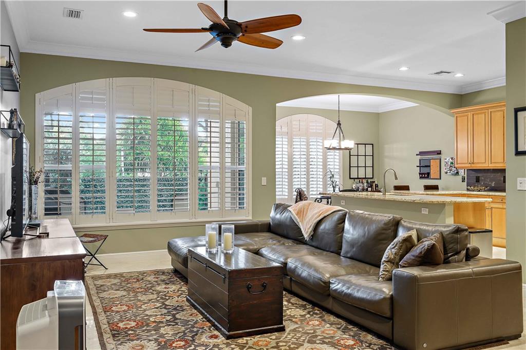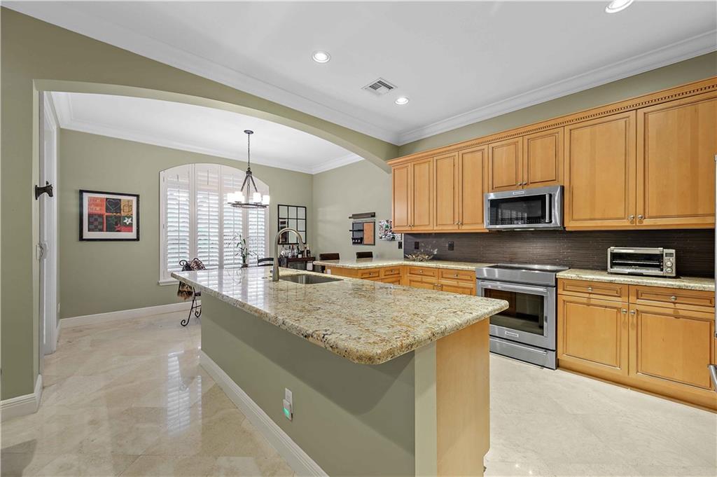 Victoria Park's Enclave II. Intimate village-style townhome complex of only eight units. Residents here enjoy gated motor court entry and private fenced backyards. This two level home boasts marble and Bamboo flooring, LED recessed lighting, crown moulding, volume and tray ceilings, Plantation shutters, wide staircase and a two car garage. No lack of social space here. Wide open design encompasses a spacious great room with formal dining room, a chef's kitchen with island + a breakfast area that opens to a covered porch overlooking the yard. The primary suite has a large sitting area, customized walk-in closet and access to a covered porch. BR 3 is currently used as a Den partially open. [Information is from 3rd party sources including BCPA and is believed accurate but not warranted].