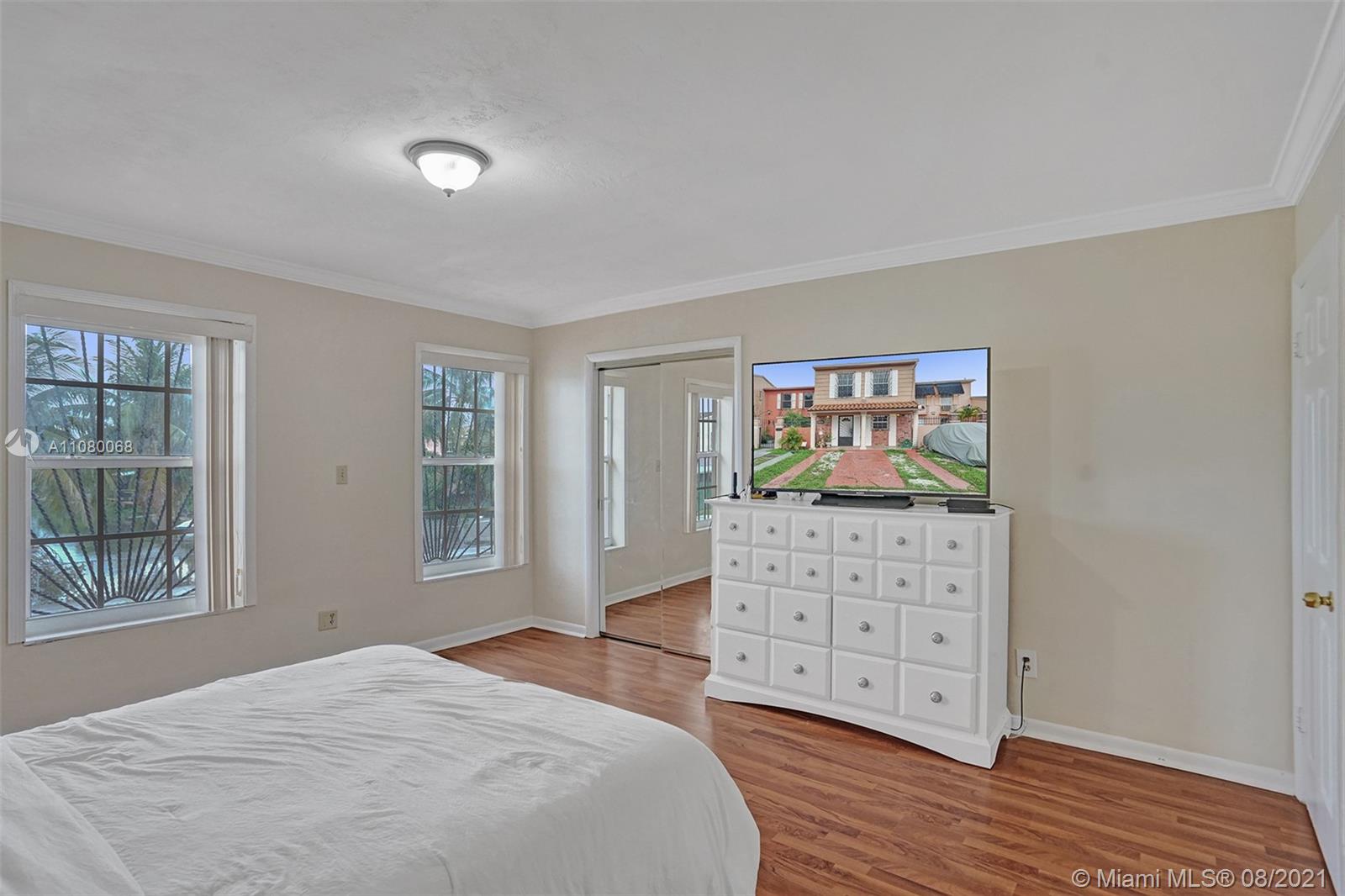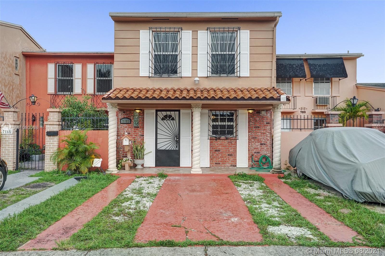 Welcome home to your beautiful 2 bedroom, 1.5 bathroom townhome in the heart of Hialeah with a water view from front porch and no HOA! This home is move-in ready. It has an updated kitchen, beautiful tiled floors downstairs and a 1/2 bath for guests. It is freshly painted with no popcorn ceilings. The original porch was enclosed and made into a Florida Room with an arched entryway making it a great room with the living and dining room. The covered lanai has your washer/dryer and bonus freezer. The patio has a built-in shed w/locked door. Upstairs boasts 2 spacious bedrooms with wood floors and the full bathroom. With the open floor plan, entertaining for you and your guests will be very enjoyable. Your new home is conveniently located near shopping, dining, and so much more.