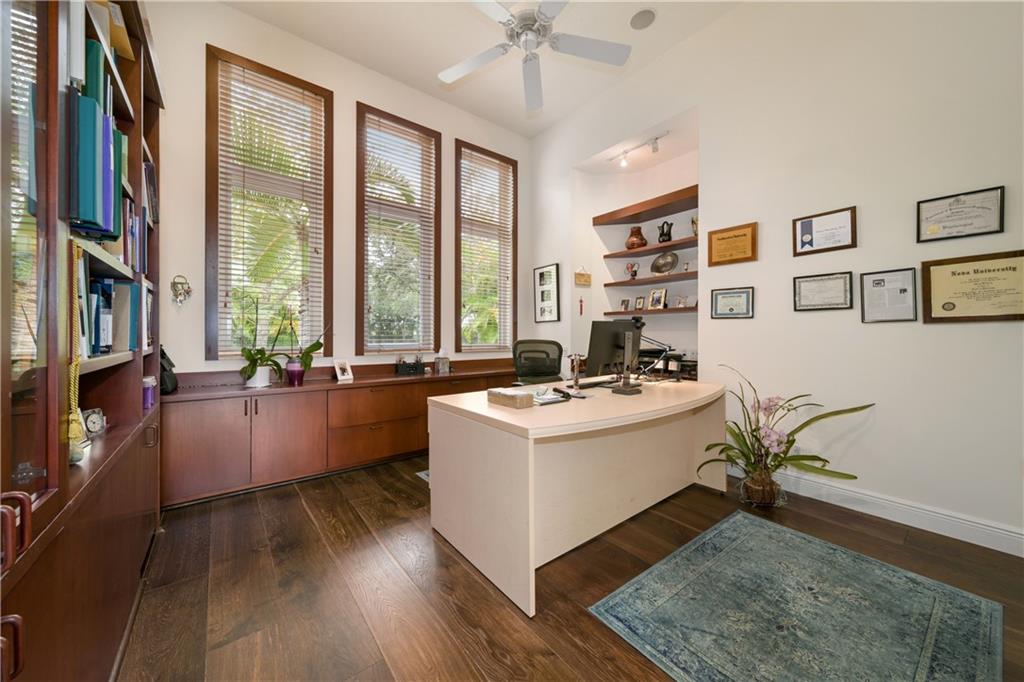 Gorgeous 4 Bedroom + 4.5 Bath + Office, single-level pool home located in prestigious Hollywood Oaks. Enjoy the tranquil water views on this large lot with an expansive patio area and low-maintenance landscaping. En suite bathrooms in all rooms, wood flooring, high ceilings, impact windows and doors, ceiling speakers wired for sound, motorized blinds, large two + car garage with pro storage systems, custom closets, and open kitchen. Hollywood Oaks provides great amenities including, 24-hour gated security, clay tennis courts, community pool, gym, basketball court, and playground. Conveniently located to all major roadways, FLL International Airport, and within walking distance to houses of worship. Beautifully maintained by the current owner and ready for the most discerning buyer.