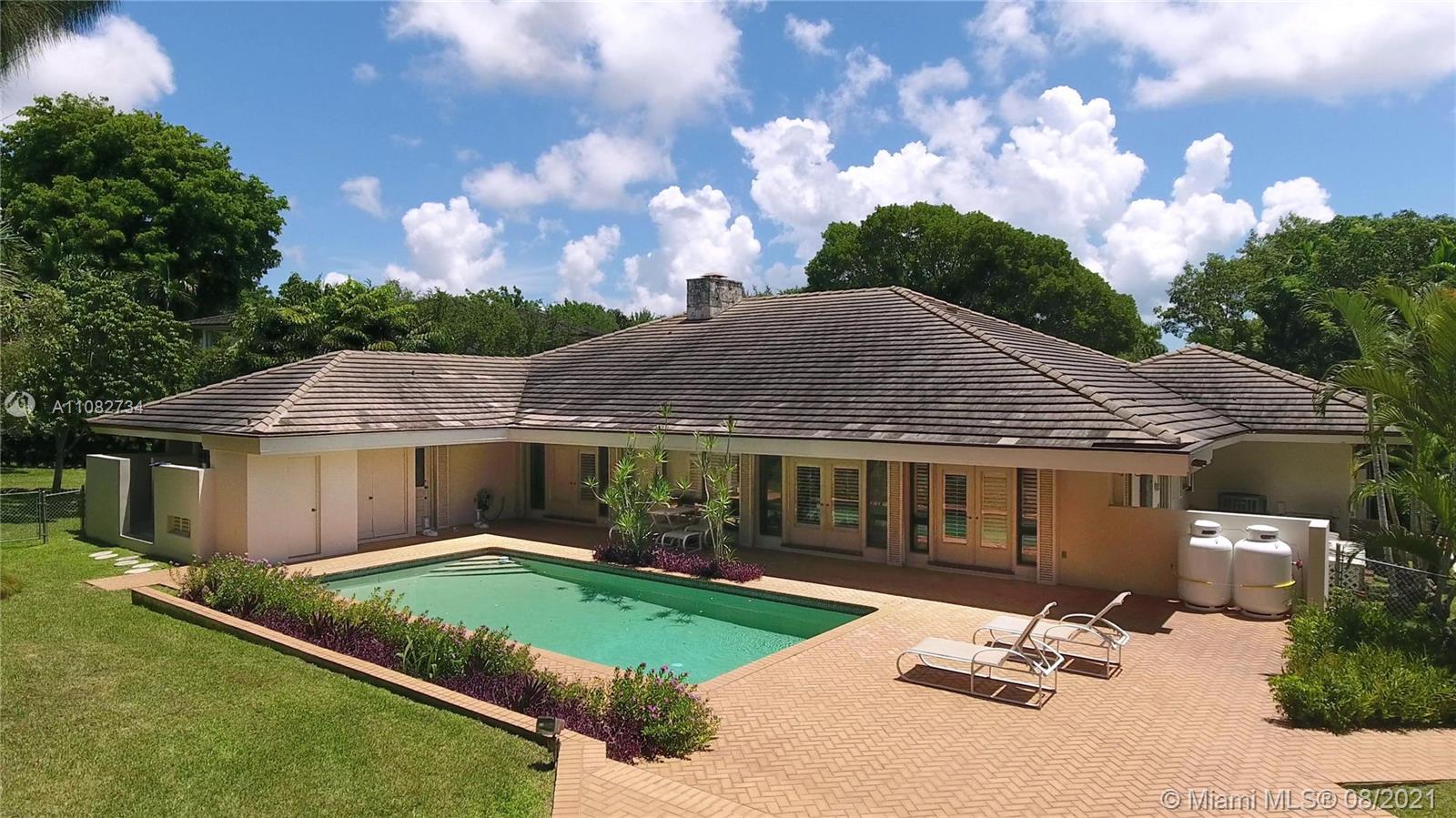 High on the hill one story home on a cul-de-sac. 3/4 quarter of an acre lot w/great potential to expand or build a new home. The entrance foyer of this inviting home leads to a big open space where the living rm, family rm & dining rm overlook the pool & patio area, surrounded by mature trees. The bedrm wing features 2 bedrms w/a jack-n-jill bath, the main bedrm, w/2 walk-in closets and large bathrm & an office. In the opposite wing, the kitchen w/a breakfast nook, double fridge and dishwasher, walk-in pantry, large laundry and exercise room. The pool area has half-a bathrm and outdoor shower. Working fireplace with keystone facing, generator that services half of the house, 2-car garage and spacious driveway. Charming home with lots of room to grow. Foyer chandelier is excluded from sale
