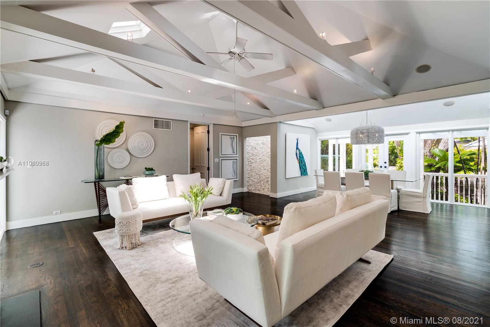 When dreaming what life could be like living in Coconut Grove, this magical home captures the imagination. Filled with charm and character, not to mention a most interesting history, 4250 Lennox is truly a classic. It sits proudly on a lush, 15,780' lot, tucked onto a beloved, private, winding road in the South Grove. Vaulted ceilings, wood floors, new metal roof, new impact windows, and new bathrooms will envelope you, as will the sun-drenched rooms. The Chefs eat-in kitchen w/Wolf & Subzero appliances overlook a sexy pool and coral rock gardens. An incredible family room and two home offices provide the necessary spaces for today’s homeowner. Porches and terraces beckon outdoor living. A Very Special Home.