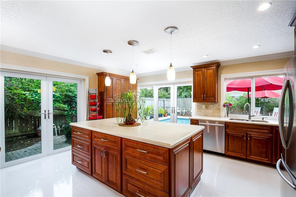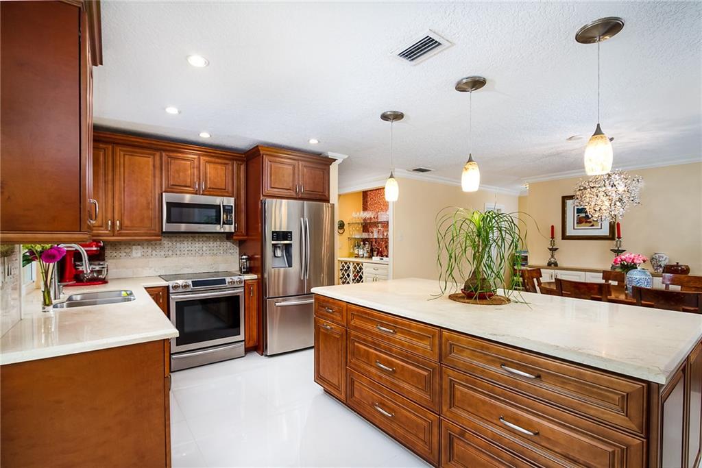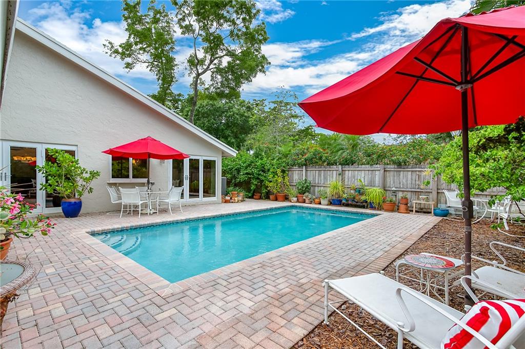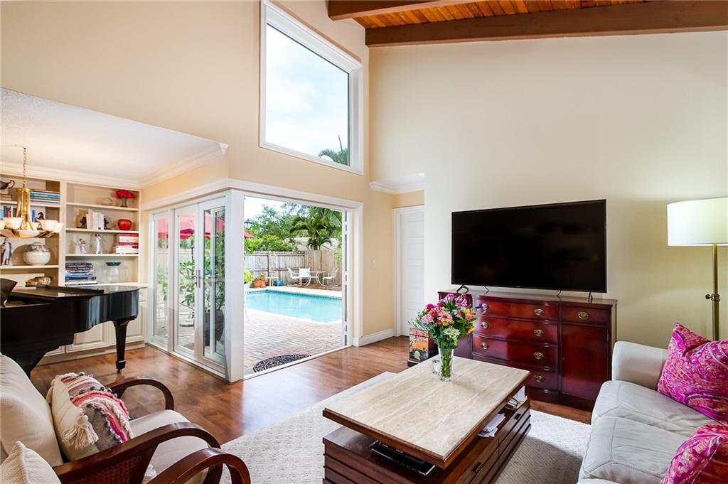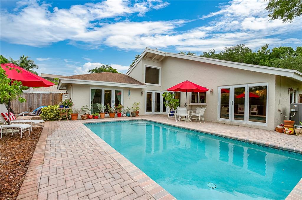 Location, Location! Six miles to Beach, Beautiful spacious 3BR 2.5 baths single-family home with pool in quiet peaceful gated Greens of Emerald Hills. The community is landscaped beautifully and walkable to stores and restaurants. Renovated in 2015, with a new Kitchen (Marble), 6 sets of Hurricane French doors, New Pool and Deck, New AC Rheem. Floors are half wood/ half porcelain tile. Closets galore! Immaculate condition, this home has vaulted ceilings with gorgeous wood beams. Move-in ready!