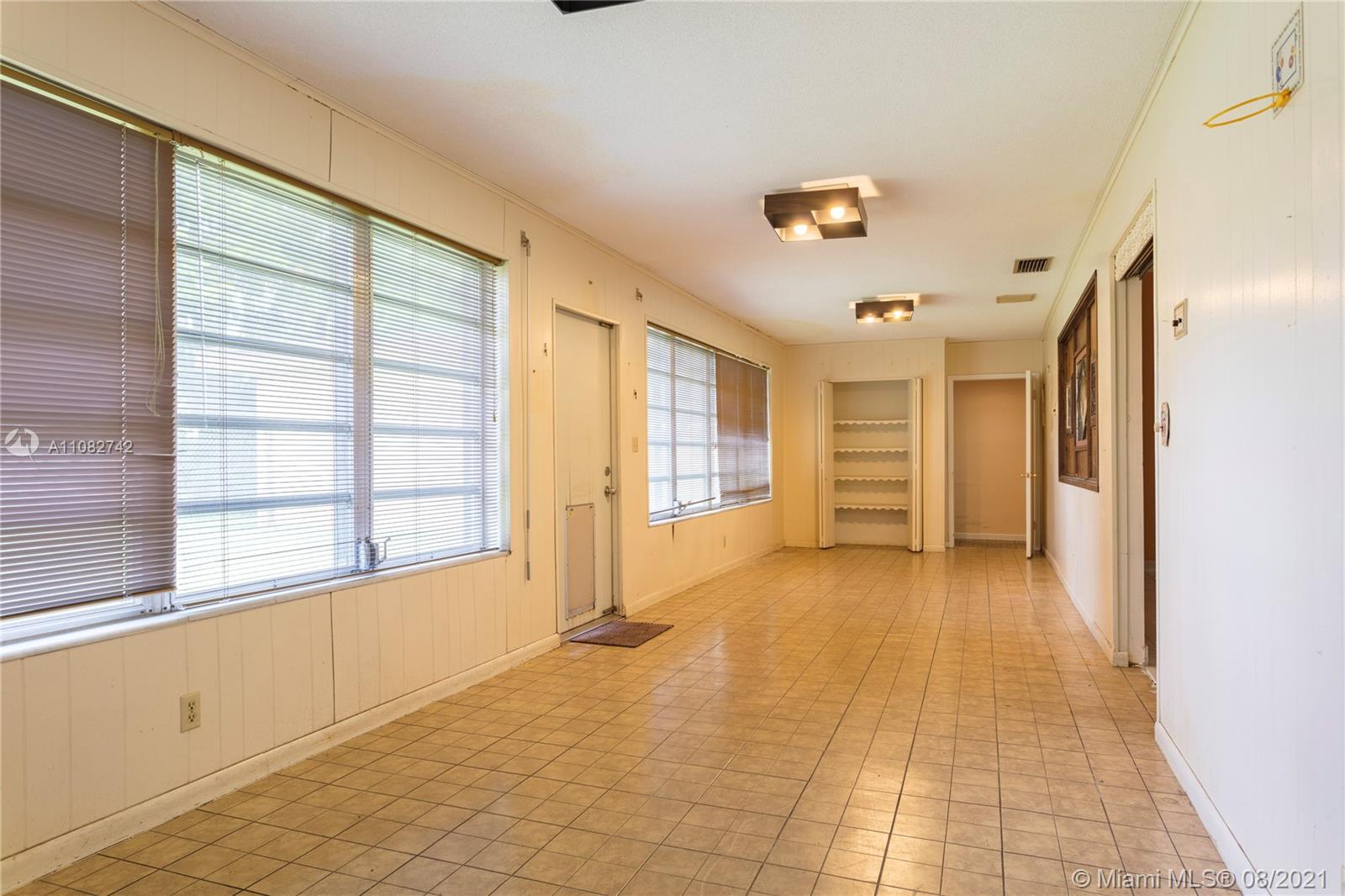 Hollywood Hills house with Over 4500 sqft of living area, large yard and room for pool. 6 bedrooms and 3 full bathrooms with 2 car garage in addition to the circular driveway. Built in 1966 with original owners. This house is located on a corner of a quiet block ready for full renovations. One of the kind house with unique features. Updated kitchen with wood cabinets and SS appliances. House is protected with electric shutters all around and fully equipped with a generator. Great for a buyer with desire to renovate and enjoy a large home in a great neighborhood. Easy to show.