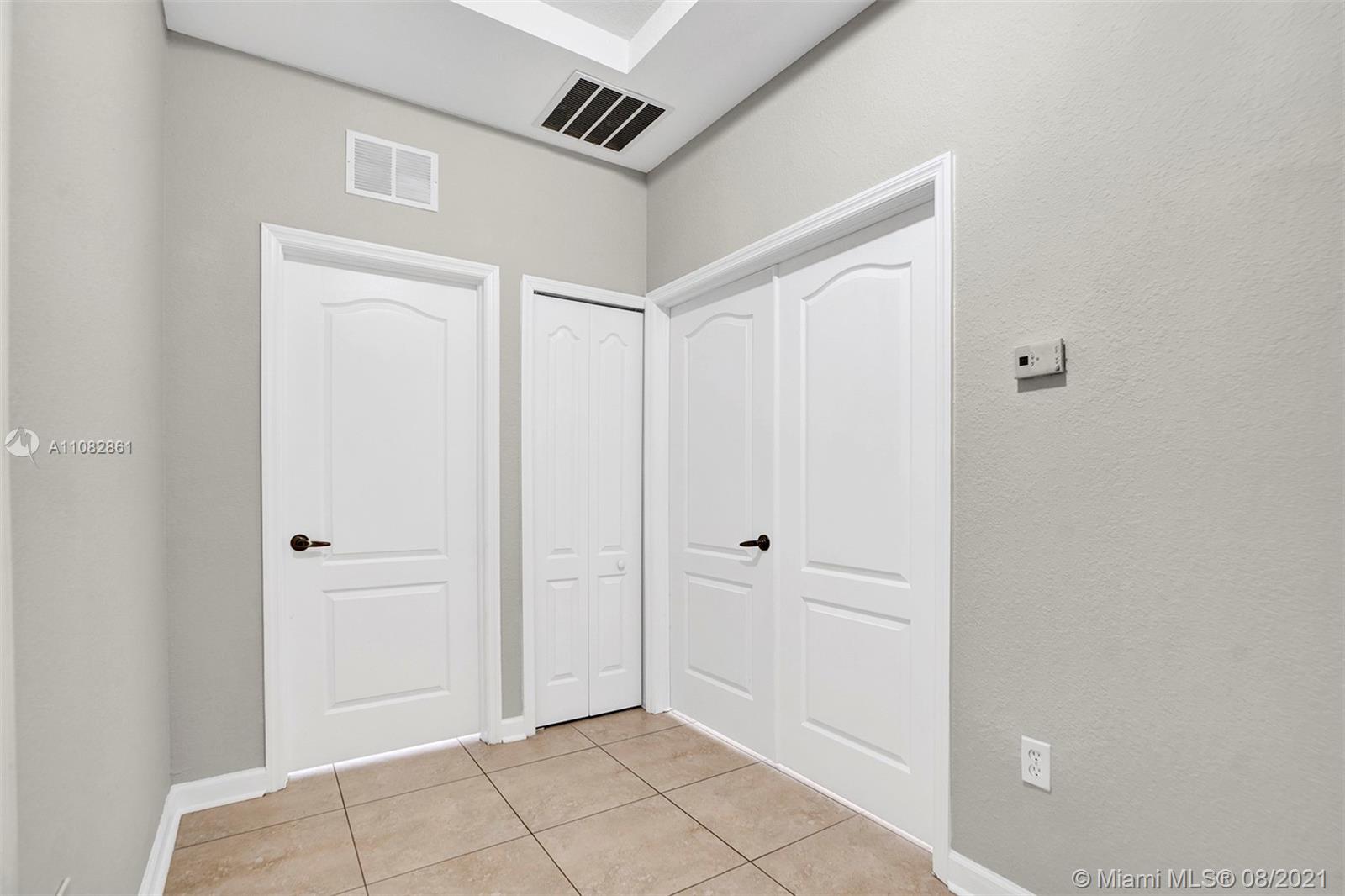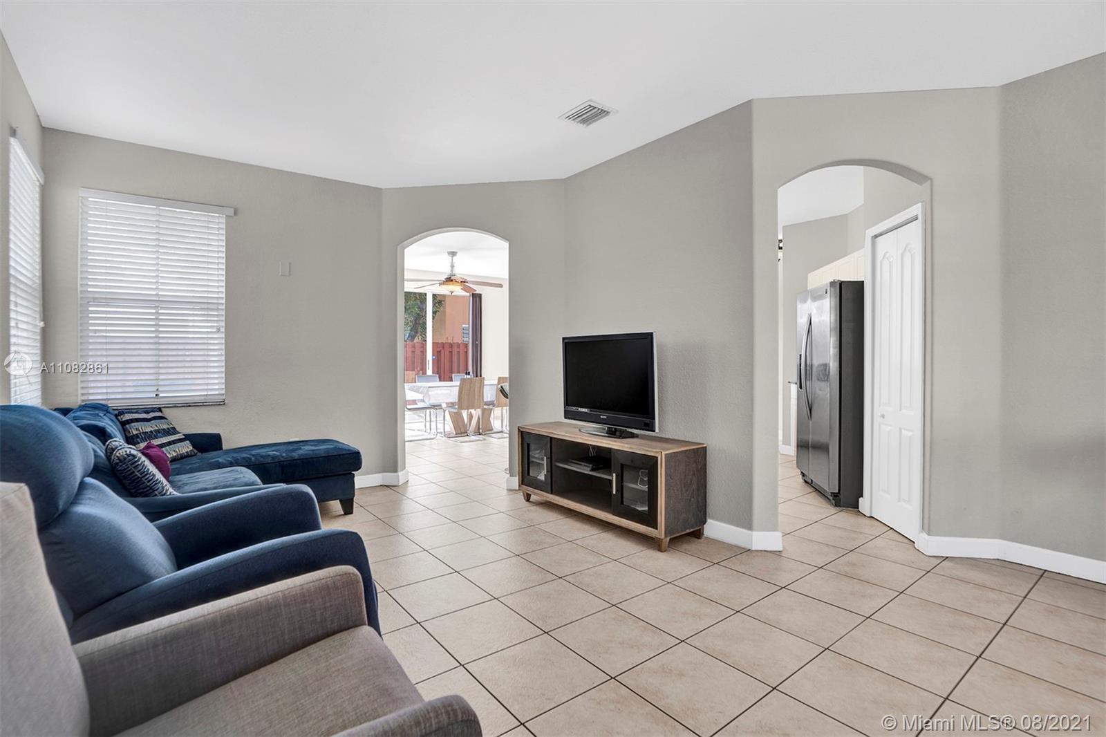 Corner coach unit w/ plenty of natural light. On the 1st floor: living room, family room, kitchen w/ stone countertop & stainless-steel appliances, pantry, storage under the stairs, a bedroom & full bathroom and 2-car garage w/ door openers. Carpet ONLY in the stairs. Upstairs: master bed/bath w/ dual sinks, 2 more bedrooms sharing a bathroom, linen closet and laundry room w/ washer/dryer. Fenced patio w/ gate so trash bins don’t have to be in the garage or go through the home on trash day. Residents have access to the Islands at Doral Clubhouse. VERY close to Dr. Rolando Espinosa K-8 & Dr. Toni Bilbao Prep Academy. About 1 mile from Ronald Reagan High School. Drive by, community not gated, but do not disturb the tenants. Your family would be very happy here!