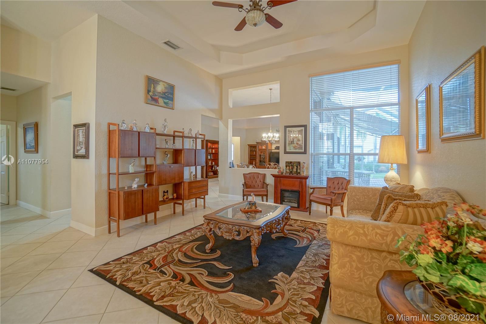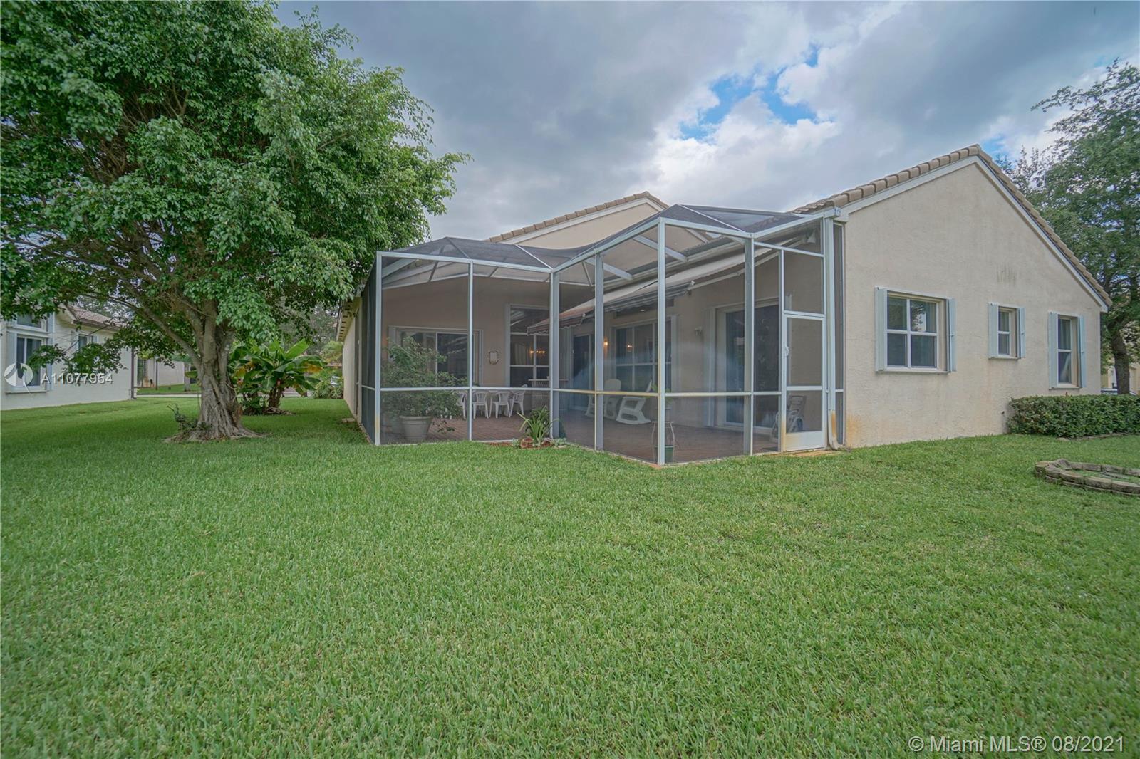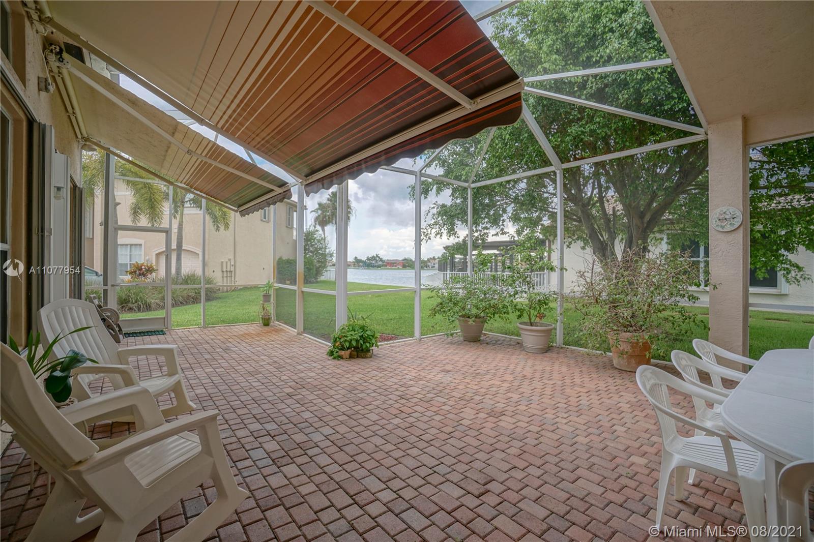 Enjoy the spectacular natural light in this gorgeous Miramar home featuring 5 bedrooms, 3 bathrooms, 3 car garage. Home features include; open floor plan, large open kitchen, breakfast nook. Huge screen enclosed patio makes for the perfect place for entertainment and relaxation with view of the lake. Motorized canopies. Large master suite with his and her walk-in closets and patio access. Large master bath, dual sinks, separate tub and shower. Split floor plan. 2 A/C Units. 5th Bedroom being used as office space. Laundry room with sink. Accordion shutters. Community clubhouse has many amenities including pool, tennis, basketball, kids club, full gym. A+ schools.