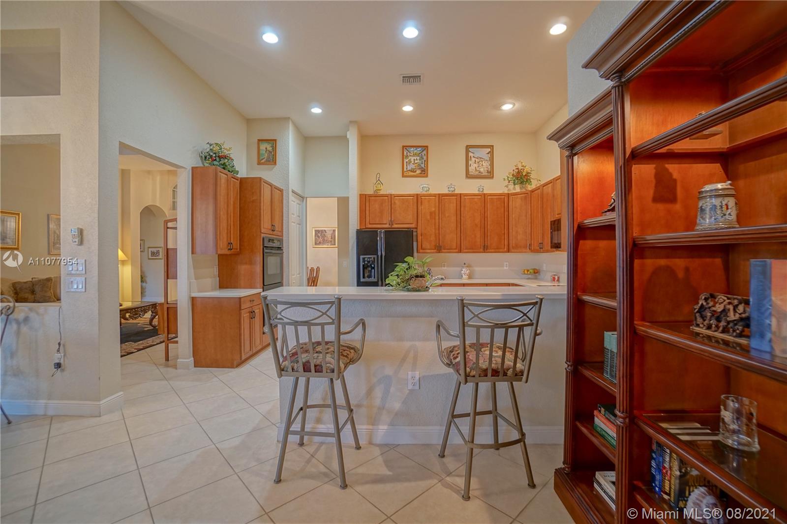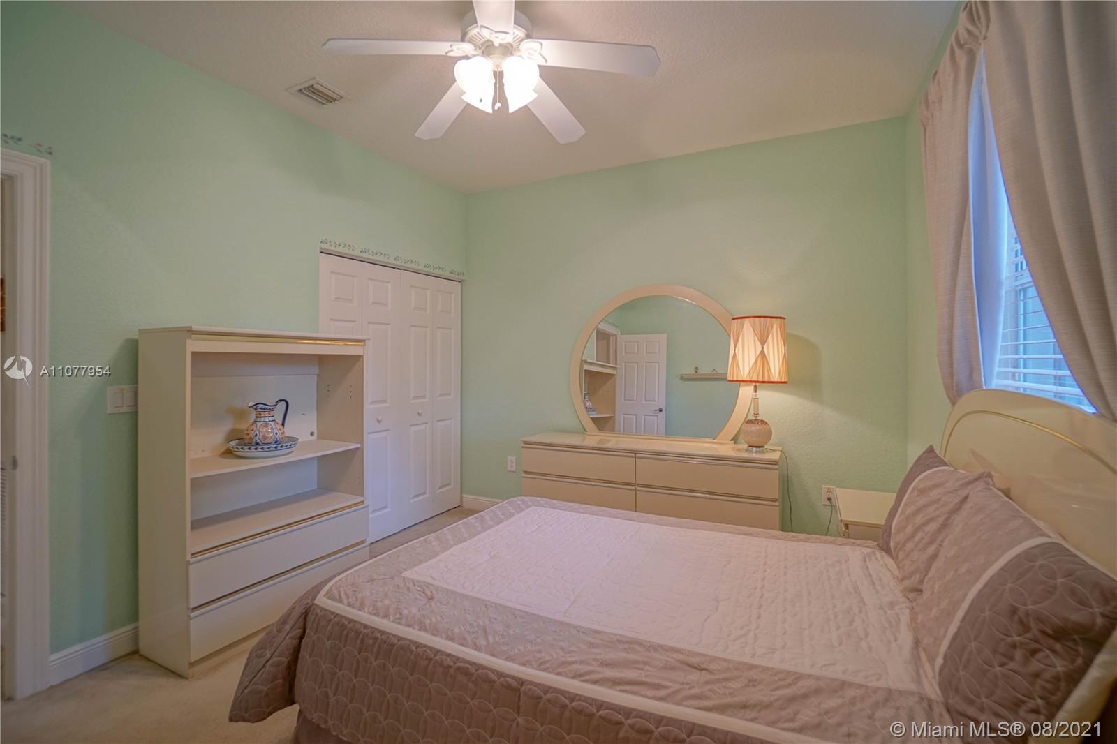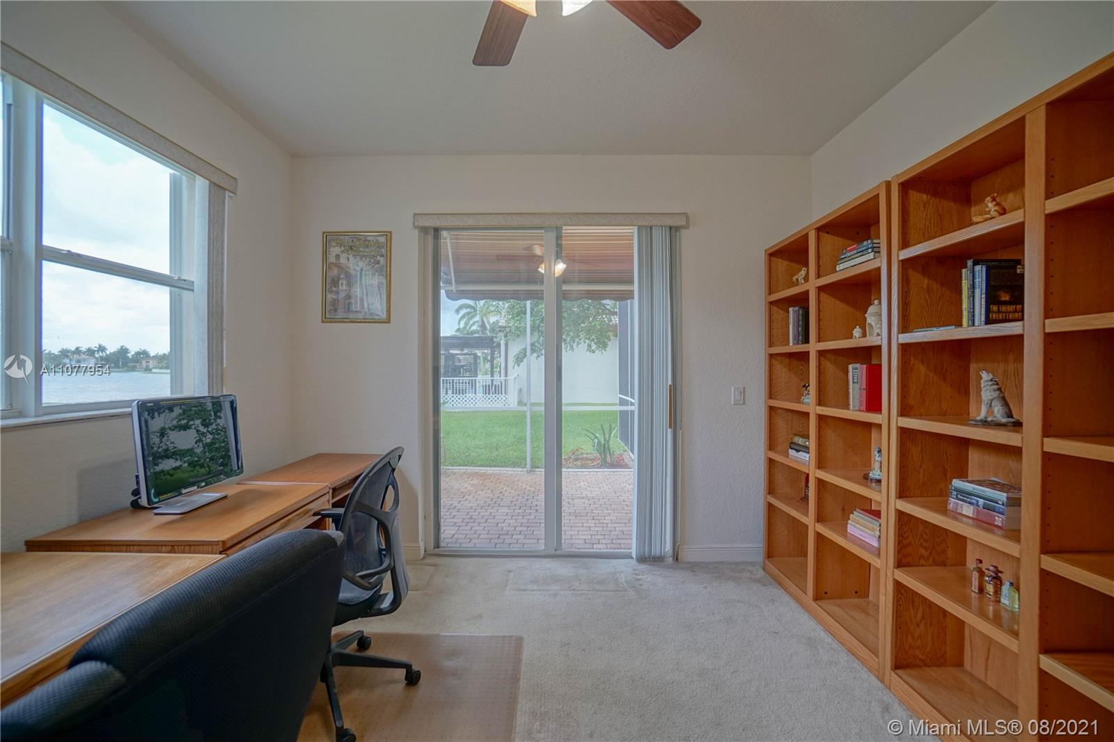 Enjoy the spectacular natural light in this gorgeous Miramar home featuring 5 bedrooms, 3 bathrooms, 3 car garage. Home features include; open floor plan, large open kitchen, breakfast nook. Huge screen enclosed patio makes for the perfect place for entertainment and relaxation with view of the lake. Motorized canopies. Large master suite with his and her walk-in closets and patio access. Large master bath, dual sinks, separate tub and shower. Split floor plan. 2 A/C Units. 5th Bedroom being used as office space. Laundry room with sink. Accordion shutters. Community clubhouse has many amenities including pool, tennis, basketball, kids club, full gym. A+ schools.