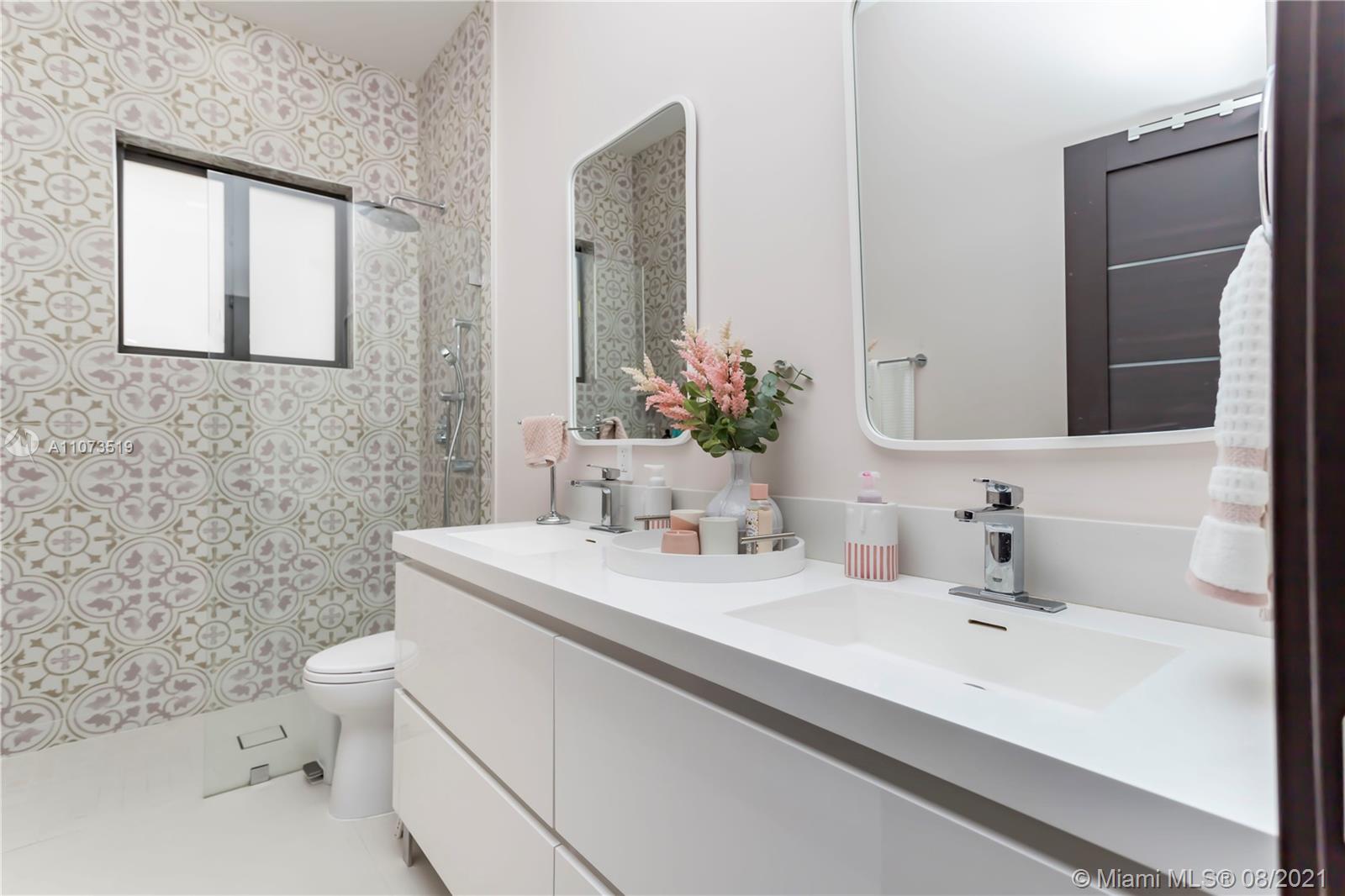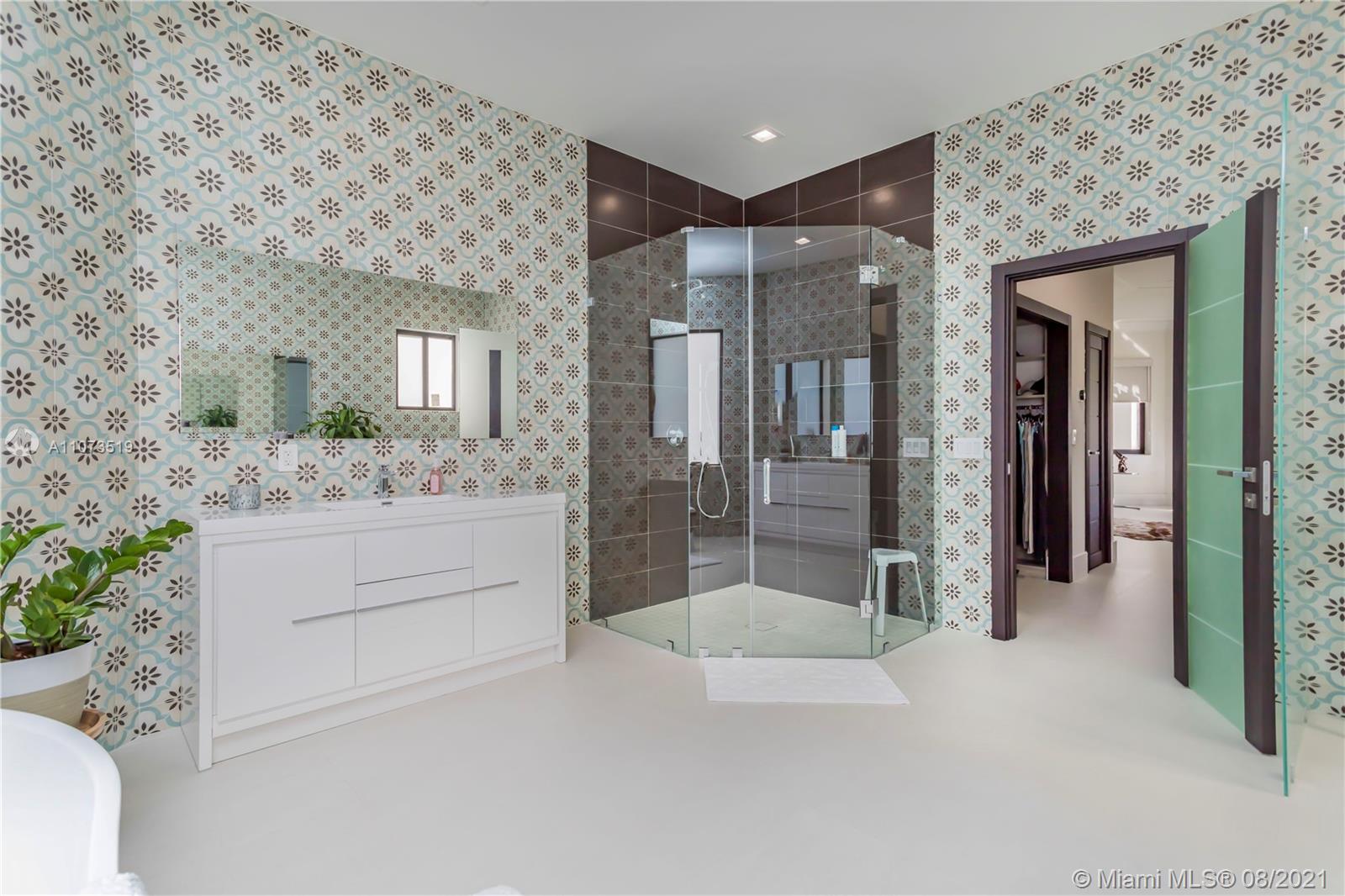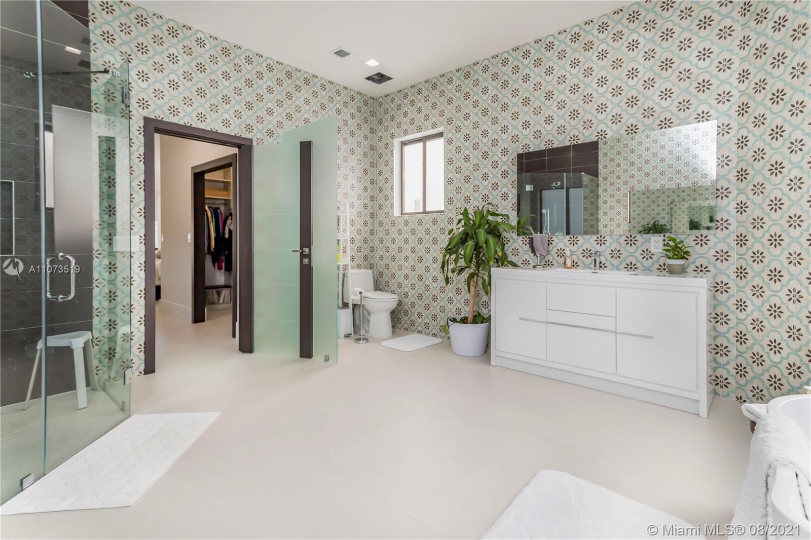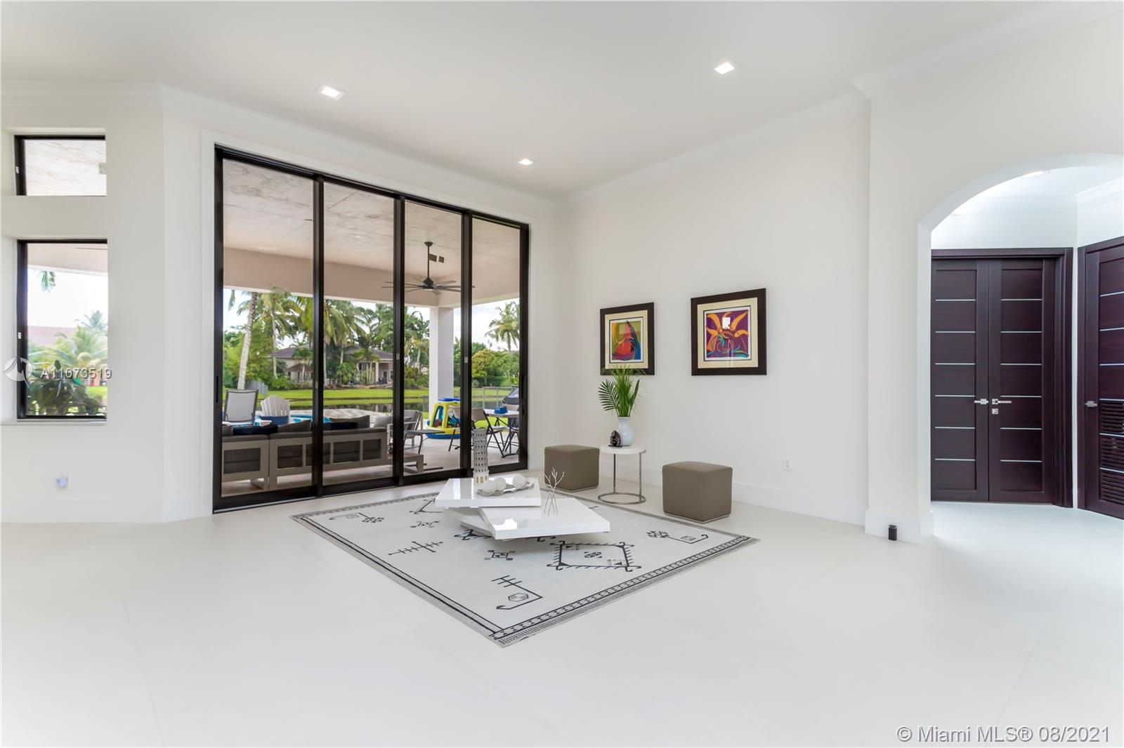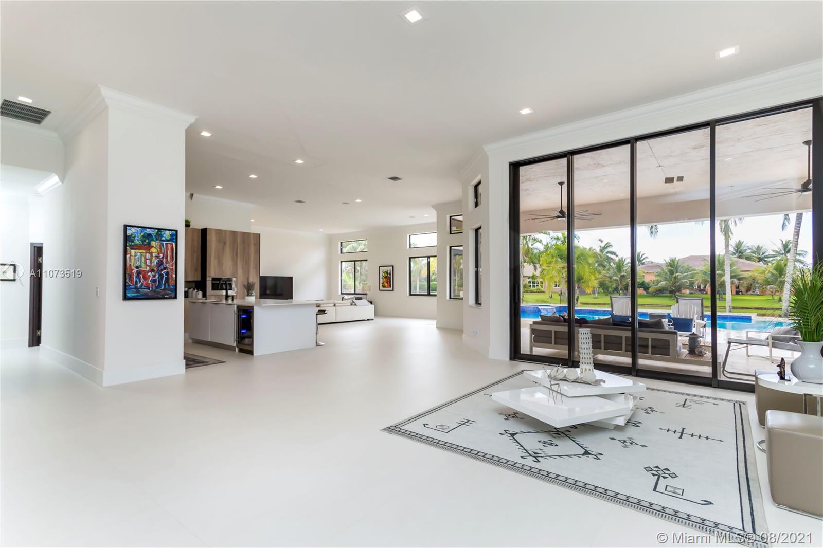 Completely move in ready modern home! Renovated floor to ceiling! Windows & doors are brand new hurricane impact glass. Sliding glass doors to pool are new commercial grade, extra tall giving you the largest opening possible. New 40” by 40” porcelain tile found throughout. Brand new kitchen w an open concept, perfect for entertaining. Enjoy cooking w all new top of the line stainless steel Subzero & Wolf appliances, custom cabinetry, lg island & quartz counter tops. All new custom modern doors. All new light fixtures & ceiling fans are brand new. All baths fully remodeled w new showers, tiles, tubs, fixtures, toilets, mirrors, & vanities. Both ACs, washer & dryer are brand new. Backyard has the most spectacular view sunsets. custom pool has just been resurfaced & new travertine patio
