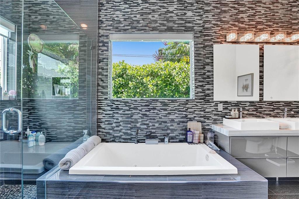 Stunning updated contemporary Coral Ridge home in Bayview School district! Whole house remodel w/additions in 2013-14 with new C.O.s. "Stop the Car" curb appeal showcasing beautiful stone façade, metal roof, circular drive & lush landscaping custom lighting. Covered BBQ area w/ sink & fridge, heated pool & spa with separate stand alone hot tub. Inside you'll find a spacious open floorplan plan featuring an oversized Viking appointed kitchen accented with Caesar Stone island and a wall of floor to ceiling sliding doors overlooking the entire entertainment pool-spa-summer kitchen areas. Master suite has a private second floor living area w/balcony. Whole home Sonos, LED lighting, security, motorized shades, steam W/D, tankless water heater, 2 wine coolers, fireplace and more!