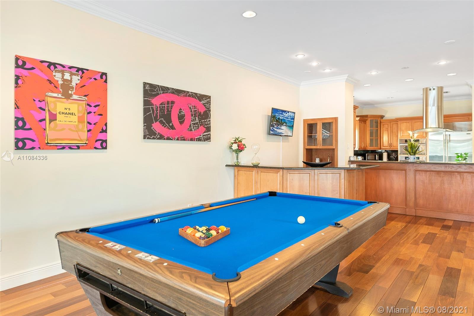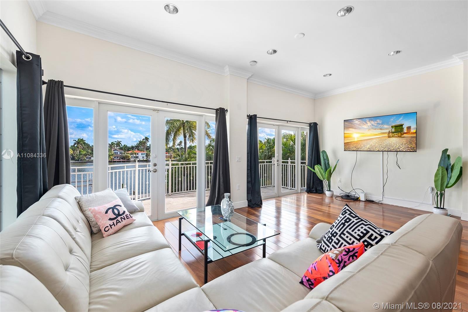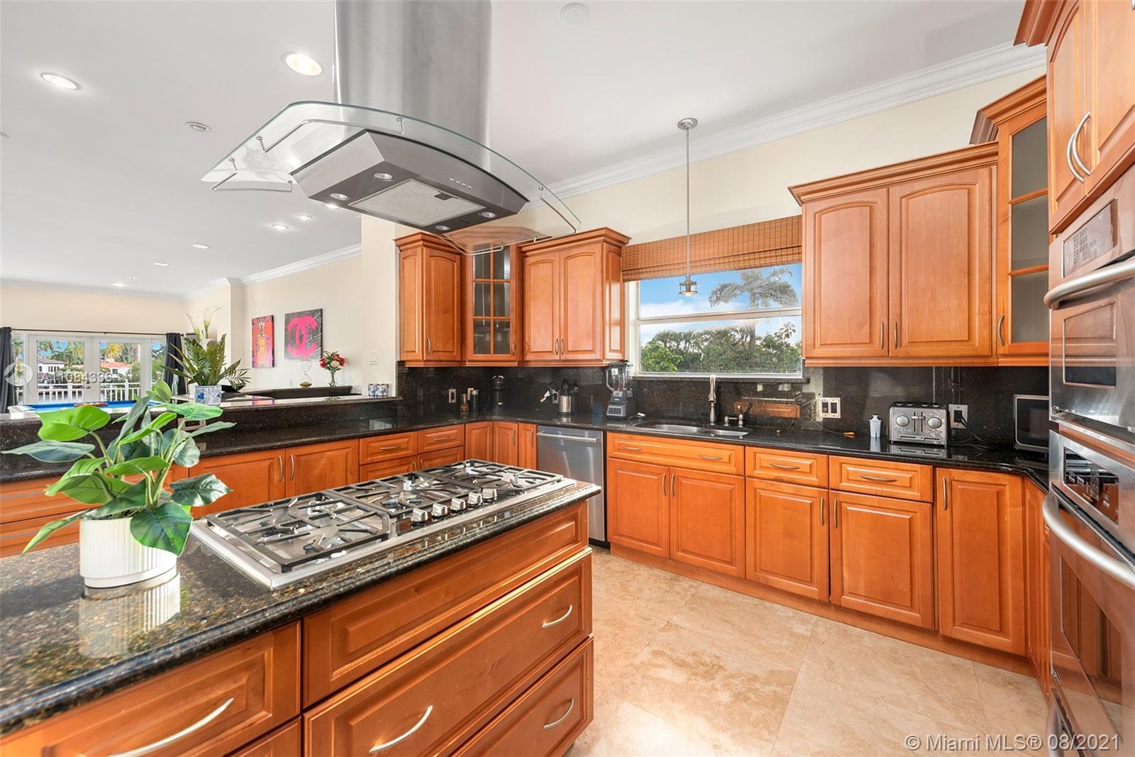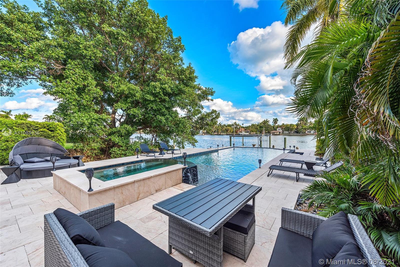 Incredible opportunity to live on the water with no fixed bridges and ocean access. Architecturally designed Pebble Tech Pool w/Beach Shelf entry, Spill over Spa, bubblers, waterfall and moat. Spacious bright living area, floor to ceiling glass & new Brazilian wood floors. Open Kitchen with a Gas Thermadore professional cook top, Subzero frig etc. Prestigious Hollywood Lakes, centrally located, biking distance to Hollywood Beach. Two balconies on second level overlooking the pool and gorgeous water views. Large Travertine Patio surrounding pool with option for a Summer Kitchen-gas connection. Currently 6 bed 4 bath-has various options for different layouts-rooms for Media, Office, Summer Kitchen, Entertainment/Play Room