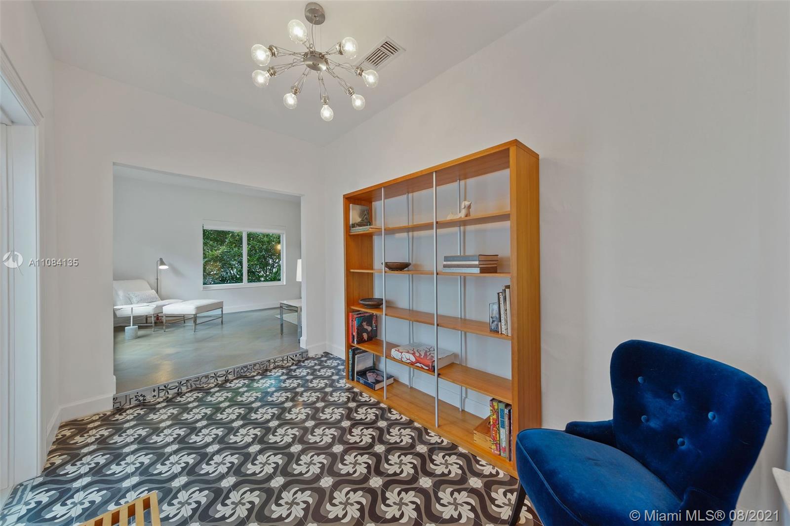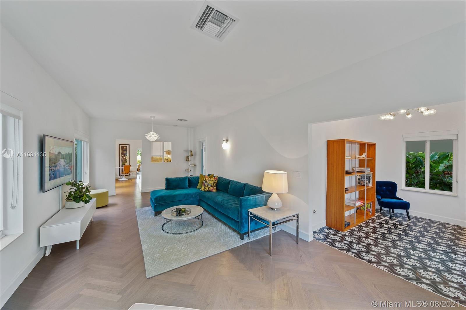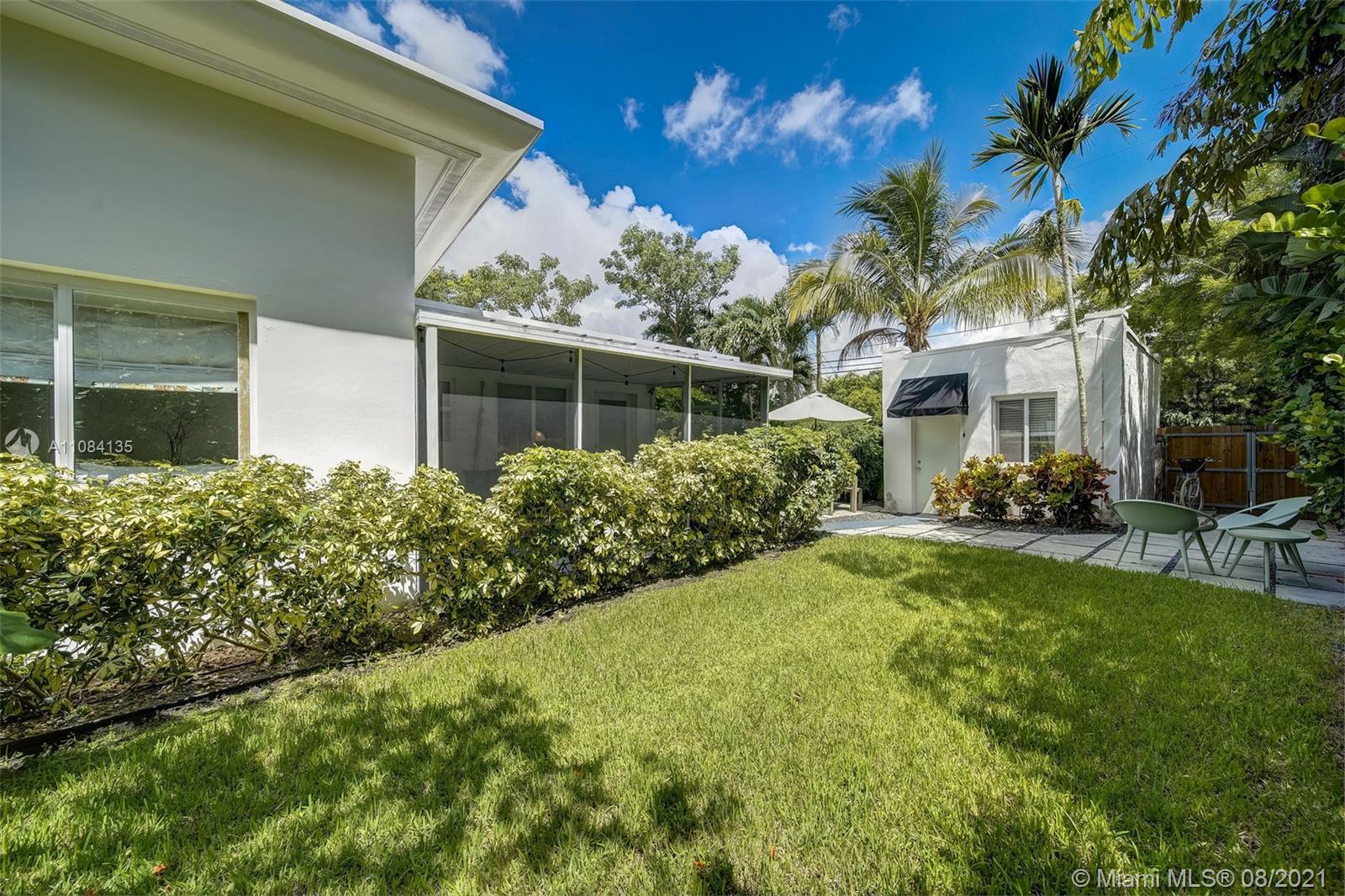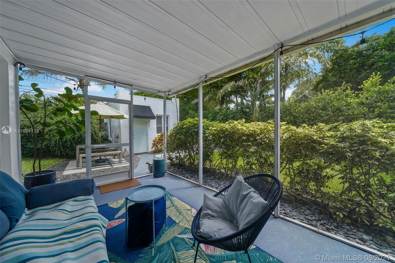 Stunning Miami Shores residence with absolutely gorgeous custom finishes, high ceilings, and beautiful landscaping, with no expense spared! Detached converted garage w/plumbing is a great flex space for a gym or artist studio. Home has 2 bedrooms/ 1 bath on one side, and a convertible 3rd bedroom or family room + 2nd bathroom after kitchen leading to a charming screened patio. See floor plan in photos. Lovely tiled foyer leads into the main living area with recently installed beautiful oak wood flooring in a herring bone pattern. Contemporary kitchen with top of the line appliances and ravishing dolomite backsplash. New roof w/ tapered insulation for main house & studio. Home has impact windows & doors, new electrical panel, & carport electrical for your electric car charger. Must see!