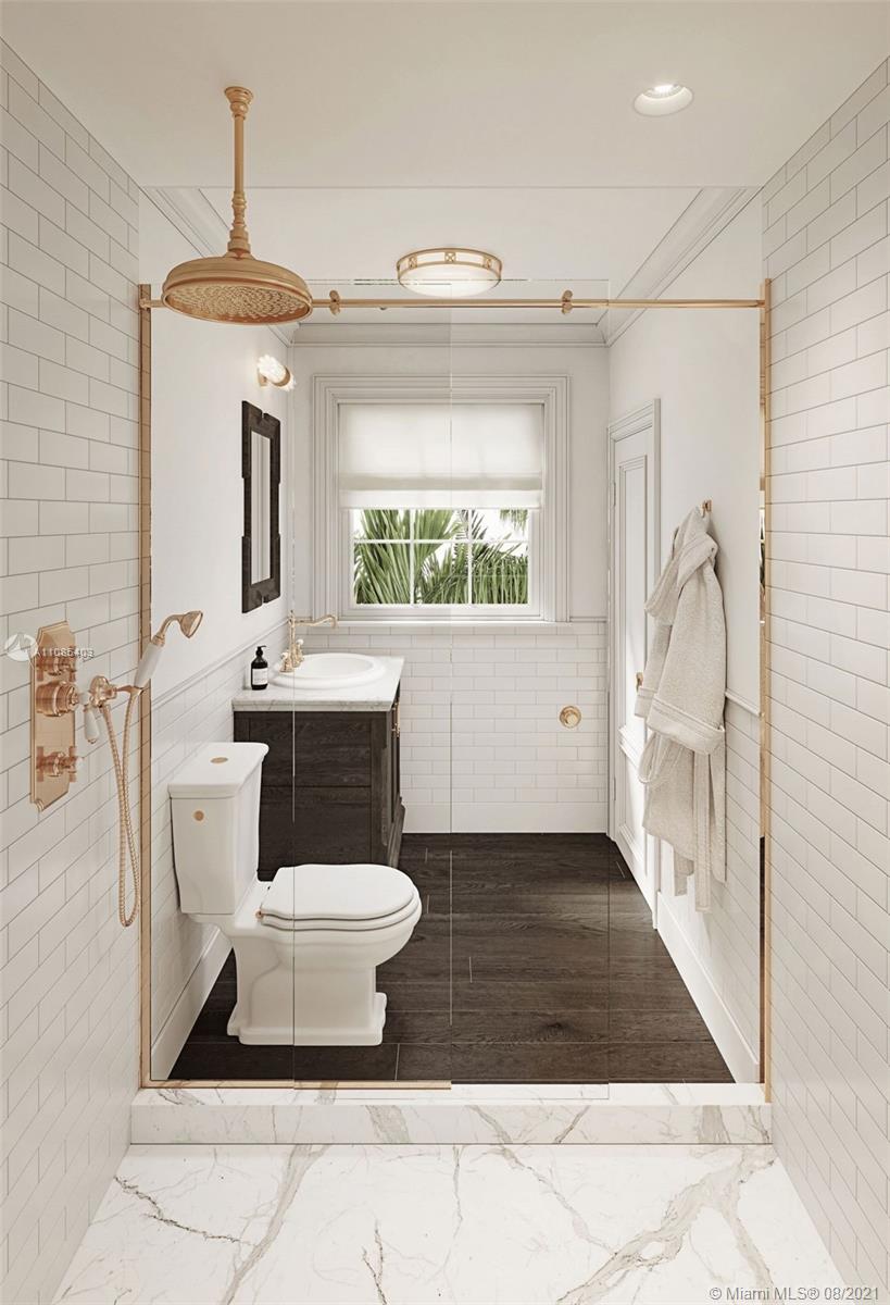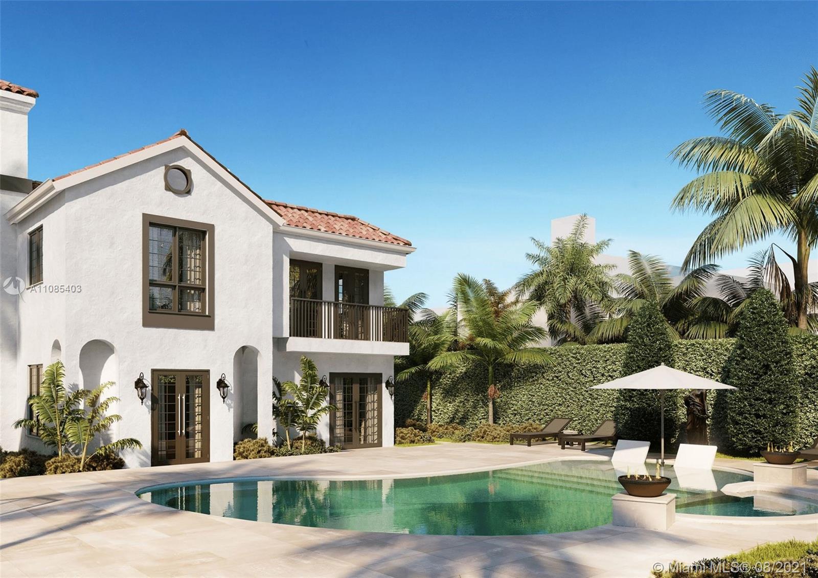 New, 5,000 sq.ft 5 Bed 6.5 Bath. Situated on the grandest lot in Mid-Beach, this 3-story home was originally built in 1925 by Carl Fisher, who selected its 12,600 pie-shaped parcel for its unique location; directly on the Miami Beach Golf Course and overlooking Par-3 Park. This contemporary Mediterranean consists of almost entirely new construction while preserving the prominent façade and character of the original home. Ideal layout of 4 beds up, with en-suite baths. Expansive master suite enjoys golf course & skyline views. A huge great room opens to pool area & cabana. Formal paneled study, chef’s kitchen, & separate guest suite tucked away complete the main level. Large semi-circular driveway + 1 car garage provide for excellent parking. Mid 2022 completion & chance to pick finishes.