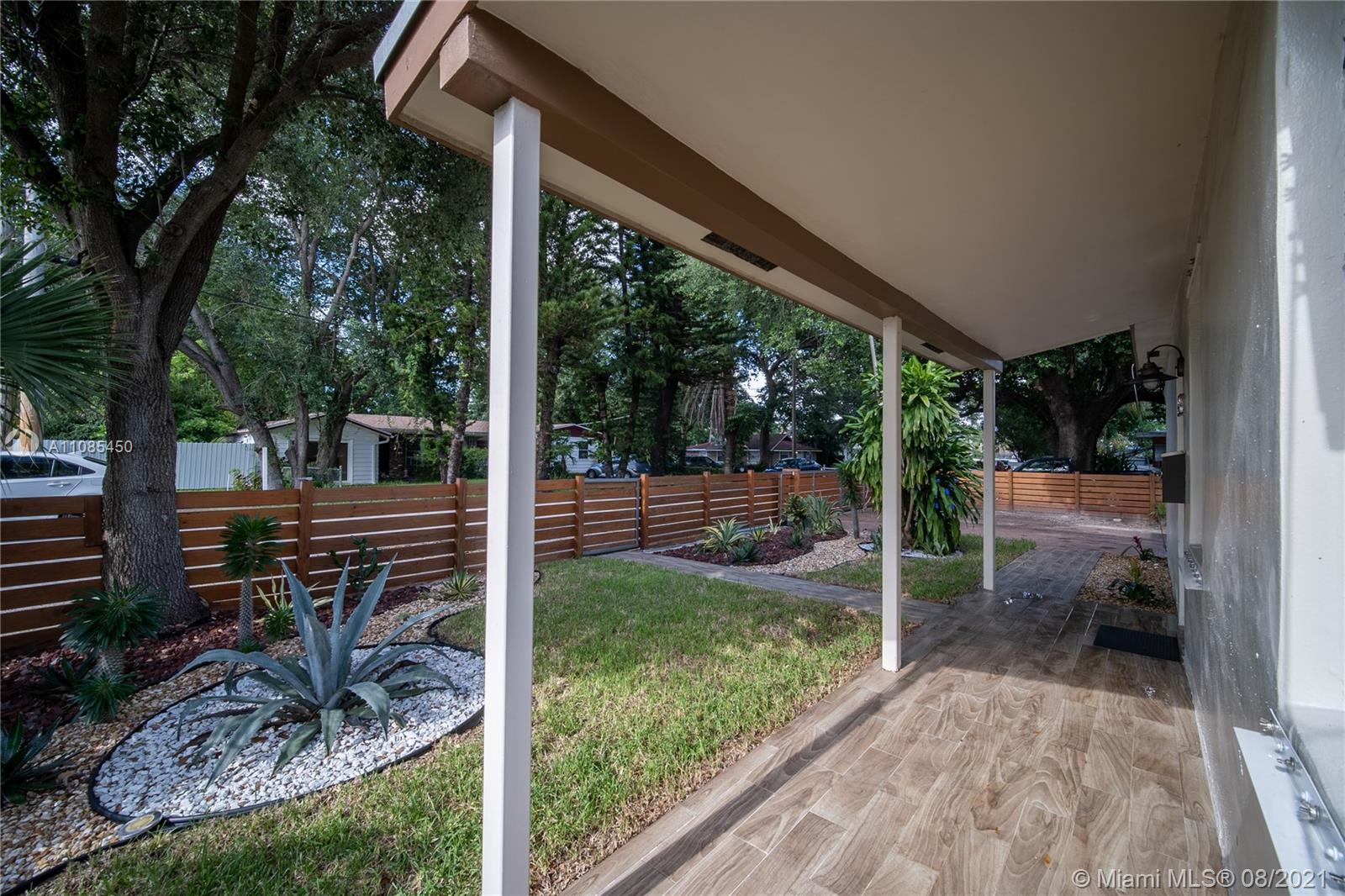 Turn-key ultra-modern 3 bedroom 2 Bath home with all new renovations on a gorgeous, oversized lot with mango and avocado trees! Chic, elegant white porcelain floors throughout, brand-new Samsung kitchen appliances, Nest thermostat, smart locks and smart security camera system setup covering the entire property. New ceiling track lighting and lighting fixtures. Back yard features a new patio for entertaining guests for a BBQ with an outdoor grill and outdoor dining set with a large new canopy for shade. The home also features new treated wooden fencing around the property in both the front with an electric automatic gate and fencing on the back side of the property in back yard. Home is super close to Publix, restaurants and more right around the corner! A true gem won't last long!