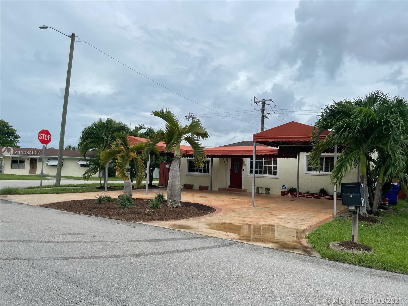 I suggest running not walking to see this home. Tons of potential and looking for the right buyer. Remodeled cozy (3) bedroom (2) bathroom home in up and coming Hollywood Neighborhood. Corner lot, large circular driveway and covered carport. Home is divided for that special buyer that absolutely needs a private space for their in-laws or family member. Kitchen and bathroom two years old. Roof and insulation (4) years old, main central AC is (4) years old and back AC unit is (1) year old. Storage shed in the yard is included with this sale. Home in conveniently located blocks from 441 and the turnpike. The home is also a short drive to Downtown Hollywood, Hard Rock Casino and Hollywood Beach. Call or text agent today for a showing.