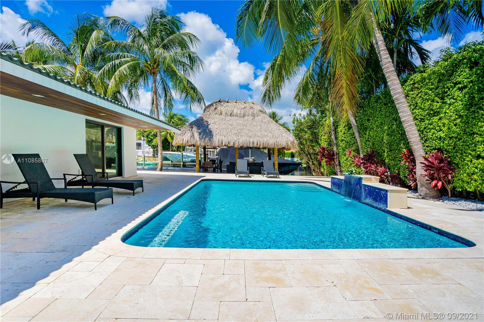 Introducing waterfront contemporary living located in the exclusive San Souci Estates. A truly modern home situated on a 9,375 square foot lot with 75 feet of deep waterfront direct ocean access, and over 2,700 square feet of luxurious living space. The home was completely renovated in 2019 , and intricately thought out to include everything you could ever want, such as all new updated electrical wiring, plumbing, AC, new hurricane SMART windows and doors, Italian designed kitchen by Cesar with new high end appliances, Italian internal doors and bathroom cabinets. The generous outdoor area provides you with the ultimate entertaining space, which includes a re-roofed Tiki hut, built-in BBQ and a 2019 15,000 lb boat lift. This is the ultimate boaters dream home.