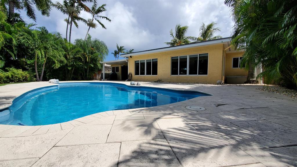Move in condition updated rancher! All windows and exterior doors throughout have been updated to Hurricane impact, gourmet kitchen w/ cherry cabinets, granite counters, marble backsplash, stainless appliances & bamboo wood floors. Updated baths w/ marble floors, all new vanities & fixtures. The spacious kitchen, living area, dining & open floorplan overlooking the custom pool and a very private gorgeous landscape backyard and cover patio. Great value and location, a Old Florida community house on a quiet street east of US-1 in a waterfront neighborhood. This beautiful home is only 10 minutes to the beach & Galleria Mall and variety of top restaurant, trader Joe's and great shops are just 5-minute waking distances away.