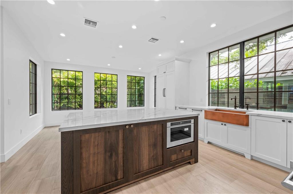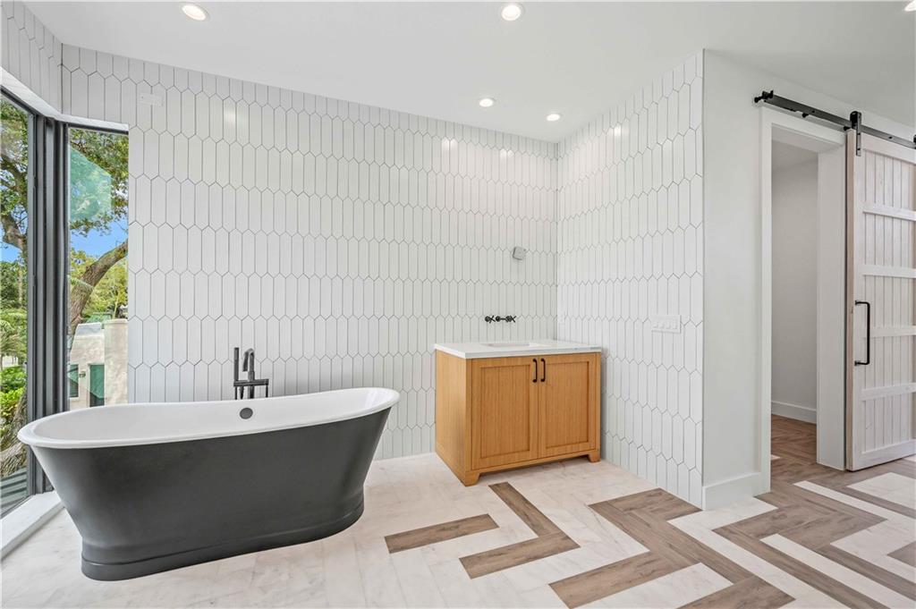 DESIGN MATTERS - Contemporary 5BR/5.5BA Farm House. A unique blend of modern and classic elements with finishes that include custom mill and tilework, hardwoods, quartz and marbles. Walls of windows and doors enhance the volume/vaulted ceilings throughout. The floor plan flows seamlessly from Great room to kitchen to the covered terrace. A 1st floor bedroom suite is ideal for guests or den. The primary suite boasts cathedral ceilings enhanced by a dramatic floor to ceiling arched window. There are two spacious walk-in closets and a bath that rivals any spa. three additional bedroom suites plus a laundry complete the second floor. The well landscaped, fenced yard has a pool with sun ledge. [Information is from 3rd party sources including BCPA and is believed accurate but not warranted].