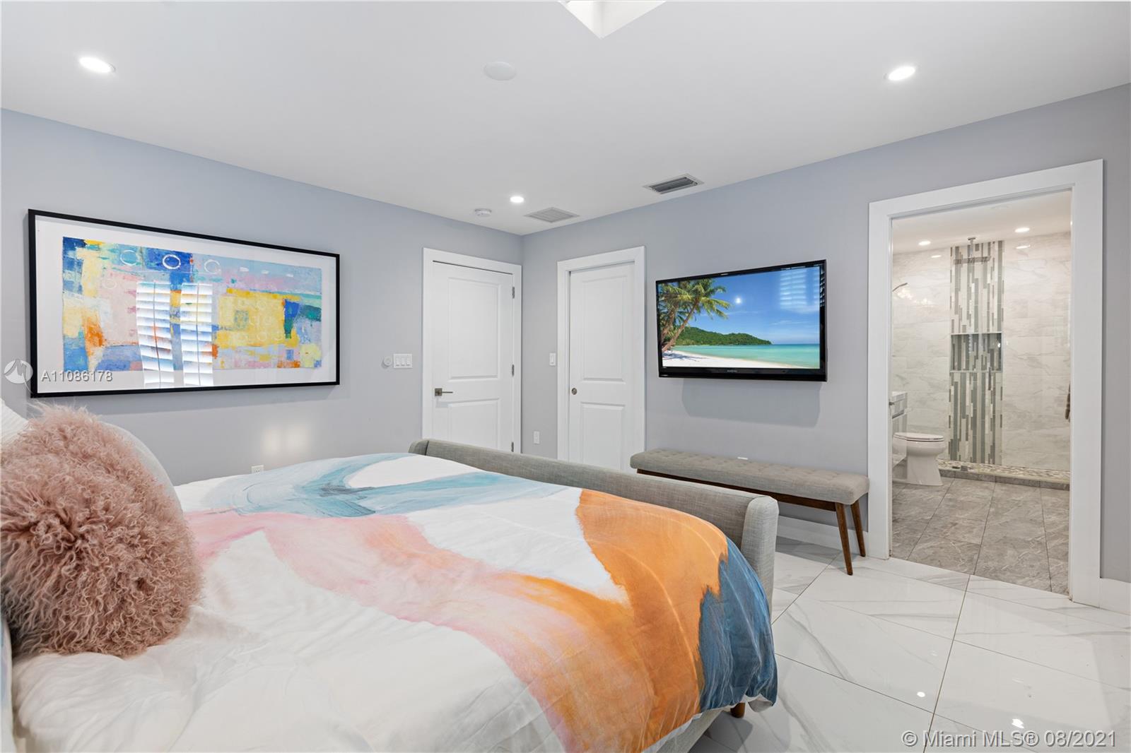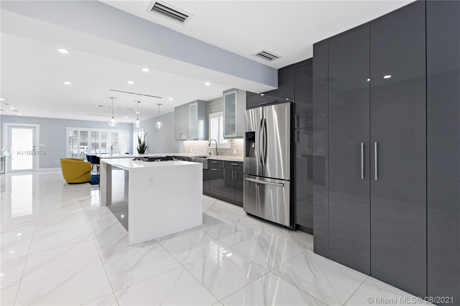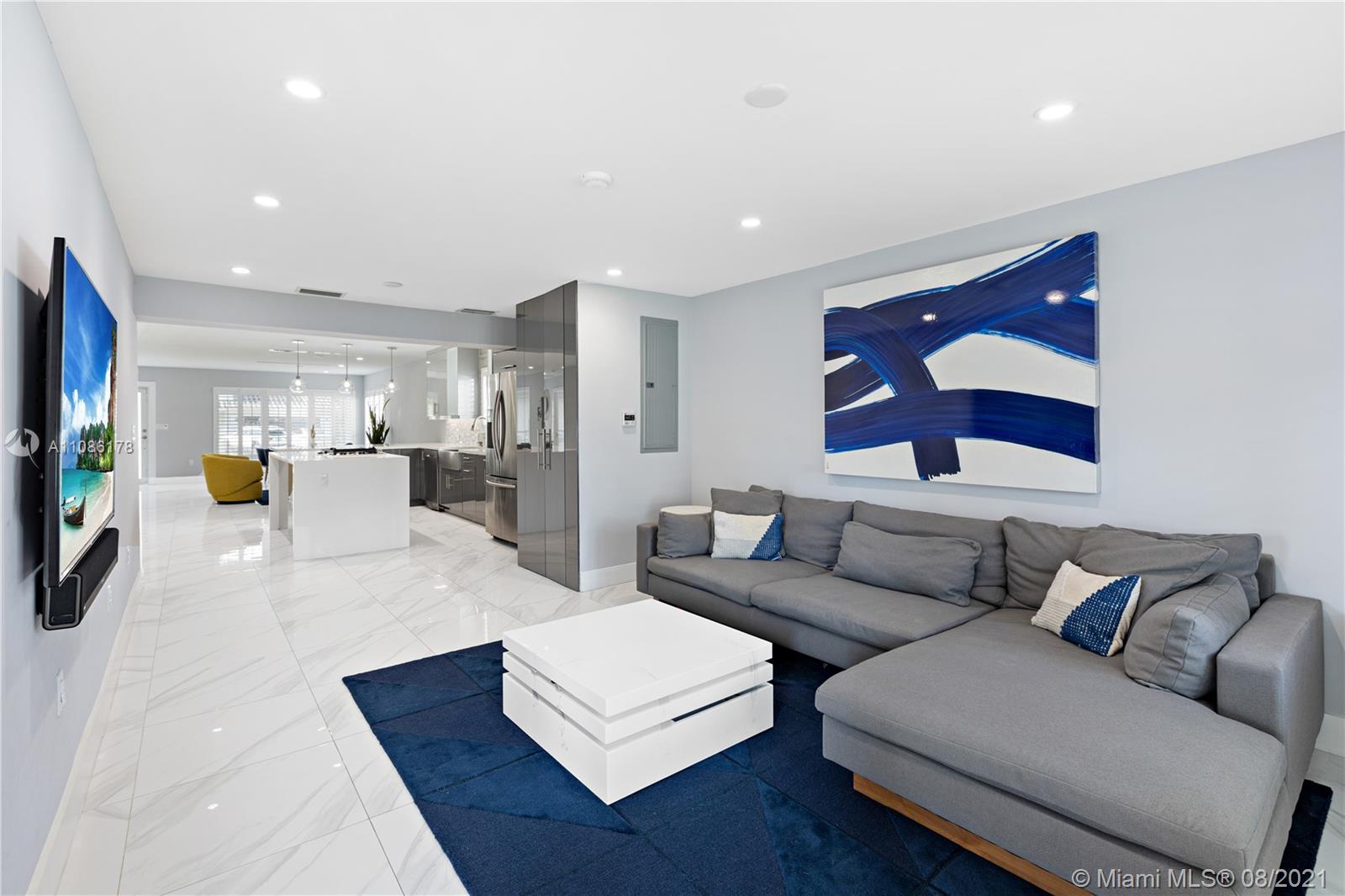 Live in the prestigious Hollywood Lakes neighborhood minutes from beach & downtown. Fully updated, turnkey home was renovated by current owners in 2017. Oversized porcelain tiles throughout, the home features an ideal open concept, spacious eat-in kitchen w/ new appliances & cabinetry, light & bright large living areas & oversized bedrooms. The fully permitted renovation spared NO expense. All NEW drywall, ductwork, Carrier AC unit, Nest thermostat, electrical panel & service, built-out custom closets, plumbing, oversized impact glass windows & doors, window treatments, Rheem natural gas tankless water heater, LG dishwasher, oven, natural gas cooktop stove, washer & natural gas dryer, Rainbird irrigation system, landscaping, tongue & groove front porch, back patio, + more! Room for a pool!