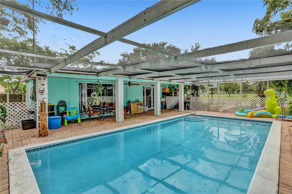 Step into this wonderful "Old Florida" home! So much pride of ownership with so many updated features! Newly updated kitchen boasting stylish butcher block countertops with a beautiful granite-top kitchen island! Original hardwood floors in 2 of the bedrooms, with tile throughout the rest of the home. The converted 4th bedroom conveniently has it's own private entrance. Enjoy your private screened-in pool and patio among a spacious corner lot with NO IMMEDIATE NEIGHBORS! A/C was replaced in April of 2021, with all new duct work. Pitch roof replaced in 2017, Flat roof replaced in 2020.