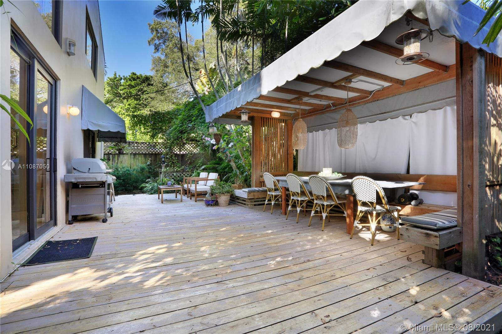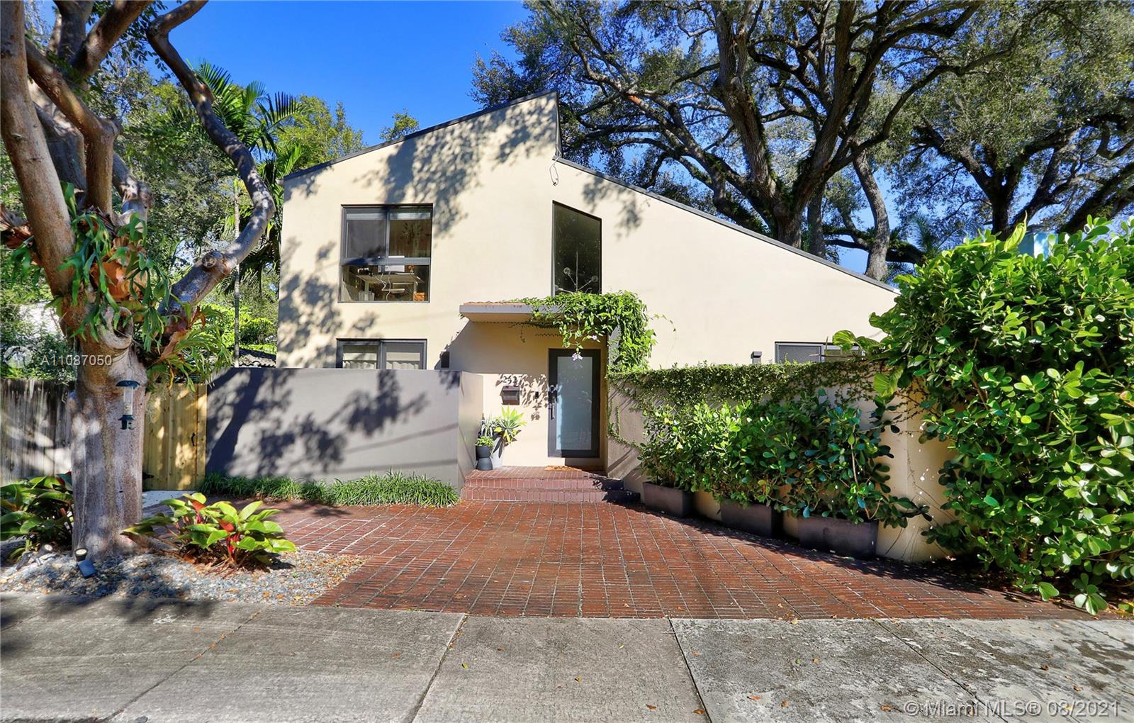 Fully updated contemporary Coconut Grove 3/2.5 bath home on quite ‘no through traffic’ Street, PLUS A BONUS LOFT SPACE! This North Grove home is built around a 100+year old Oak tree & features volume ceilings, gorgeous wood floors in bedrooms and porcelain tiled floors in living area, w/high impact windows & doors throughout! Bedroom with fully remodeled bathroom located on the 1st floor. Upstairs; 2 bedrooms w/remodeled Jack & Jill bathroom. Loft currently being used as a 4th bedroom, but is ideal as a kids playroom or office. Separate laundry room off kitchen w/storage space. There are 3 patio spaces which include a Jacuzzi hot tub and pergola for entertaining. Flood zone ‘X’. Come see this pristine turn key home!