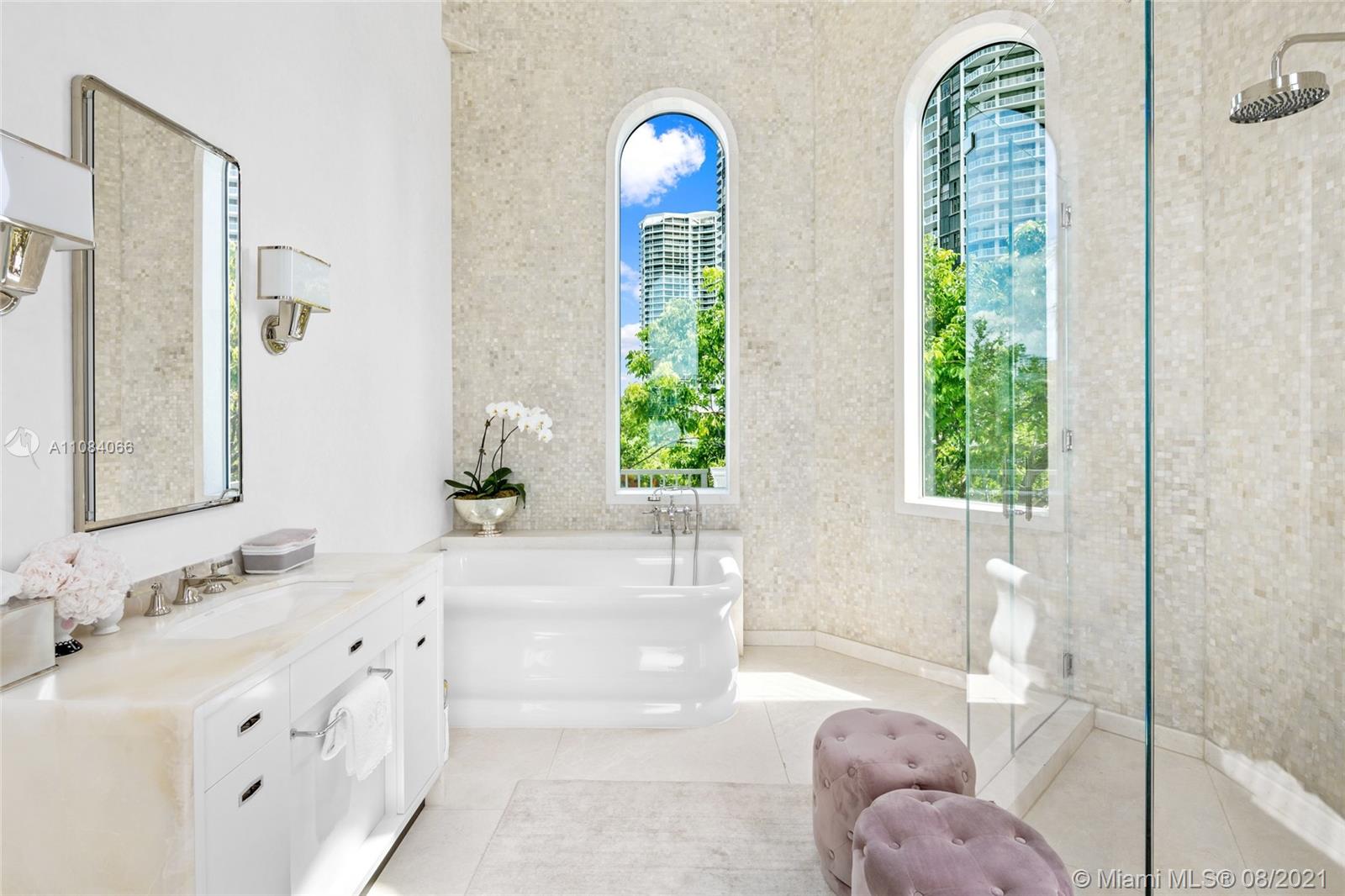 Take a breath of fresh air as you walk into your new home nestled in the prestigious Island Estates. This modern day smart house provides a heavenly feeling the moment you step through the front doors and crisp intracoastal views take over. The home boasts 5 bedrooms, 5 bathrooms, 1 powder room, along with an additional converted room. Designed by the one and only Ramon Pacheco, the home features Ornare kitchens and closets, Waterworks tub, Ann Sachs and Water Works vanities, 2 Toto toilets, Samuel Health fixtures throughout, custom bbq area and more.