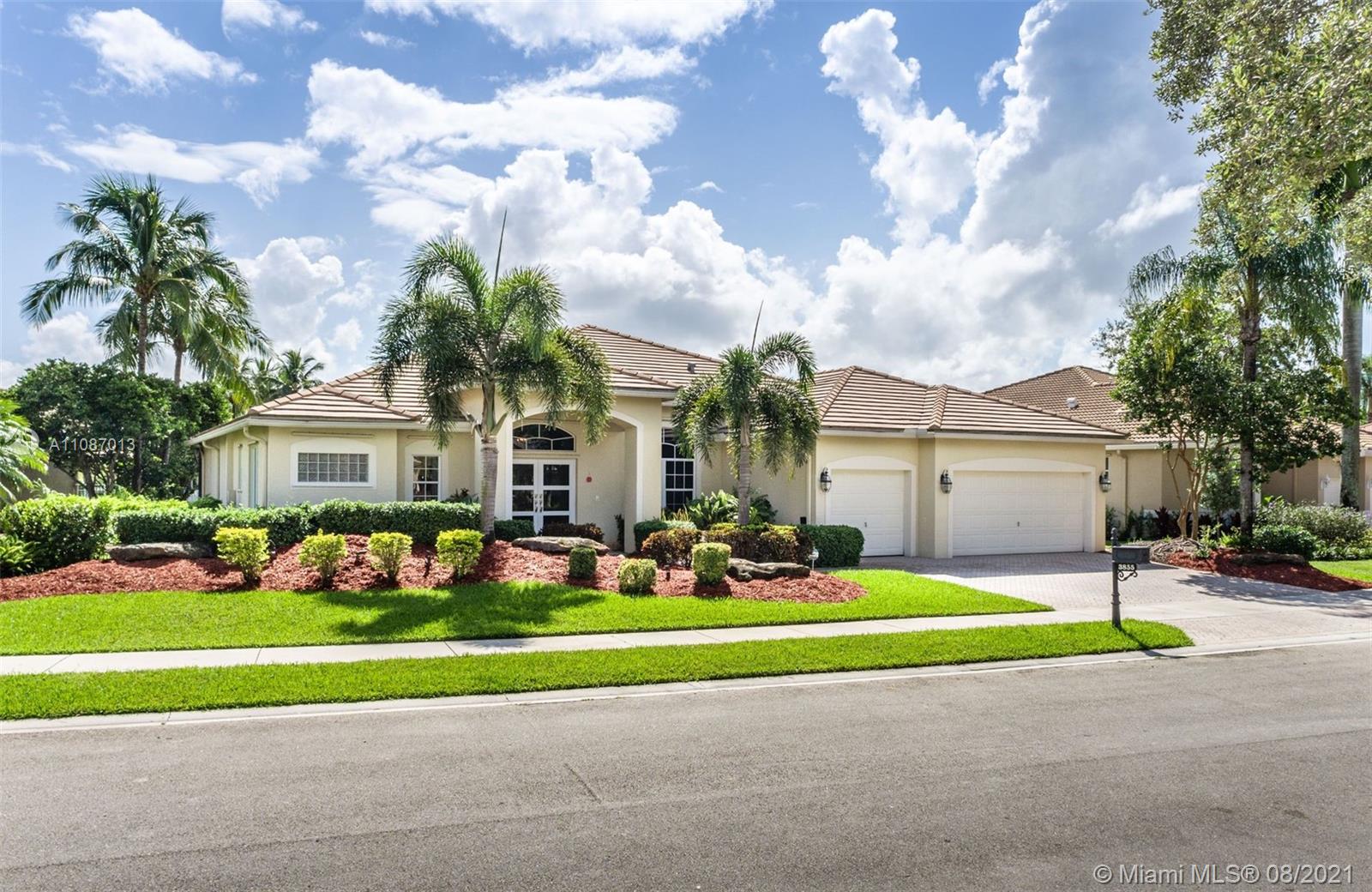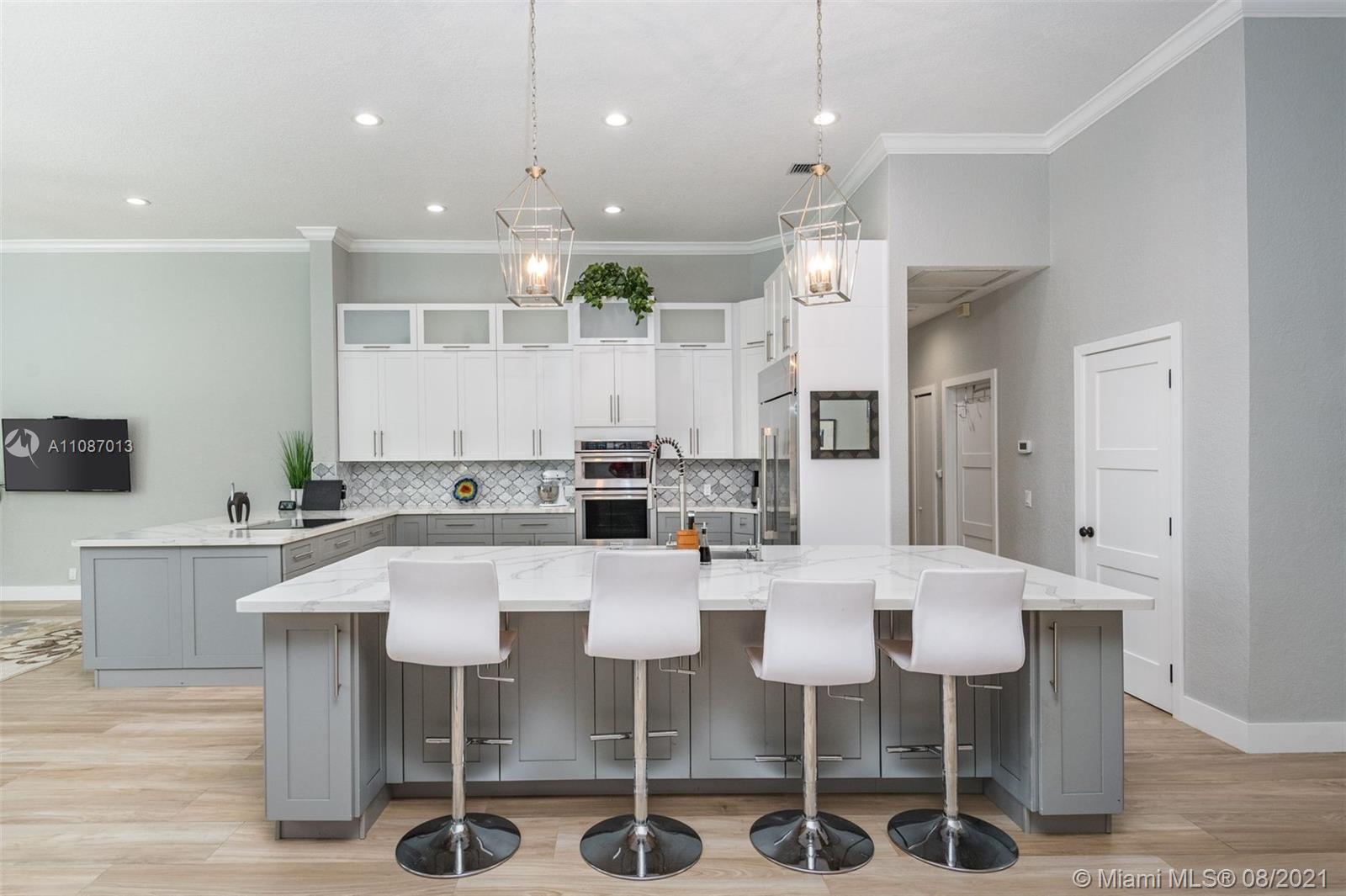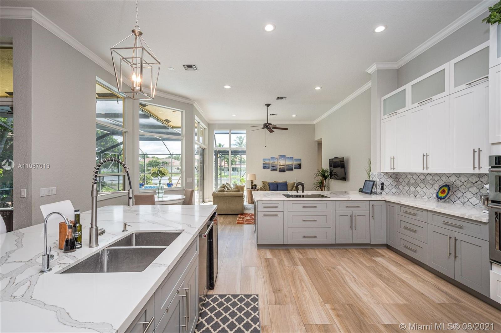 Take in the expansive water views as you enter this completely renovated 5 bed/ 3 bath/ office home in The Ridges. Situated on an 11,640sf private cul de sac lot, this home has it all. Open triple-split floor plan w/ 12' ceilings, providing great entertaining space. Renovated in 2019 with all top finishes, these homeowners spared no expense. Modern kitchen with quartz countertops, stainless steel appliances and large walk-in pantry. Custom light fixtures and LED lighting. New AC. Spacious backyard with renovated screened in heated pool and travertine deck. 3-car garage. A+ schools.