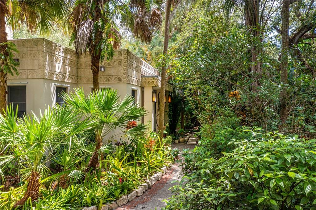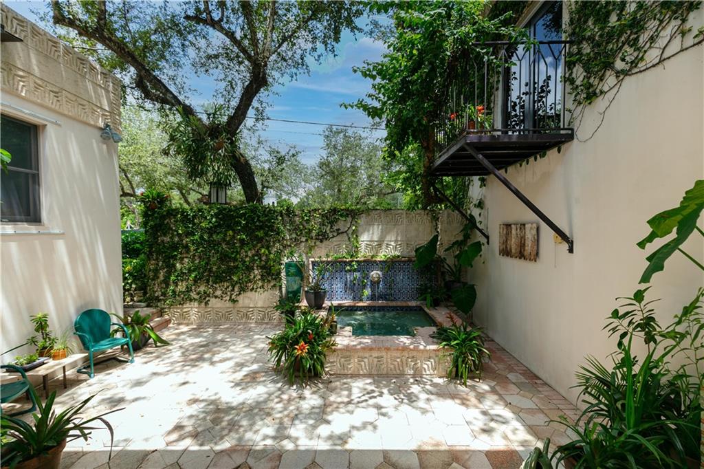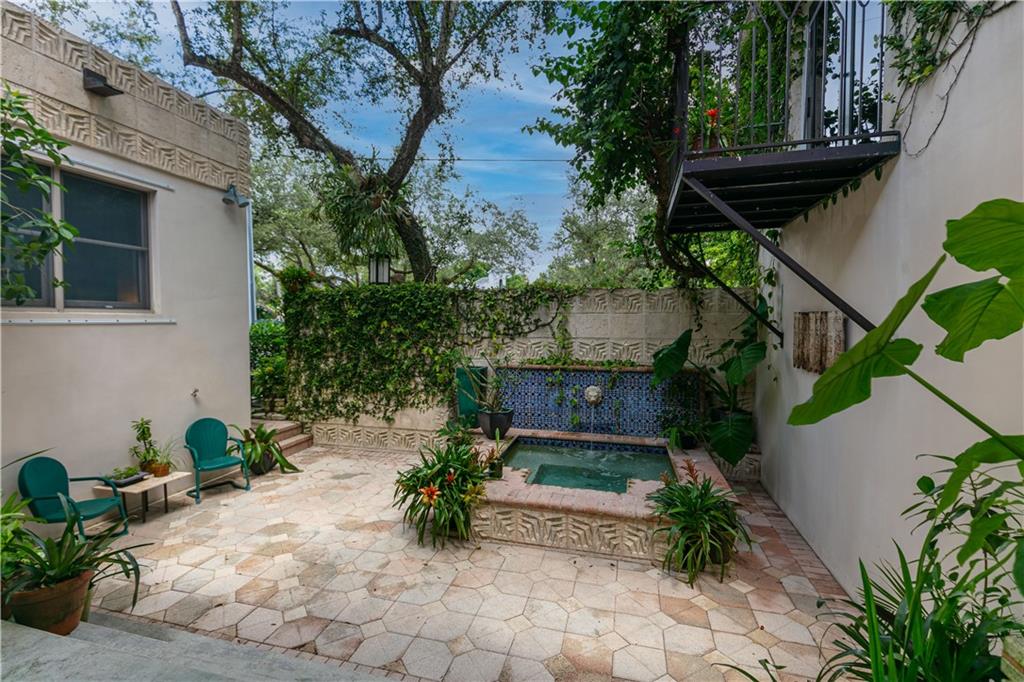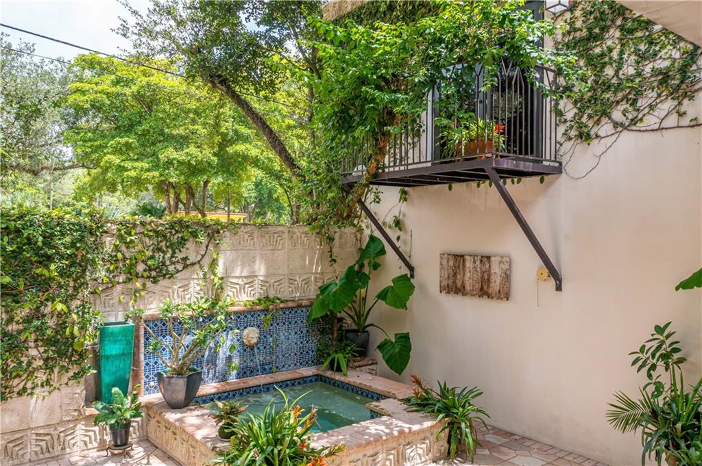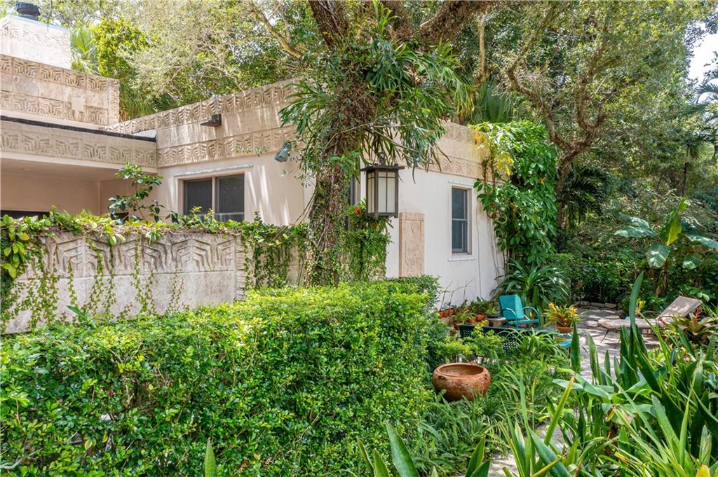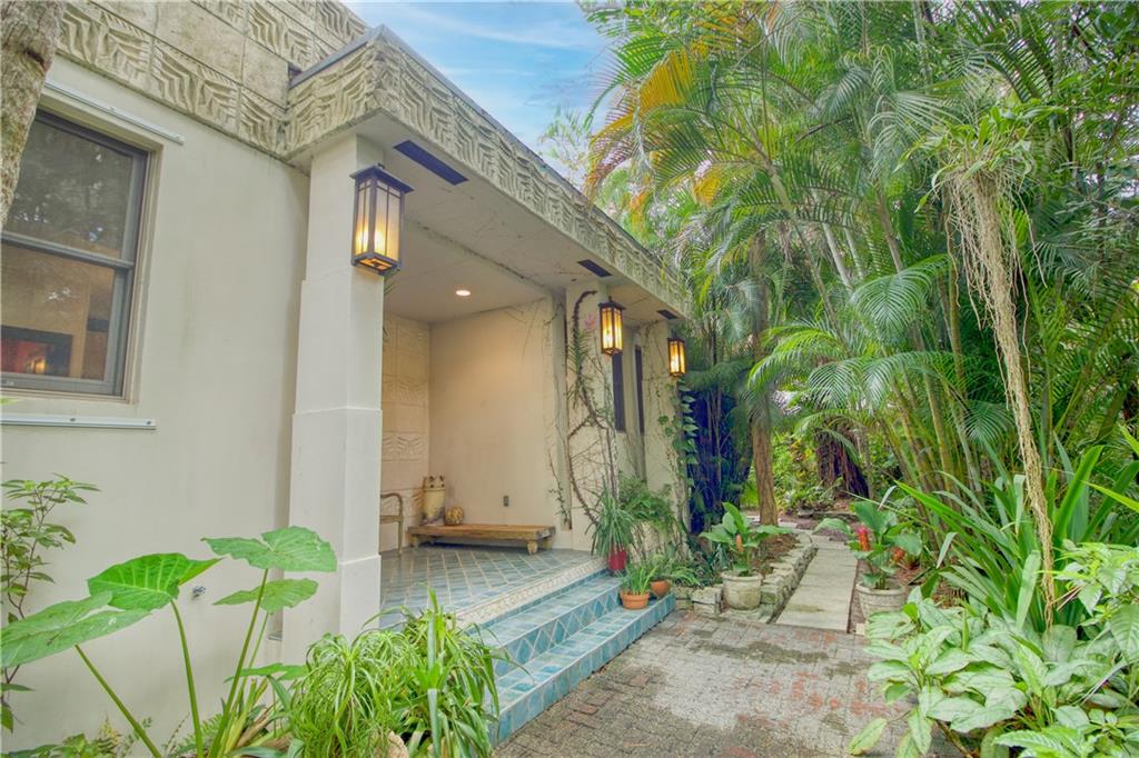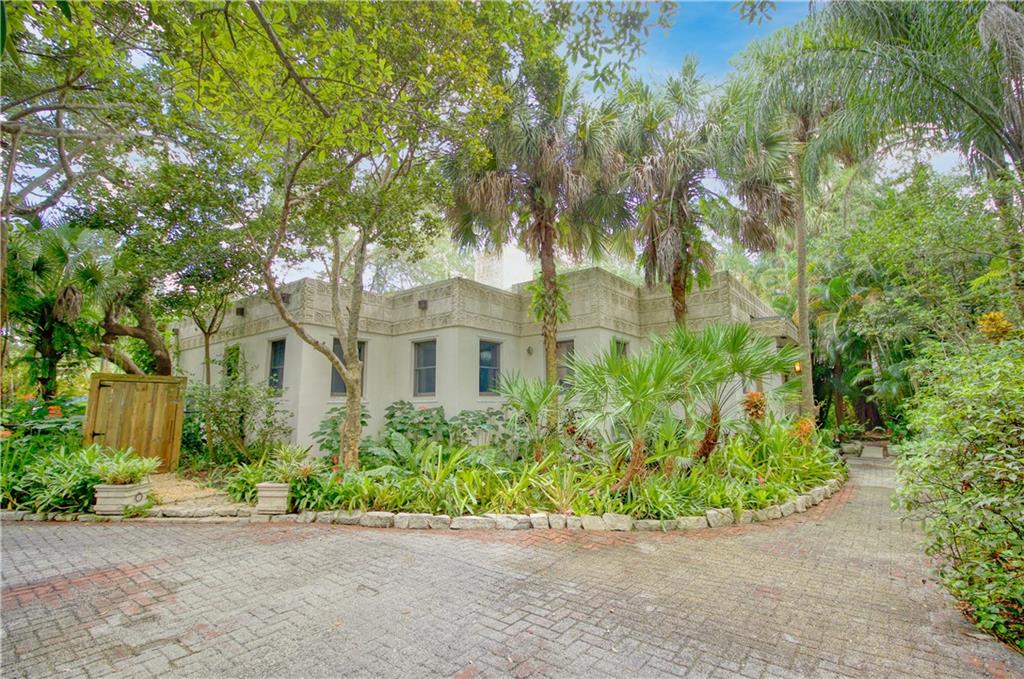 This beautiful home is located in the desirable Riverland Woods, a tree covered area surrounded by beautiful live oak trees, native palms and all nature associated with the wildlife. This residence is a one-of-a-kind custom home based on the Frank Lloyd Wright Biltmore Arizona bungalows built in 1929. It has a brand new kitchen with direct access to the exterior courtyard, quartz counter tops, large dining island, new stove, dishwasher and a commercial roof-top kitchen exhaust. The roof has 3 layers of elastomeric coating installed in 2020 for a cool protective roof. Newly painted interior, refinished floors in 2021 and High ceilings 9',10, 13' feet. The home also offers a wall enclosed courtyard with a concrete pool style jacuzzi. Centrally located near to downtown and all major highways