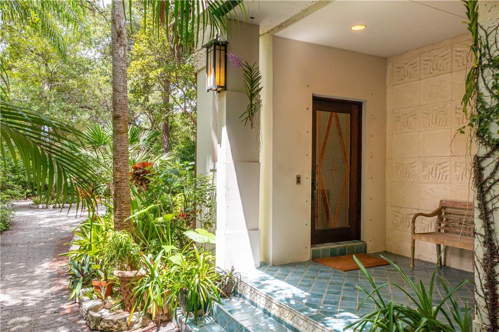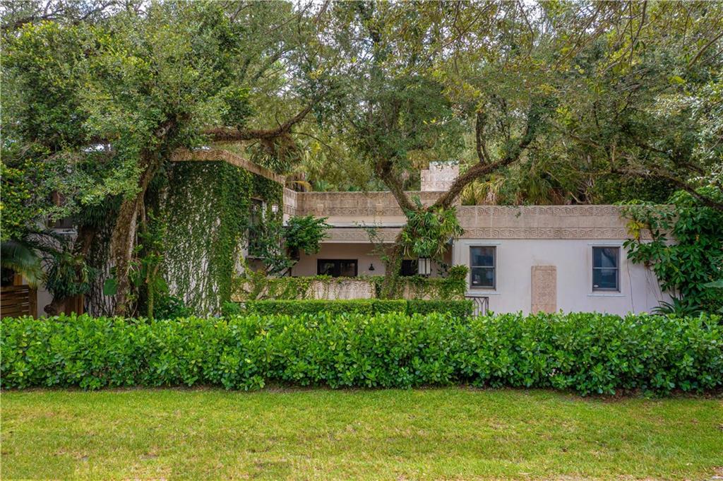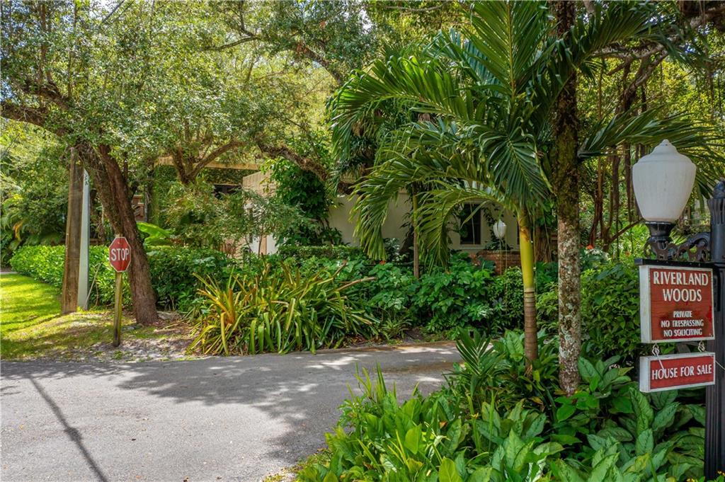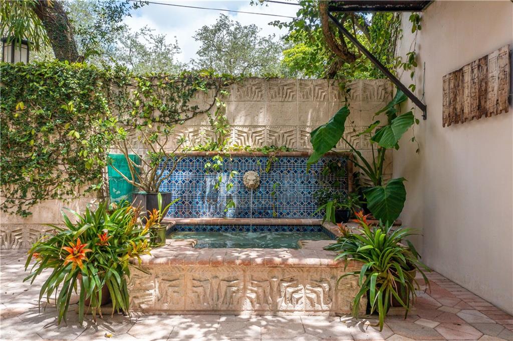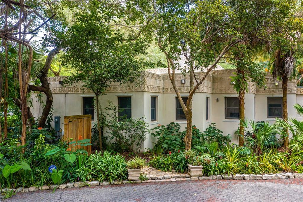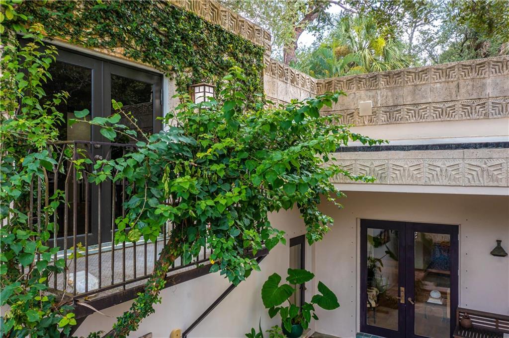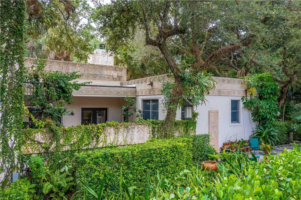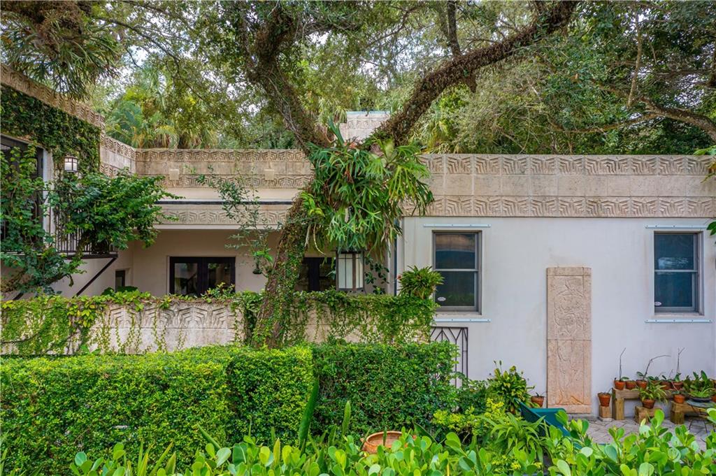 This beautiful home is located in the desirable Riverland Woods, a tree covered area surrounded by beautiful live oak trees, native palms and all nature associated with the wildlife. This residence is a one-of-a-kind custom home based on the Frank Lloyd Wright Biltmore Arizona bungalows built in 1929. It has a brand new kitchen with direct access to the exterior courtyard, quartz counter tops, large dining island, new stove, dishwasher and a commercial roof-top kitchen exhaust. The roof has 3 layers of elastomeric coating installed in 2020 for a cool protective roof. Newly painted interior, refinished floors in 2021 and High ceilings 9',10, 13' feet. The home also offers a wall enclosed courtyard with a concrete pool style jacuzzi. Centrally located near to downtown and all major highways