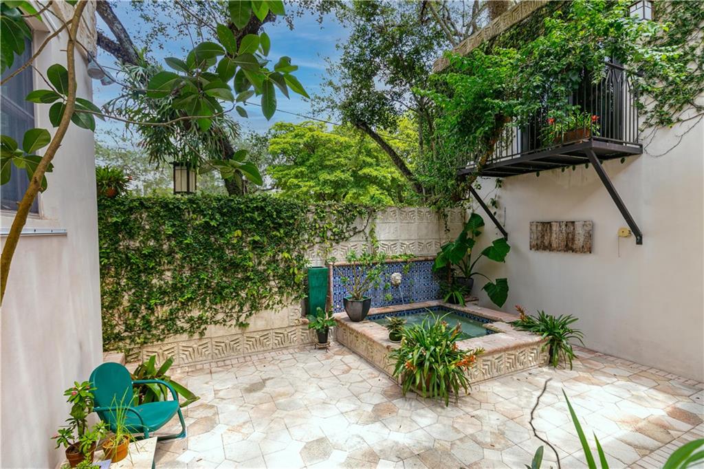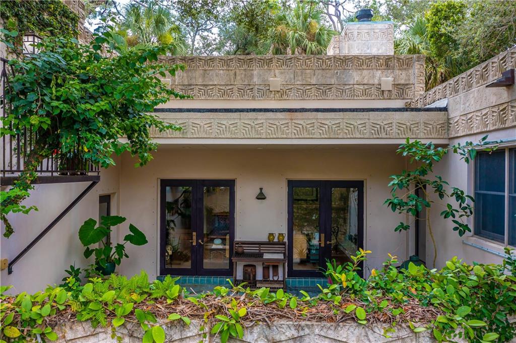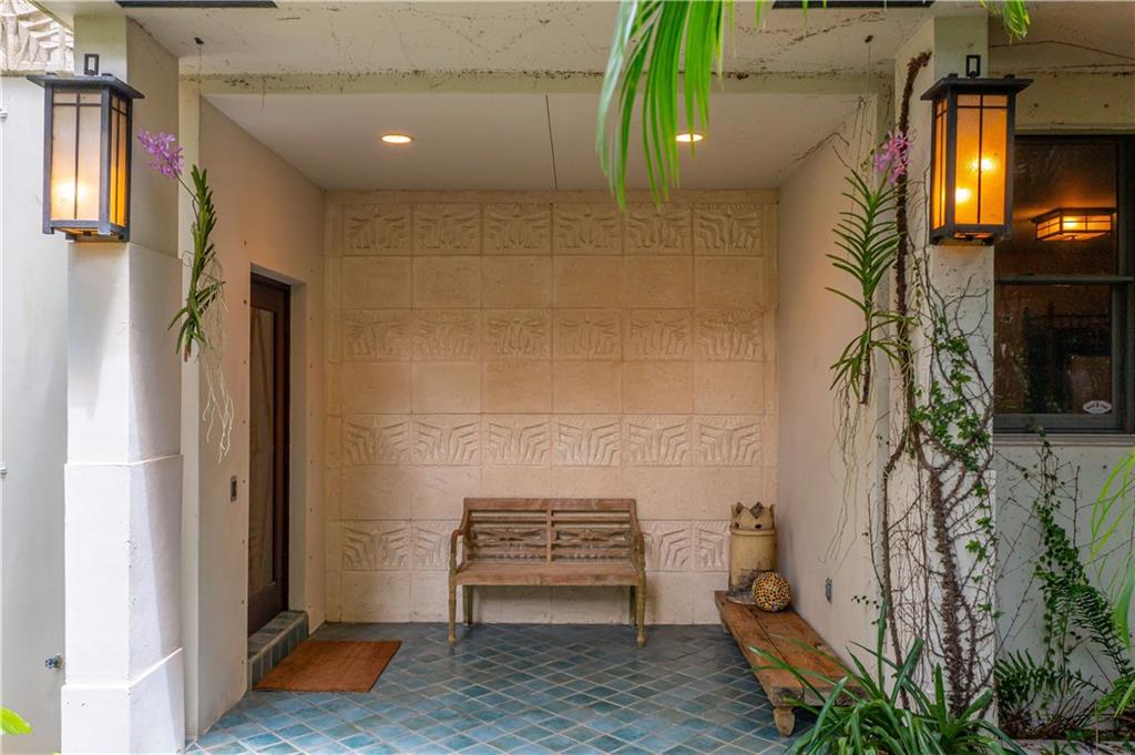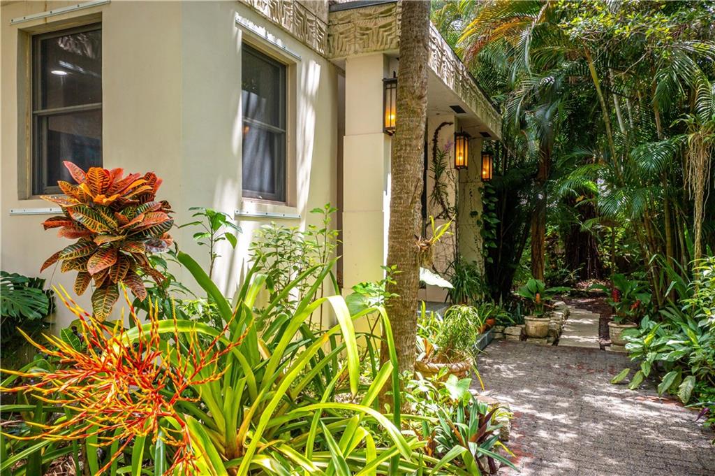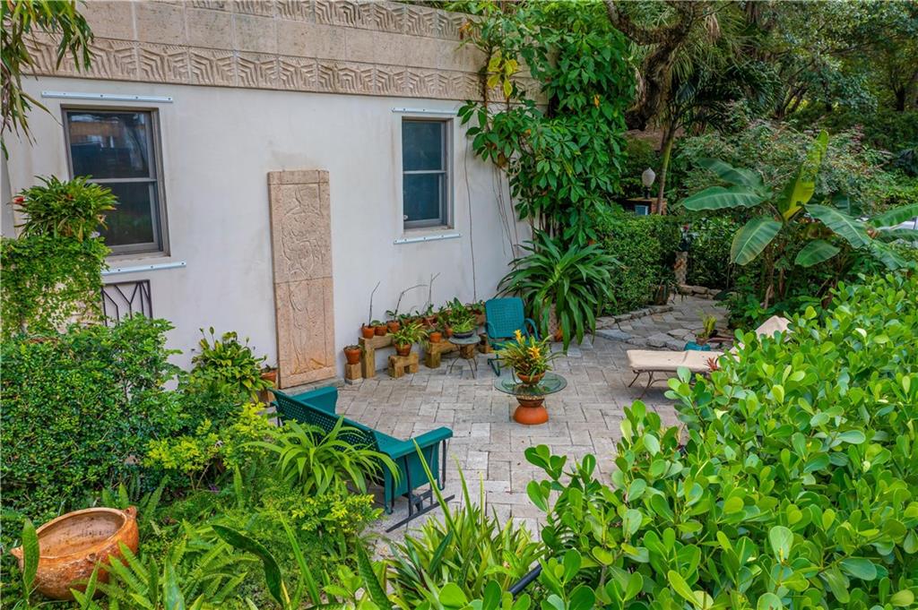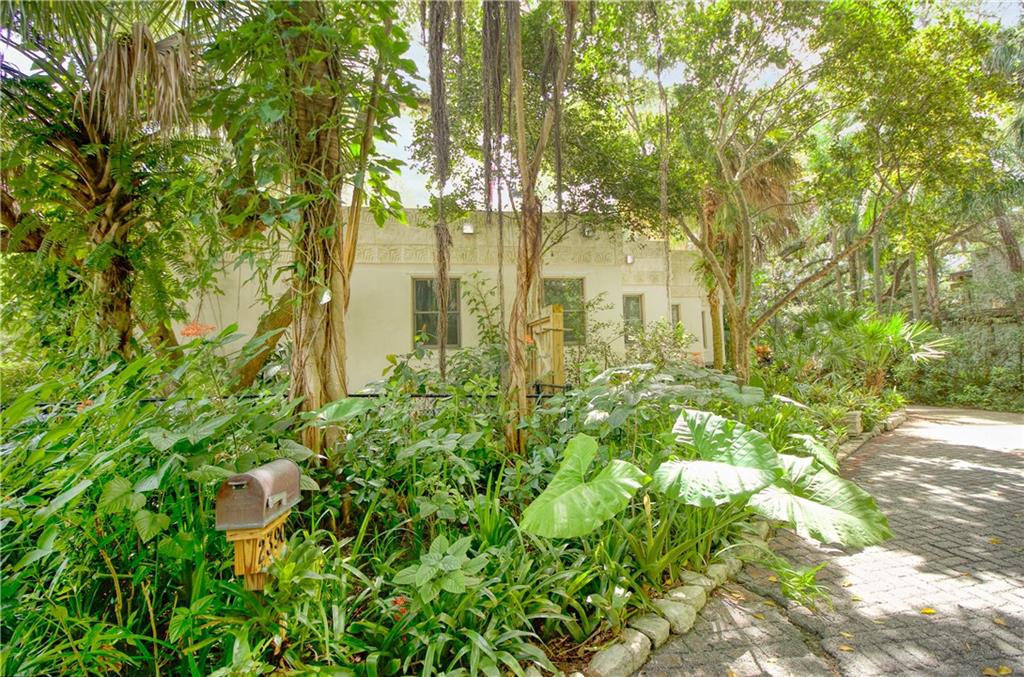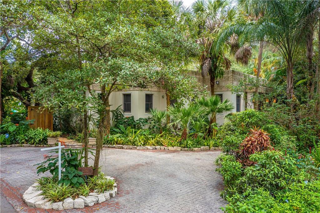 This beautiful home is located in the desirable Riverland Woods, a tree covered area surrounded by beautiful live oak trees, native palms and all nature associated with the wildlife. This residence is a one-of-a-kind custom home based on the Frank Lloyd Wright Biltmore Arizona bungalows built in 1929. It has a brand new kitchen with direct access to the exterior courtyard, quartz counter tops, large dining island, new stove, dishwasher and a commercial roof-top kitchen exhaust. The roof has 3 layers of elastomeric coating installed in 2020 for a cool protective roof. Newly painted interior, refinished floors in 2021 and High ceilings 9',10, 13' feet. The home also offers a wall enclosed courtyard with a concrete pool style jacuzzi. Centrally located near to downtown and all major highways