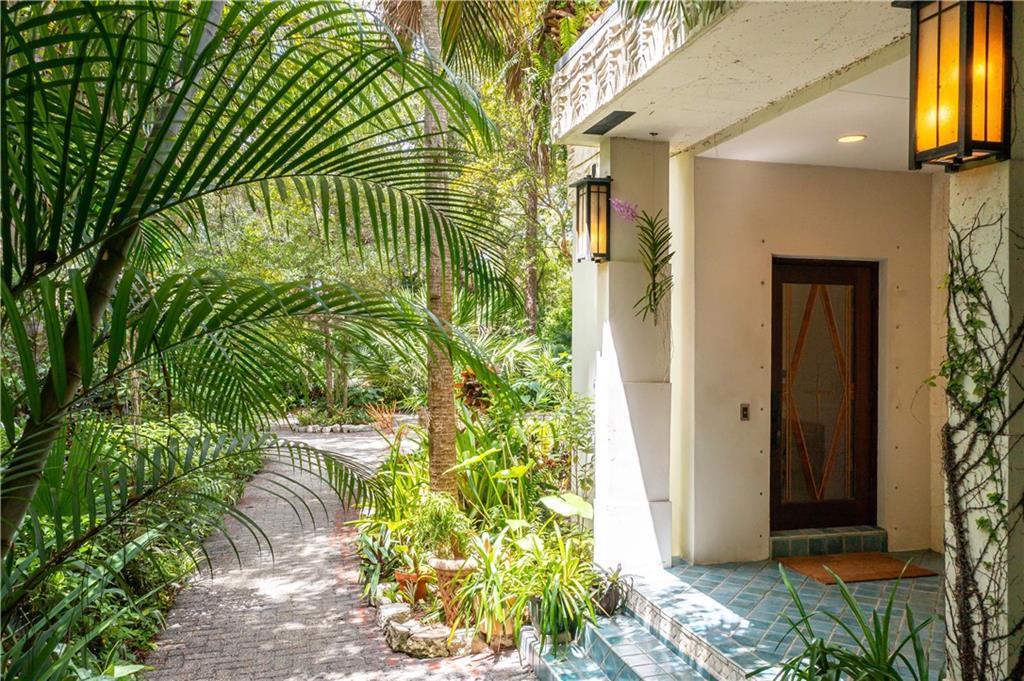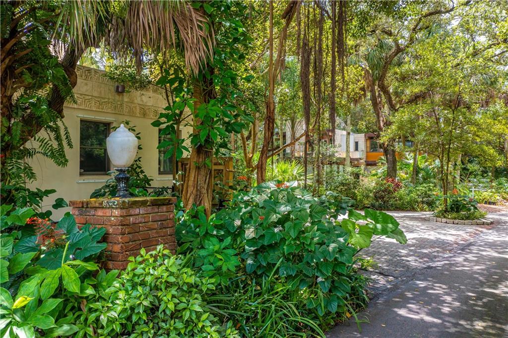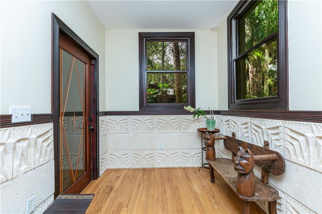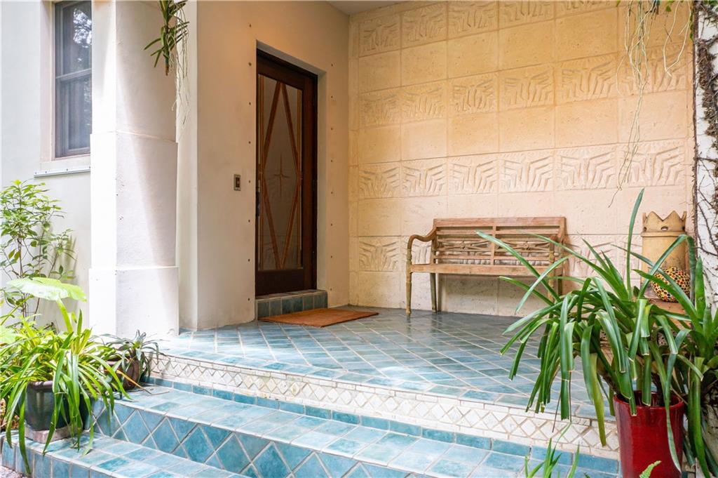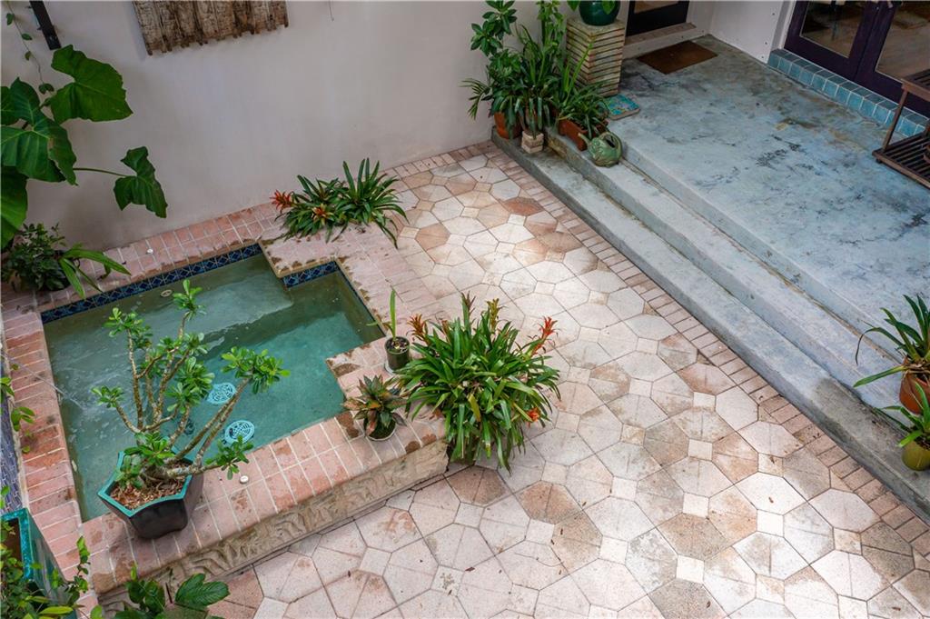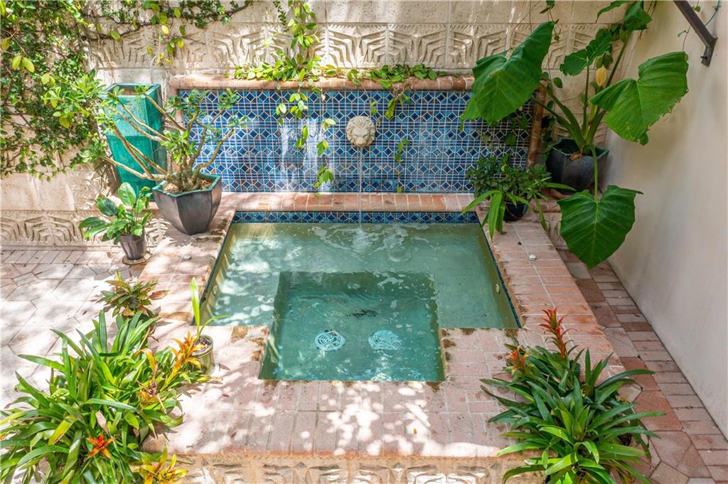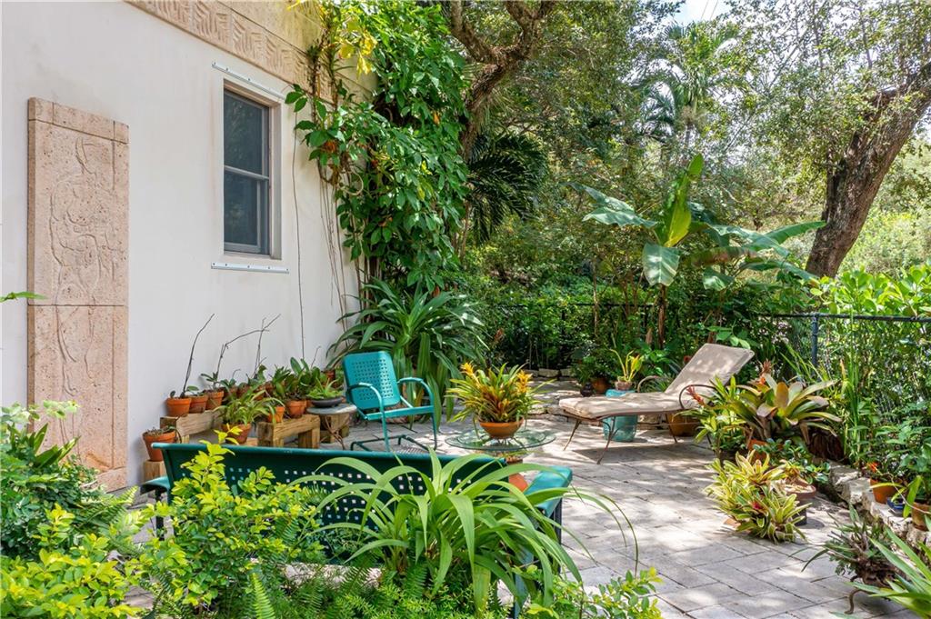 This beautiful home is located in the desirable Riverland Woods, a tree covered area surrounded by beautiful live oak trees, native palms and all nature associated with the wildlife. This residence is a one-of-a-kind custom home based on the Frank Lloyd Wright Biltmore Arizona bungalows built in 1929. It has a brand new kitchen with direct access to the exterior courtyard, quartz counter tops, large dining island, new stove, dishwasher and a commercial roof-top kitchen exhaust. The roof has 3 layers of elastomeric coating installed in 2020 for a cool protective roof. Newly painted interior, refinished floors in 2021 and High ceilings 9',10, 13' feet. The home also offers a wall enclosed courtyard with a concrete pool style jacuzzi. Centrally located near to downtown and all major highways