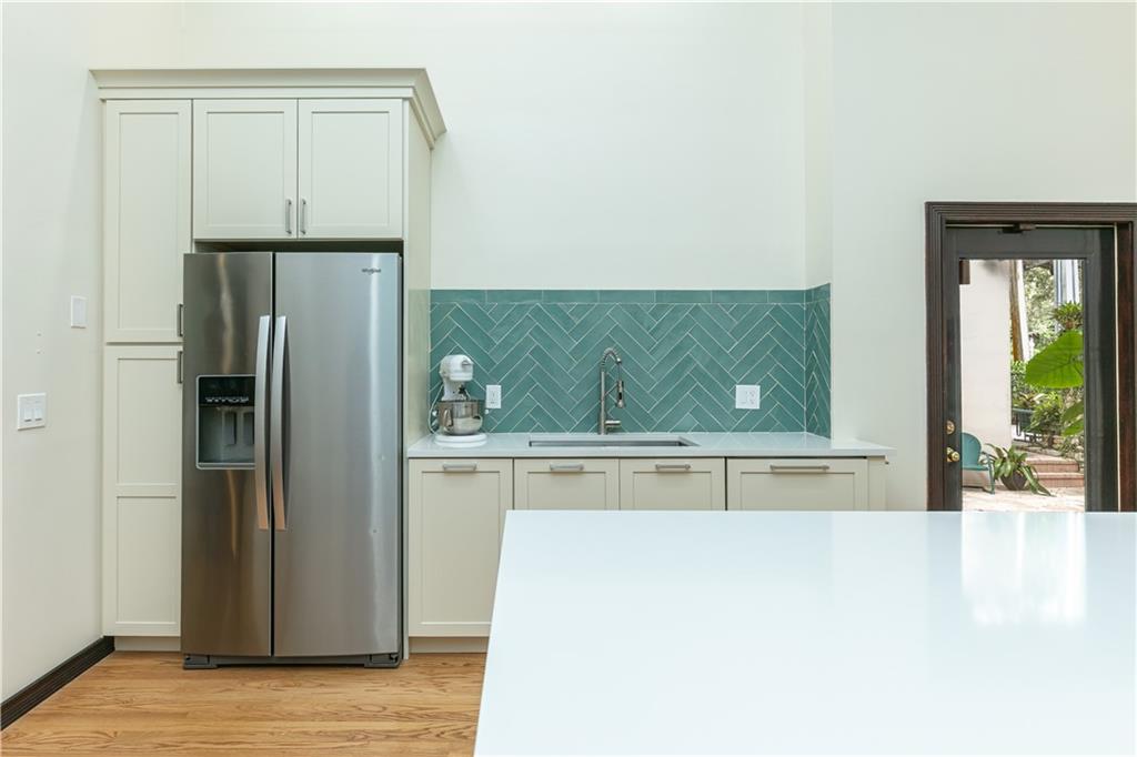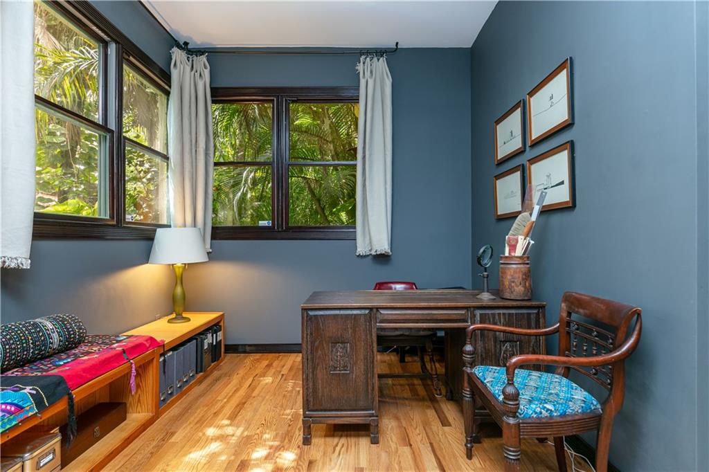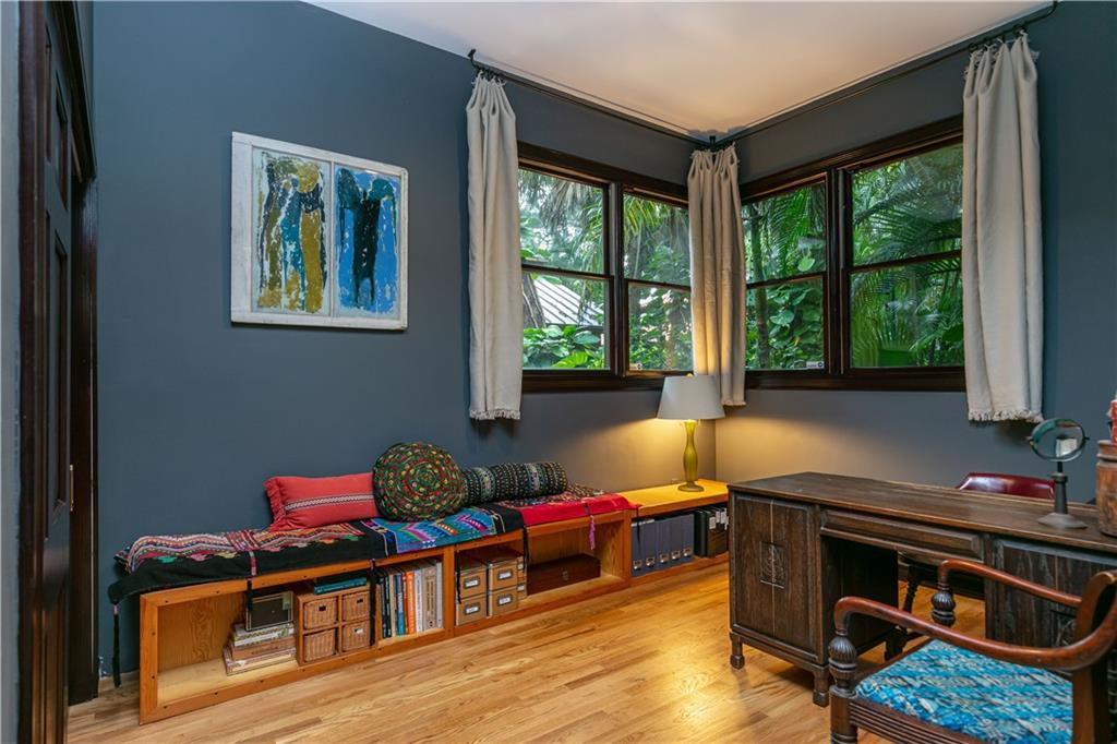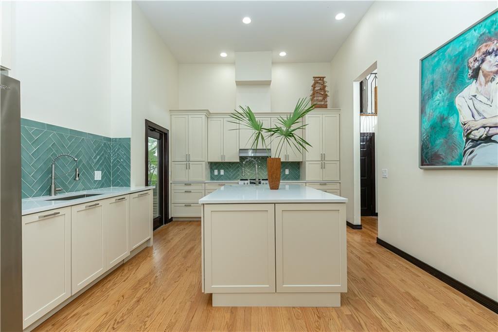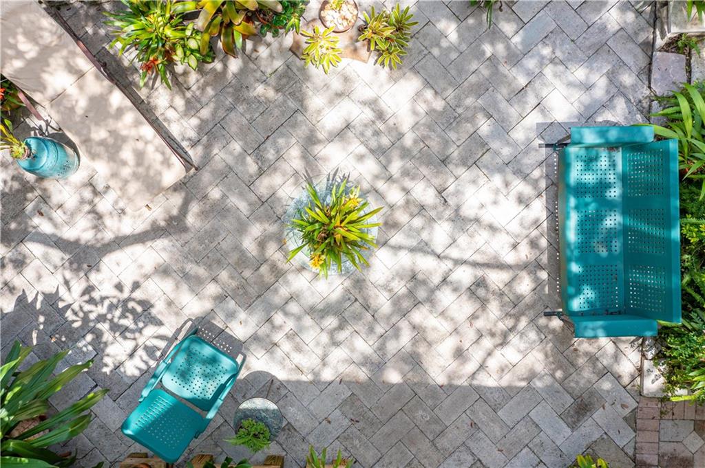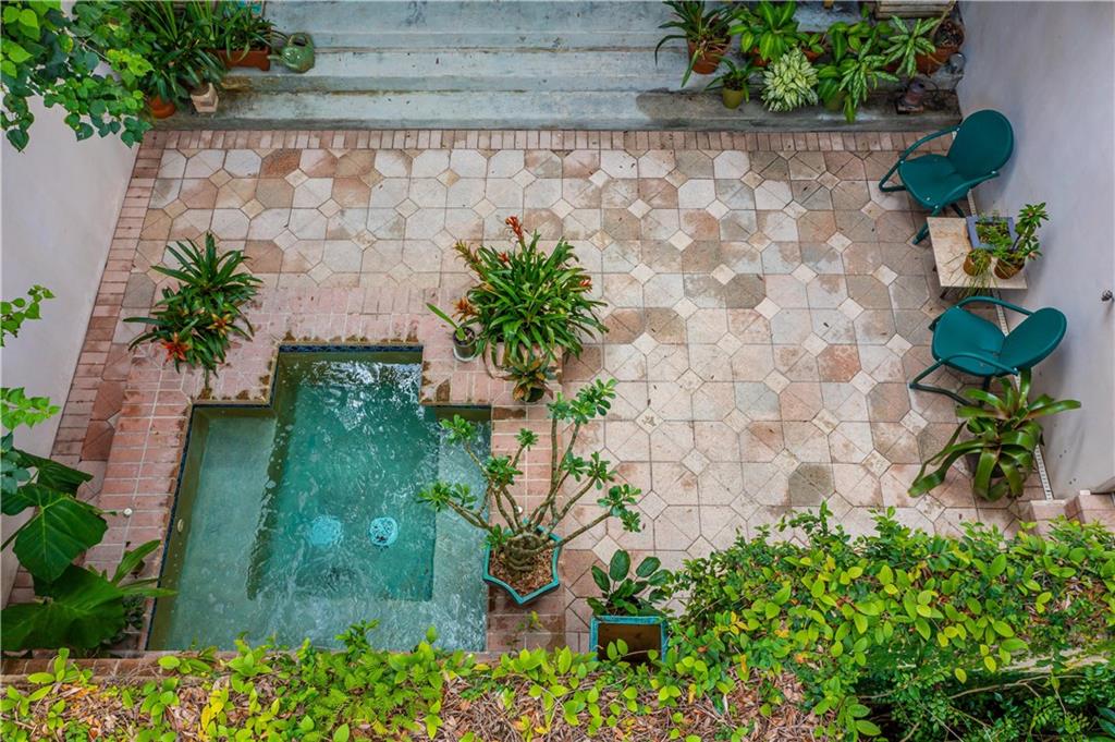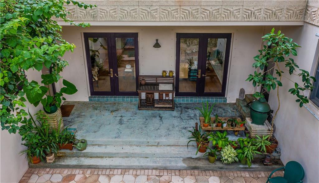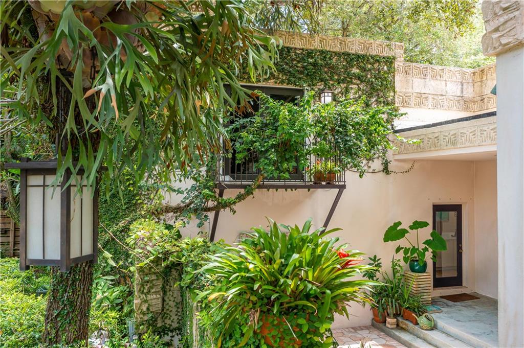 This beautiful home is located in the desirable Riverland Woods, a tree covered area surrounded by beautiful live oak trees, native palms and all nature associated with the wildlife. This residence is a one-of-a-kind custom home based on the Frank Lloyd Wright Biltmore Arizona bungalows built in 1929. It has a brand new kitchen with direct access to the exterior courtyard, quartz counter tops, large dining island, new stove, dishwasher and a commercial roof-top kitchen exhaust. The roof has 3 layers of elastomeric coating installed in 2020 for a cool protective roof. Newly painted interior, refinished floors in 2021 and High ceilings 9',10, 13' feet. The home also offers a wall enclosed courtyard with a concrete pool style jacuzzi. Centrally located near to downtown and all major highways