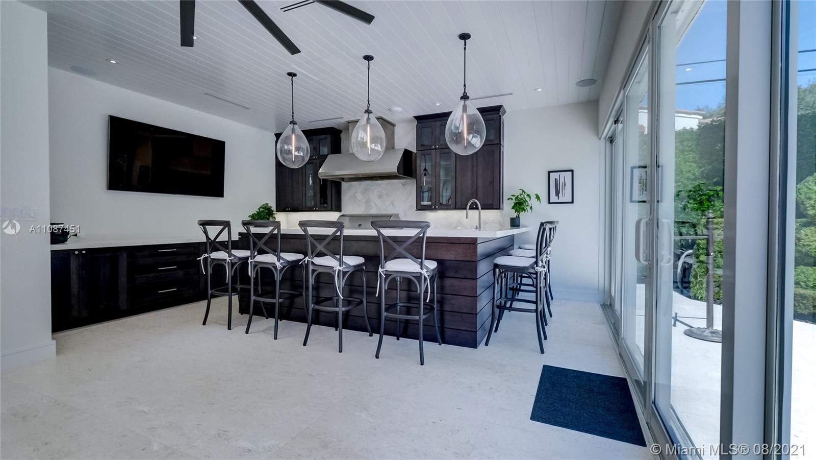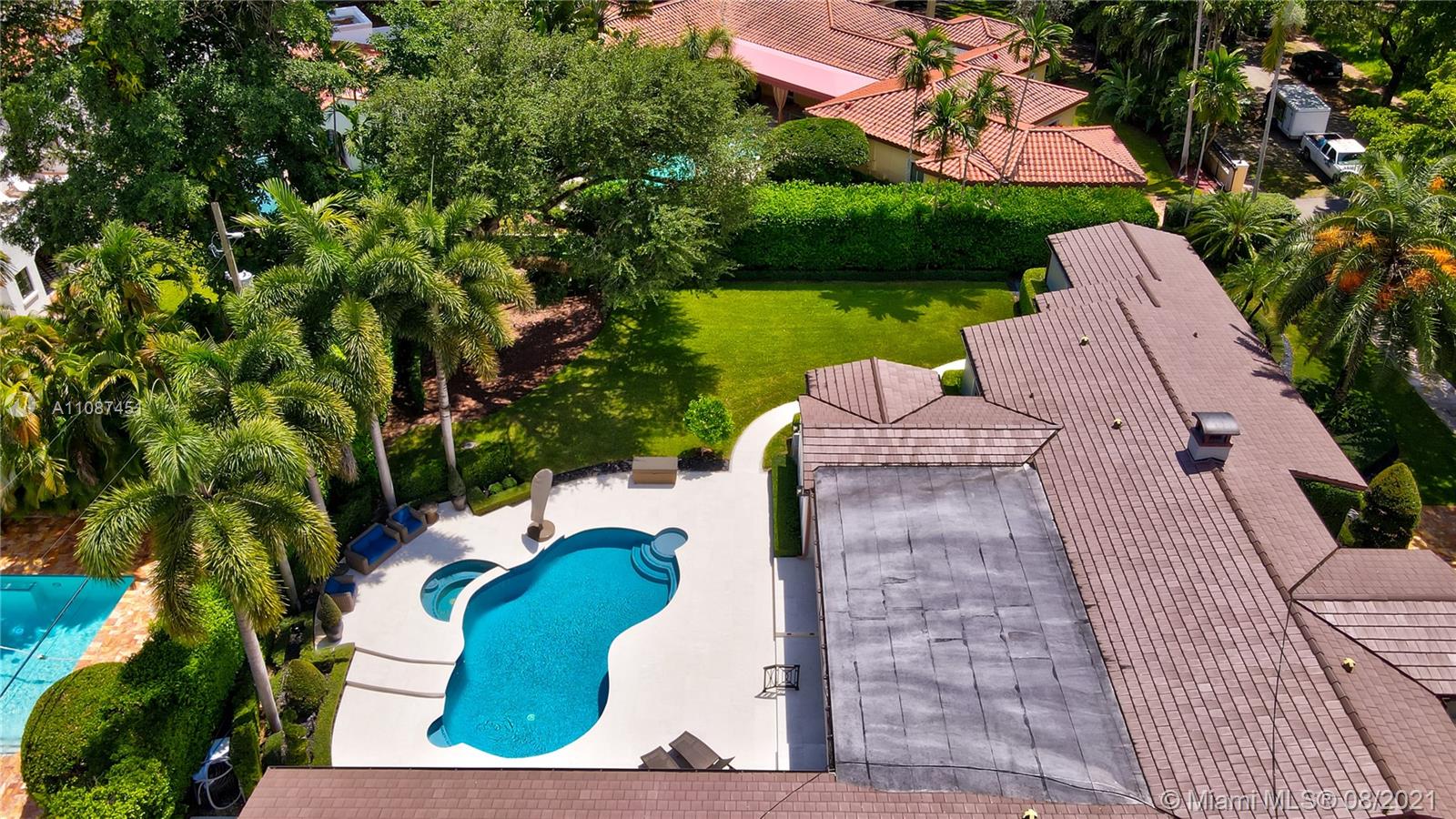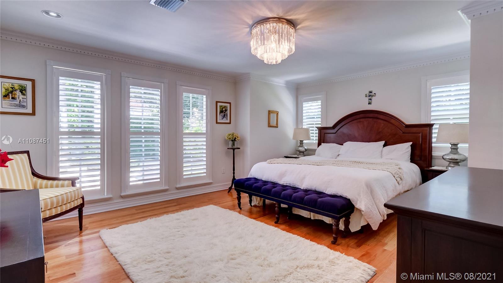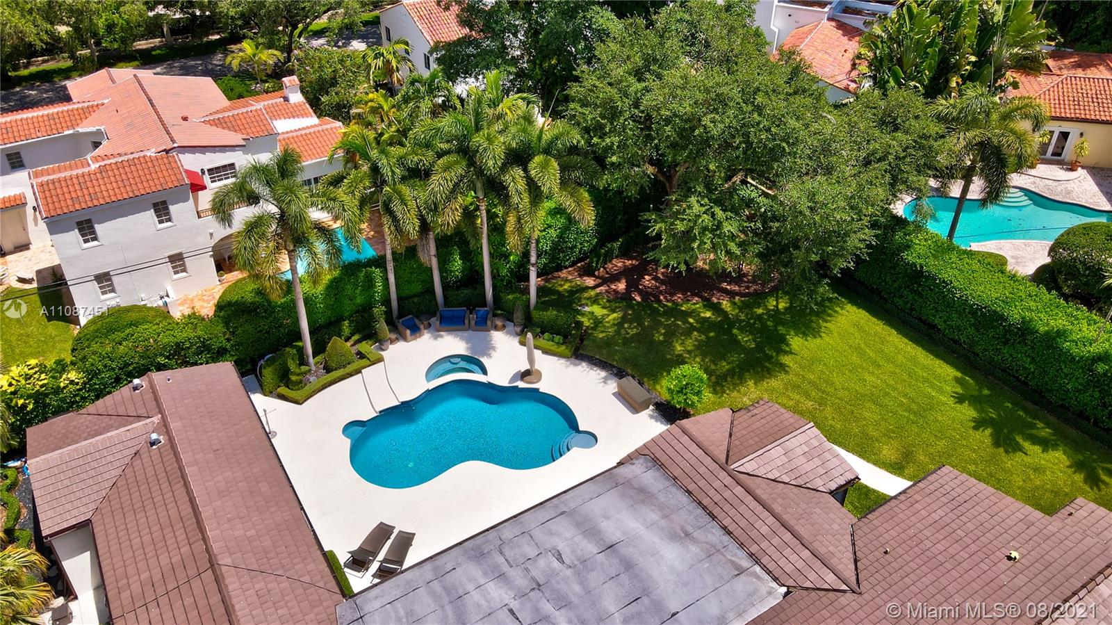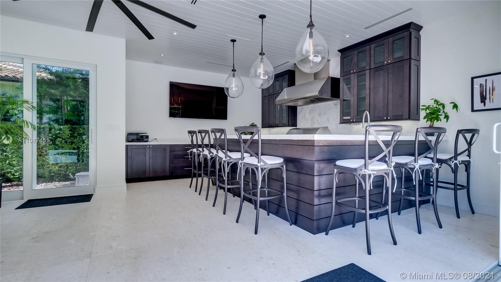 Unique opportunity in the heart of coveted Coral Gable’s Golden Triangle. 1930's renovated 5 Br 4 Ba home on quiet tree-lined 16,500 sqft lot. Property includes newly-built indoor/outdoor entertainment room w/ impact glass sliding doors, full bar & lynx grill + automatic roll down screen. State-of-the-art kitchen w/ subzero/WOLF, Miele appliances, oversized kitchen island w/ galley workstation sink and custom-integrated table, ideal for entertaining. Exquisite shell-stone and oak hardwood flooring. Large great room w/ floor-to-ceiling windows overlooking pool and yard area, offers plenty of natural sunlight. Lush landscaping w/ custom lighting. Extra features: Automatic standby generator w/ 500-gallon underground propane tank, 8 security cameras, Swat repellent integrated system & more!