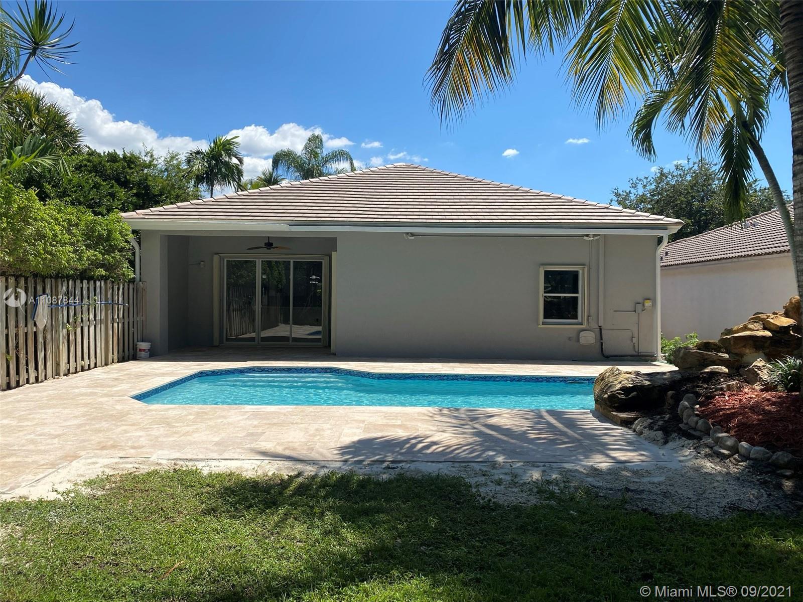 New Roof December 2020! - 4 Bed/2 Bath pool home fully updated, over 200k in updates. This house has been completely remodeled with new kitchen quartz countertops and new stainless steel appliances. Remodeled bathrooms, 32" tiles throughout, marble flooring in the master bathroom, tankless water heater, accordion shutters throughout, new garage door with smart opener. Pool with waterfall, Salt Chlorinator, travertine pavers, new pool diamond brite resurfacing, large backyard. Great community with exercise room, kids play area, 24 hours manned security, 2 gates entry/exits, Community Pool, internet, basic cable, ADT Security and Lawn & Shrub Maintenance included in the HOA, amazing schools, and more.