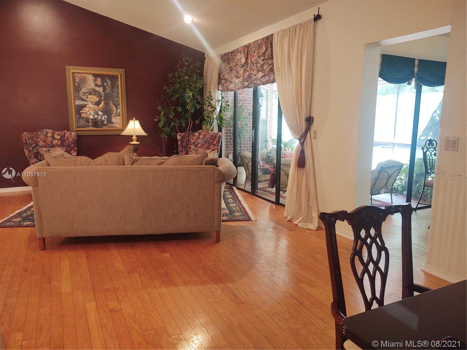 Perfectly placed just in the heart of Weston! 4 Bedrooms 2.5 Baths with the garage converted into an office/5th bedroom, ideal for working from home. A convenient one story home with a practical floor plan/layout that features a formal living and dining room, breakfast area, spacious family, master bedroom and bedrooms. All living areas and master bedroom have sliding doors that lead to a covered patio and backyard that has plenty of room for a pool. Carpeted flooring in the bedrooms and wood throughout the living areas. The garage has room for storage with a work bench that offers plenty of drawers. Laundry/utility room has a tub. Low HOA fees. A++ schools, the elementary school is within walking distance. Close to highways, beaches, restaurants and shopping, Make an appointment today!