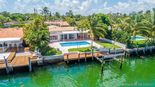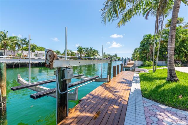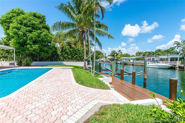 Beautiful updated modern waterfront pool home in a terrific location. This Property is located only 9 houses away from the bay. 75ft on the water with boat dock, boat elevator lift with 4 pilings, travertine marble floors thru-out. Lovely kitchen with granite counter tops- counter island, custom wood cabinets, gas range. Impact windows and doors thru-out and 3 beautiful bathrooms. Enjoy Life in your spacious backyard and pool while watching the parade of boats, jet ski’s, paddle boarders, kayaks, manatees, fish, dolphins and more going up and down the waterway. Only 30 seconds to the Intracoastal and 8 minutes to Haulover inlet. (Garage or storage room for your toys). So much more to see in this lovely one story home.