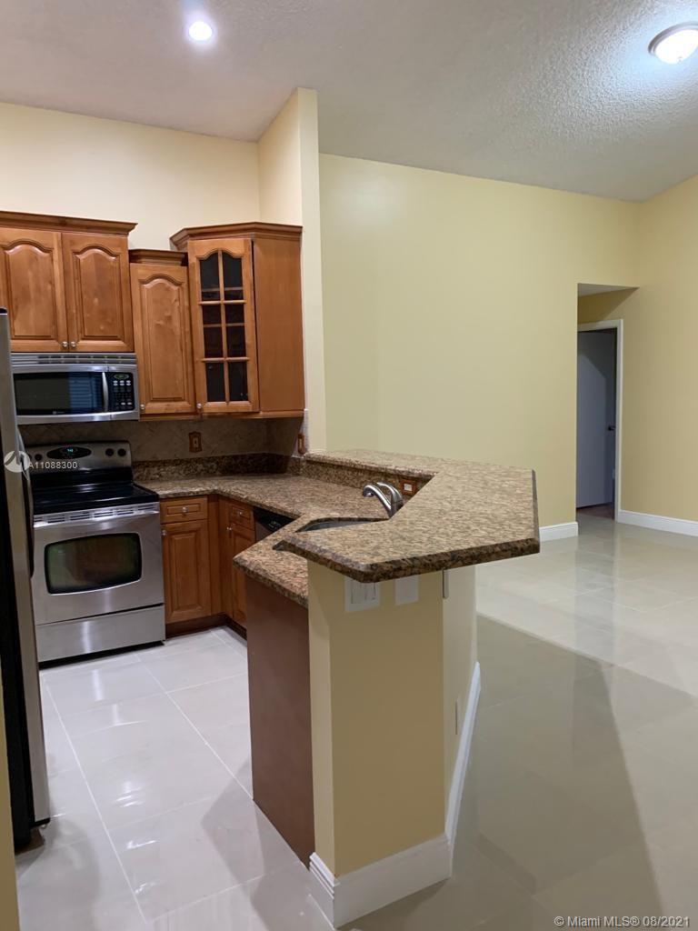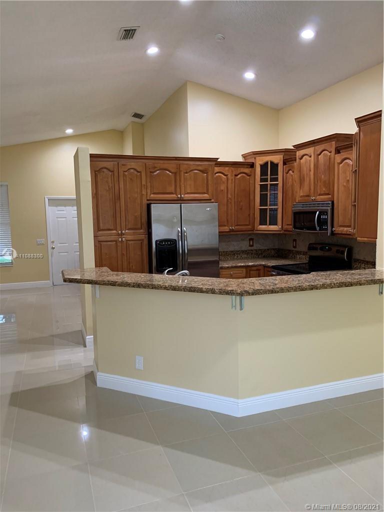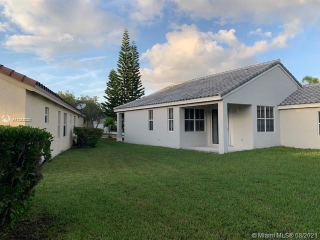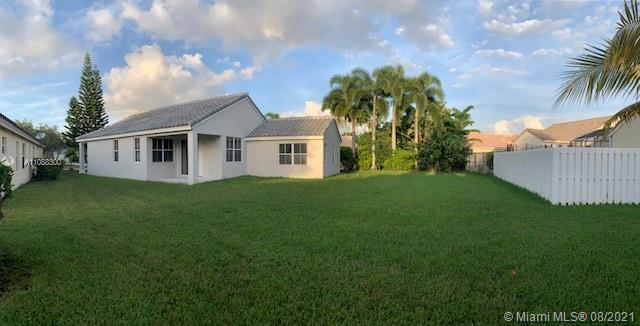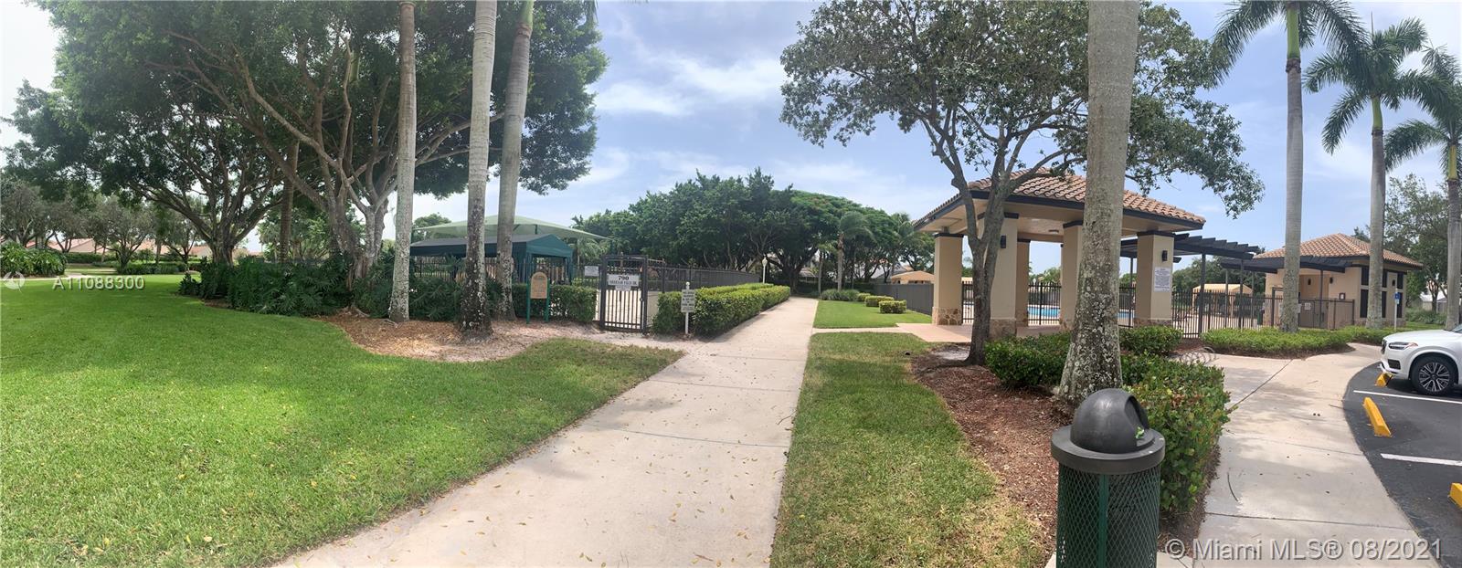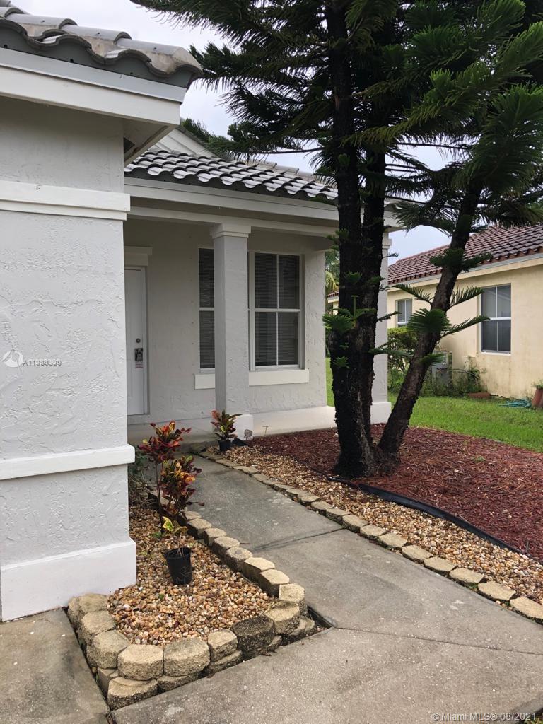 Beautiful and very well maintained 3 bedrooms, 2 bath, 2 car garage, one story house located in gated community of The Falls, in the City of Weston. Features ceramic floors on all common areas, wood laminate floors on bedrooms, SS appliances, granite counter tops, upgraded bathrooms, laundry room with laundry tub and recently replaced washer and dryer, hurricane shutters, back patio and oversized partially fenced backyard with room for a pool, A/C and water heater replaced approximately 2 years ago, roof replaced on 2020. Walking distance to community pool, playground and elementary school. Shopping nearby and easy access to mayor intersections and highway. Call listing agent for showing instructions. Must see!