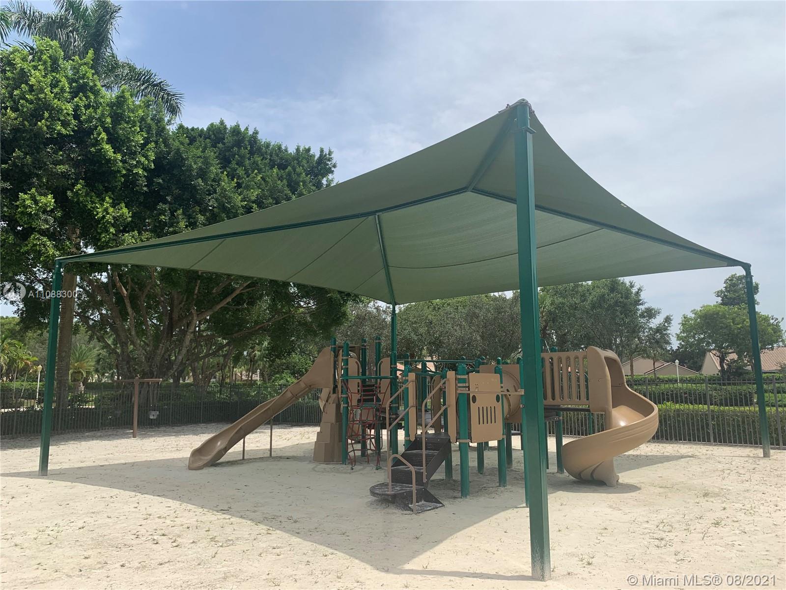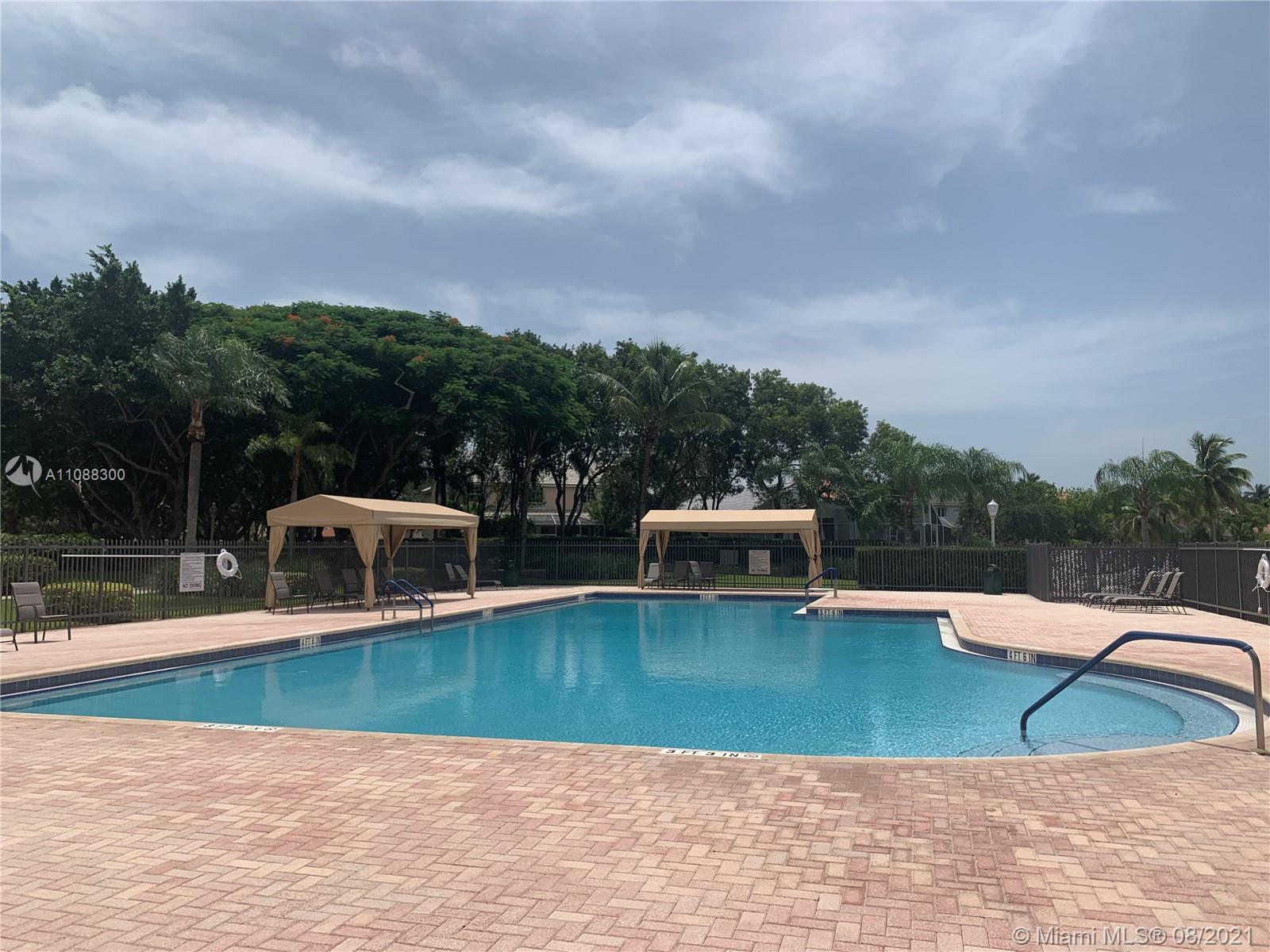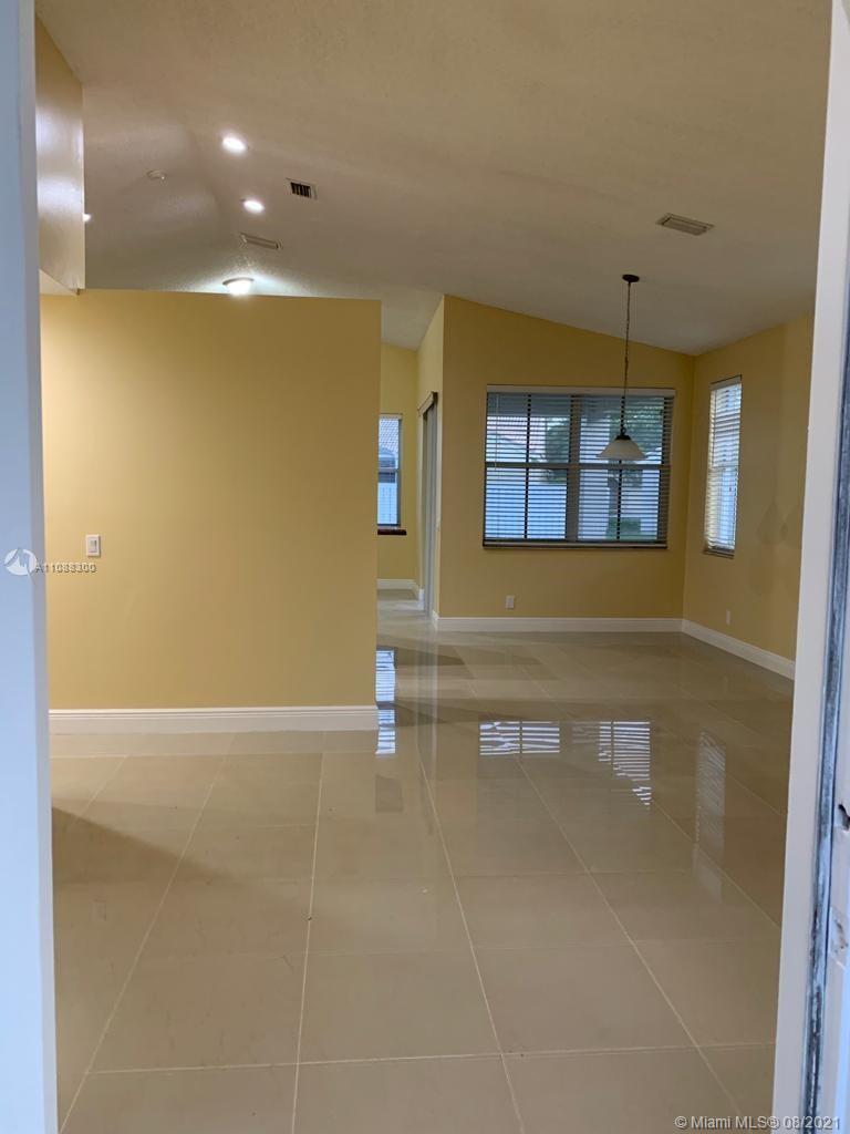 Beautiful and very well maintained 3 bedrooms, 2 bath, 2 car garage, one story house located in gated community of The Falls, in the City of Weston. Features ceramic floors on all common areas, wood laminate floors on bedrooms, SS appliances, granite counter tops, upgraded bathrooms, laundry room with laundry tub and recently replaced washer and dryer, hurricane shutters, back patio and oversized partially fenced backyard with room for a pool, A/C and water heater replaced approximately 2 years ago, roof replaced on 2020. Walking distance to community pool, playground and elementary school. Shopping nearby and easy access to mayor intersections and highway. Call listing agent for showing instructions. Must see!