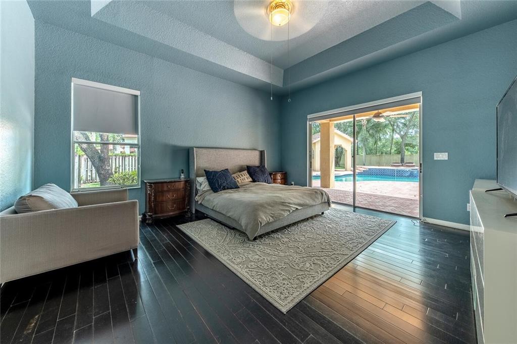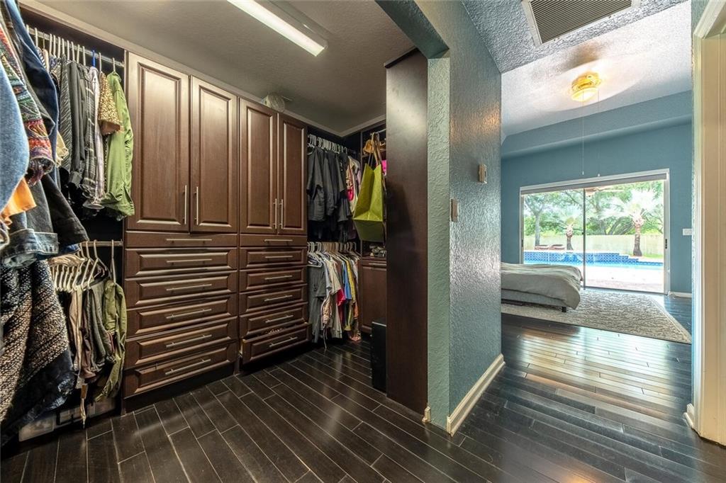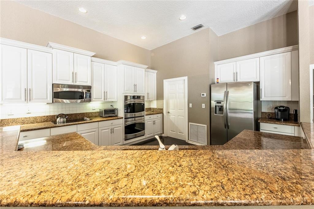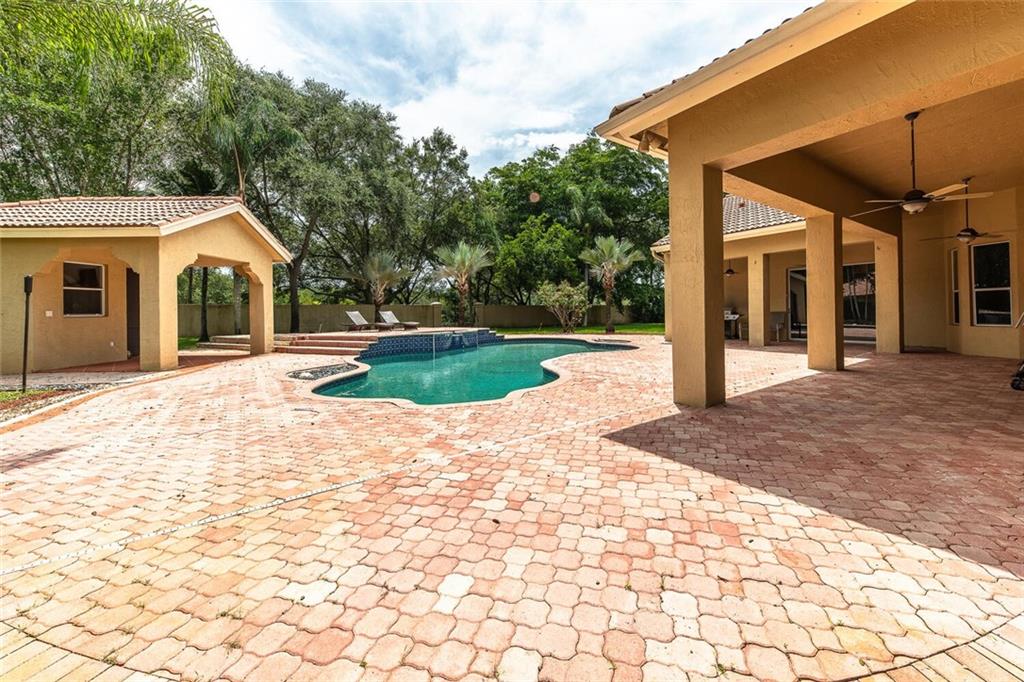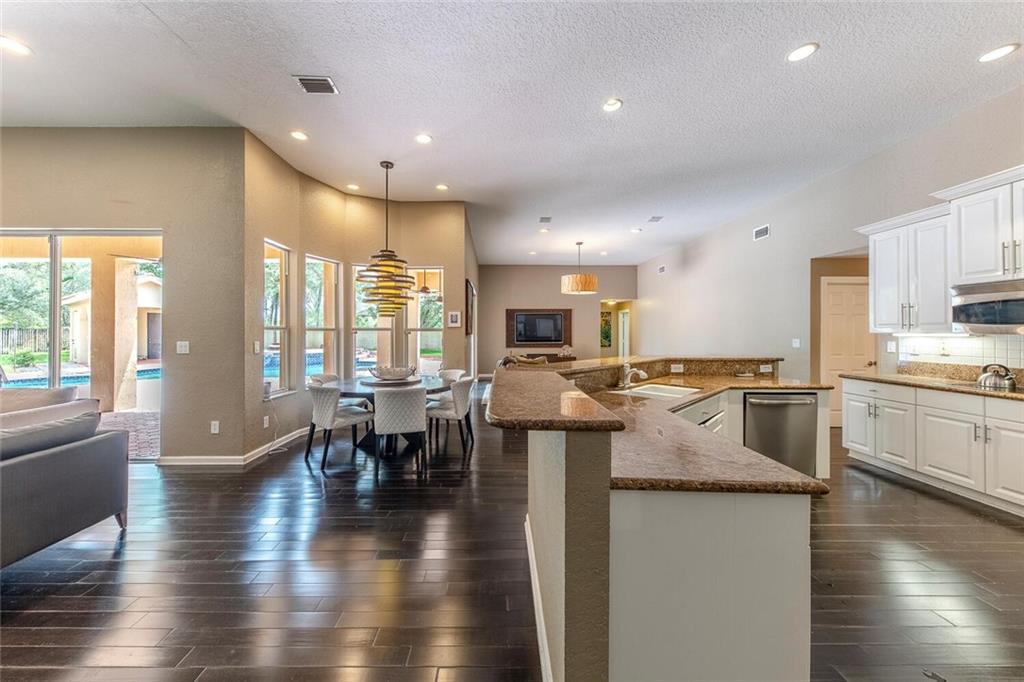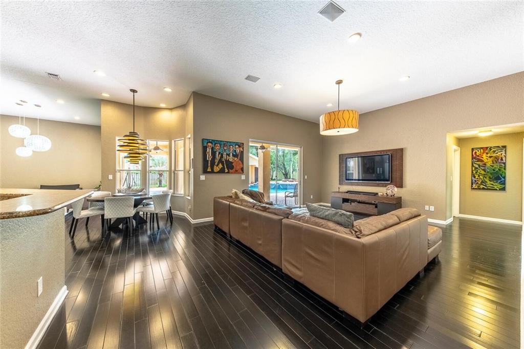 Beautiful 5/3.5 builder's acre pool home in sought after Carlton Ranches. Substantially remodeled home with bamboo wood flooring, huge beautiful granite kitchen & stainless steel appliances. Great family home with oversized sparkling pool, outdoor basketball court, cabana bath and more. Wonderful open floor plan. 5th bedroom currently being used as an office with built in cabinetry. Master retreat with his and hers built in closets, upgraded master bath with huge walk in shower. Two bays of three car garage currently being used as game room/exercise room. Interior laundry room, custom closets in master and two bedrooms. Carlton Ranches is a small boutique gated community with access to biking/walking trails, great schools & highways. Breakfast nook light fixture does not stay.