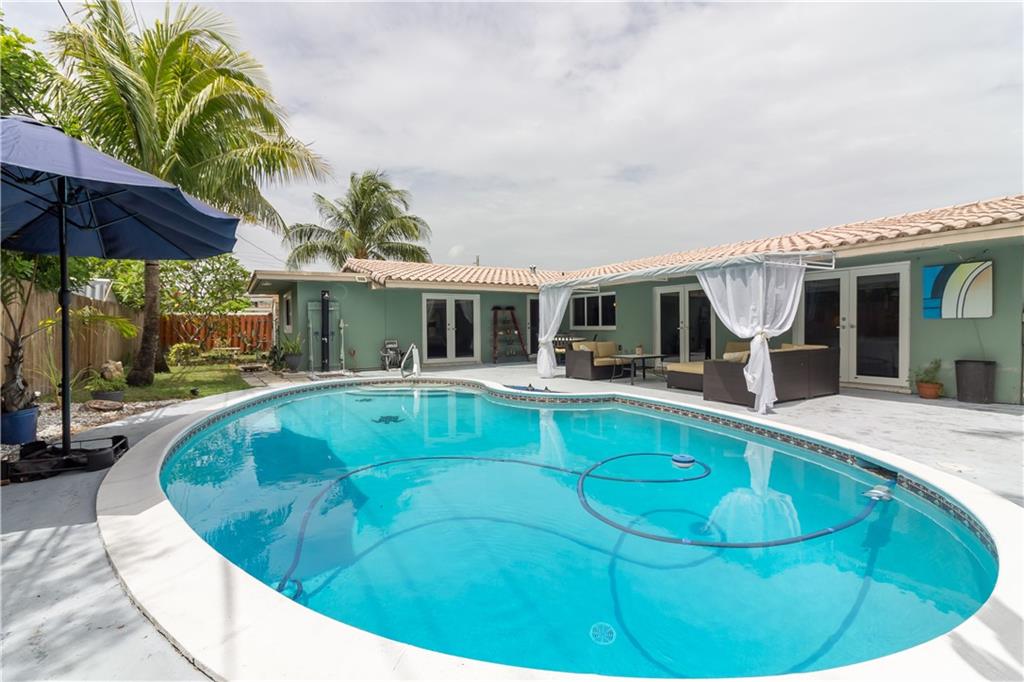 Beautiful 3/2 (2 w/walk in closets), bonus family room/office area w/private entrance close to the very desirable Imperial Point. Large pool, covered patio, outdoor shower. Enjoy the quiet/safety of new impact windows/doors, 3 sets are French doors leading to the backyard/pool secured by a privacy fence., kitchen w/pullout cabinets, stainless steel appliances & granite counter tops. New Lennox AC, security system, shed, barrel tile roof, large circular drive, Saltillo Mexican tile. Floranada school district. Furniture is negotiable, get the benefits of the ideal Ft Lauderdale lifestyle on a quiet street, close to the beach, shopping, private schools, hospitals, and I-95. IT WON'T LAST LONG!
